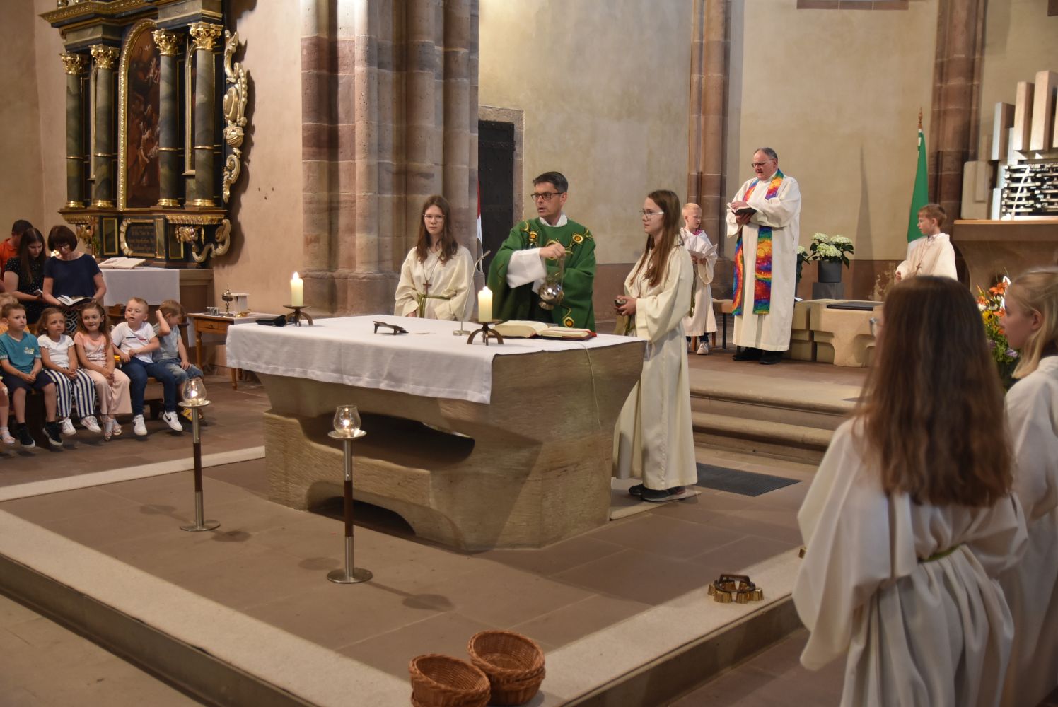 Musikalisch wurde der Gottesdienst von Beate Budenz und Michaela Nied, die die Kita-Lieder mit Gitarre begleiteten und Michael Heller an der Orgel gestaltet.