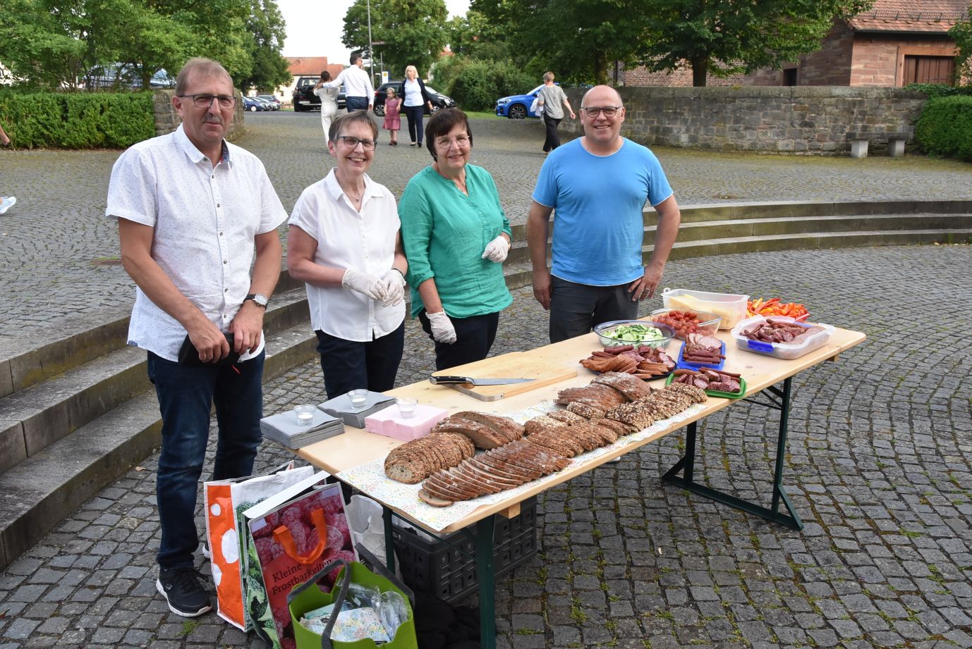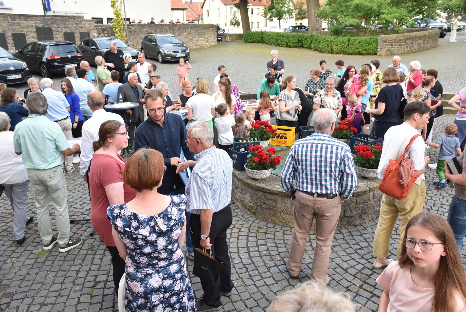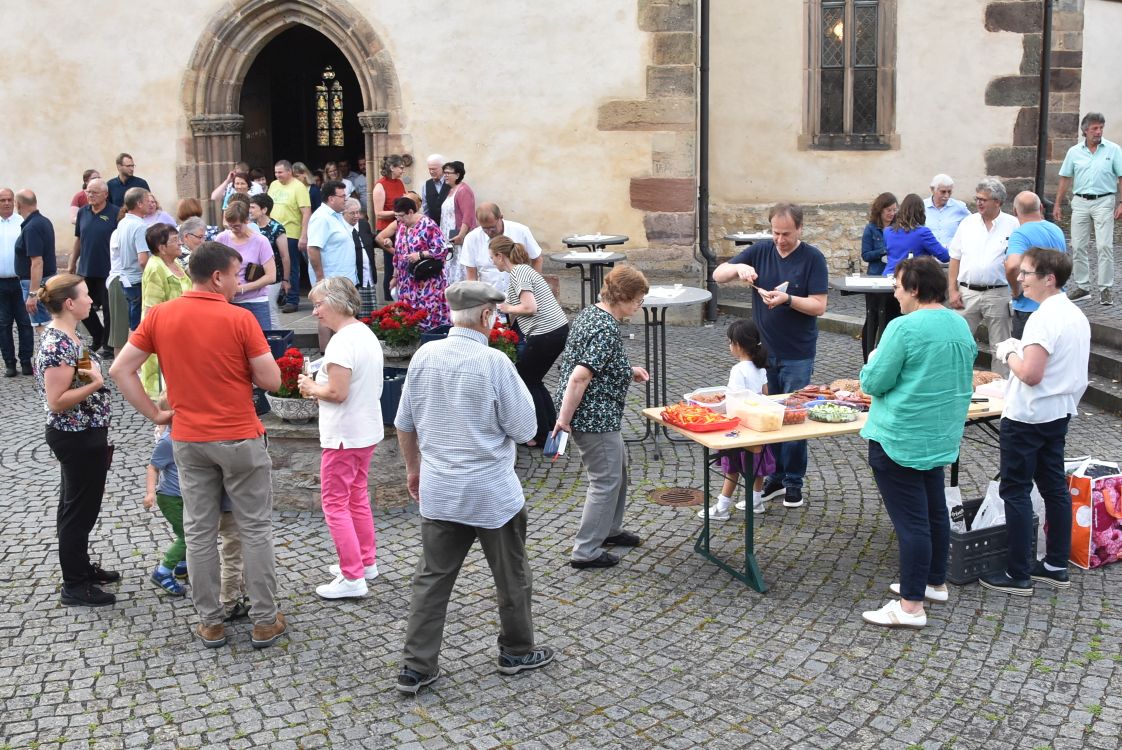 Nach dem Gottesdienst war die Gemeinde zum Empfang auf den Kirchplatz eingeladen. Bei einem Imbiss und Getränken, vorbereitet vom Pfarrgemeinde- und Verwaltungsrat, konnten sich die Gläubigen persönlich von Pfarrer Markus Blümel verabschieden und bei ihm bedanken.