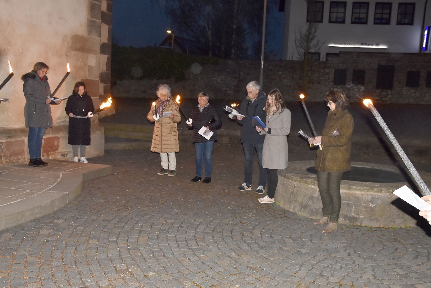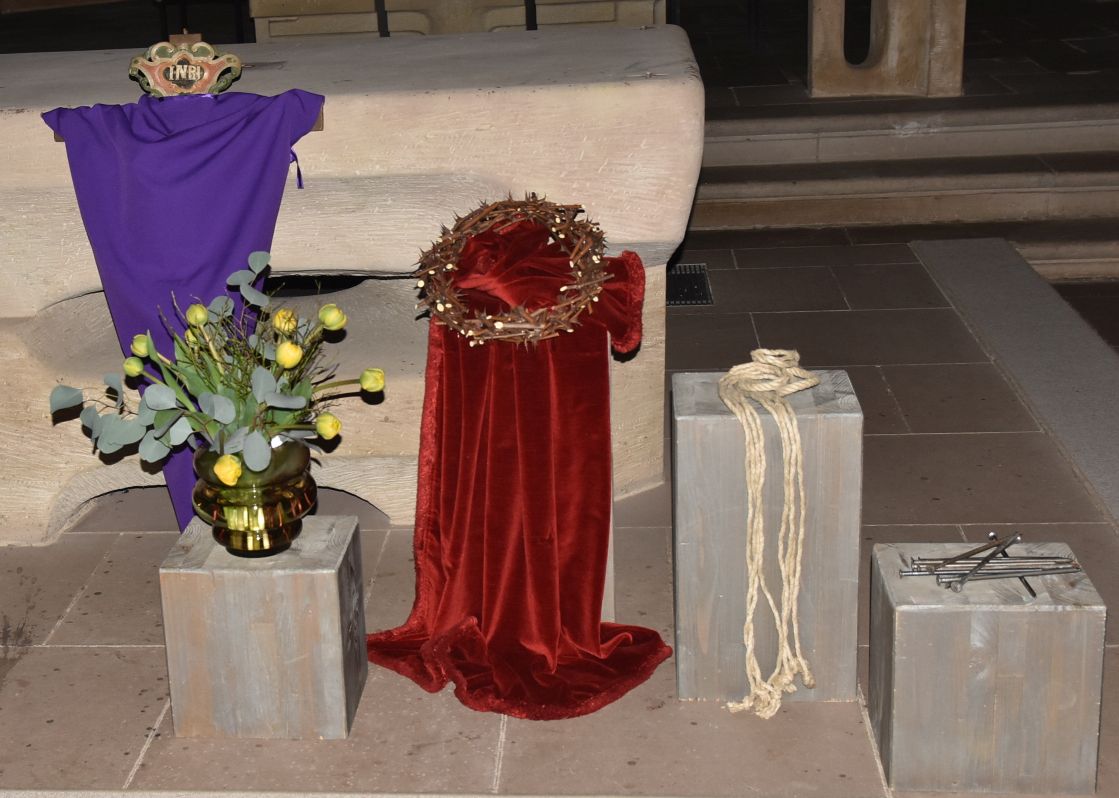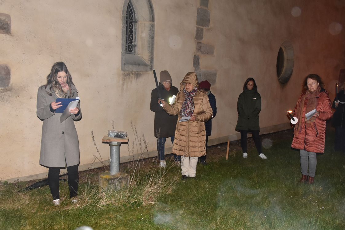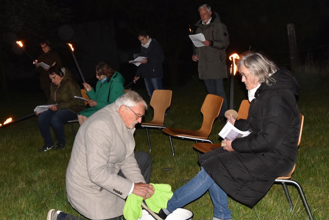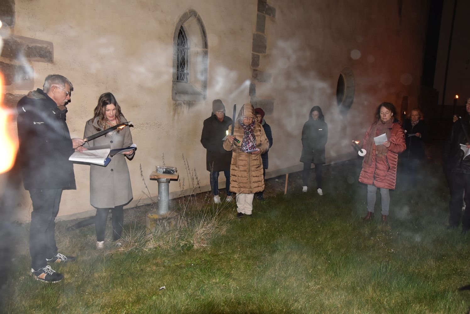 Eine etwas andere Ölbergandacht konnten die Mitbetenden in Rasdorf erleben. Unter dem Thema: „Den letzten Abend aus der Sicht von Petrus erleben und feiern“ zogen die Gläubigen nach der Eröffnung mit Fackeln in den Pfarrgarten der Stiftskirche. Dort erzählte Petrus, was er aus seiner Sicht mit Jesus erlebt hatte. Bei der ersten Station „Zusammenkommen“ wurde das letzte Abendmahl szenisch dargestellt. Die Jünger und Petrus verstehen noch nicht die Wandlungsworte. Die zweite Station „Dienen“ beinhaltete die Fußwaschung. Sie zeigt den Konflikt den Petrus hatte, sich von Jesus die Füße waschen zu lassen und die Bedeutung an Jesus teil zu haben. „Wachsam sein“, Petrus rätselt was Jesus da am Ölberg tut, denn er versteht das verzweifelte Gebet Jesu nicht. Nach all den Strapazen schläft Petrus ein, obwohl er wachen und beten sollte. Judas der Verräter, aber Petrus selbst verrät Jesus, als er gefragt wird, ob er nicht auch ein Jünger sei. Symbolhaft erklang bei der Station „Verraten“ zweimal ein Hahnenschrei. Vor dem Heiligen Grab in der Stiftskirche endete die Ölbergandacht mit dem „Schluss-Impuls“. Die Teilnehmenden konnten sich mit der Frage auseinandersetzen, wie sie ihren Glauben, ob gefragt oder ungefragt, bekennen. Sie konnten ein Licht am Heiligen Grab entzünden, als Zeichen, dass wir aus den Kartagen Hoffnung schöpfen können, dass Jesus Christus uns in unserem Leben bei Höhen und Tiefen begleitet.