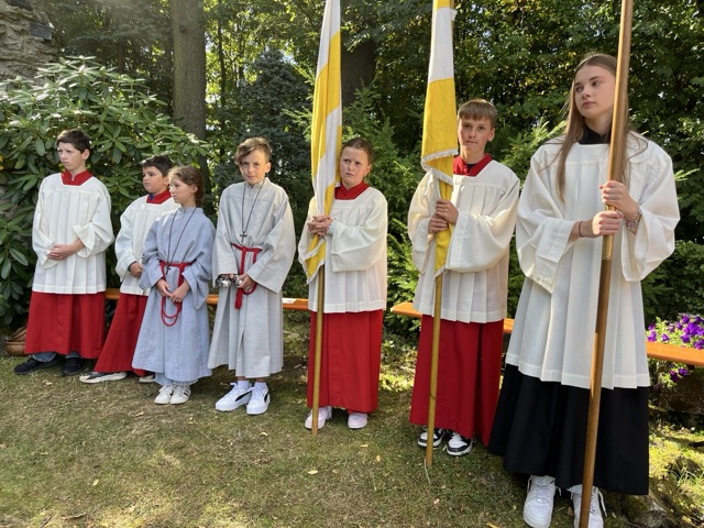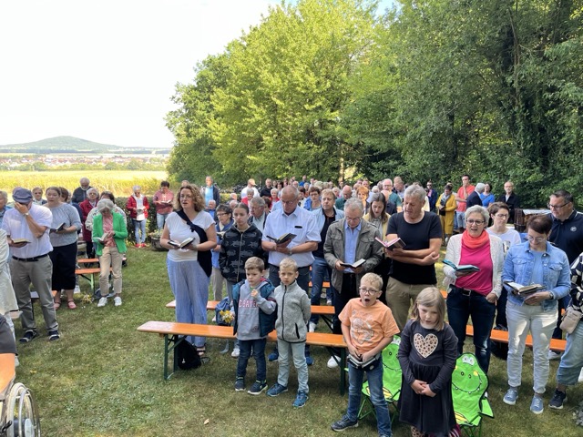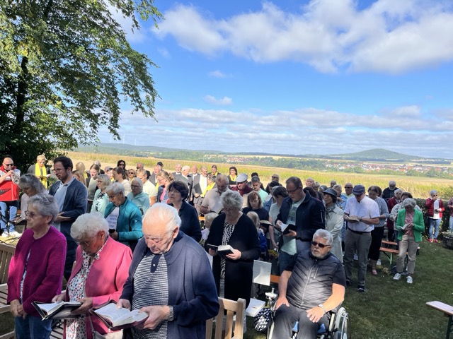 Bei strahlendem Wetter feierte am 17. August 2025 die Pfarrei St. Matthäus Steinbach eine Heilige Messe an der Steinbacher Grotte. Pfarrer Winfried Vogel segnete im Rahmen der traditionellen Kräuterweihe zahlreiche Kräutersträuße, die gegen eine Spende danach angeboten wurden. Durch die musikalische Mitgestaltung des Kirchenchores Steinbach sowie der „Domkapelle Dittlofrod“ war der Gottesdienst besonders feierlich.