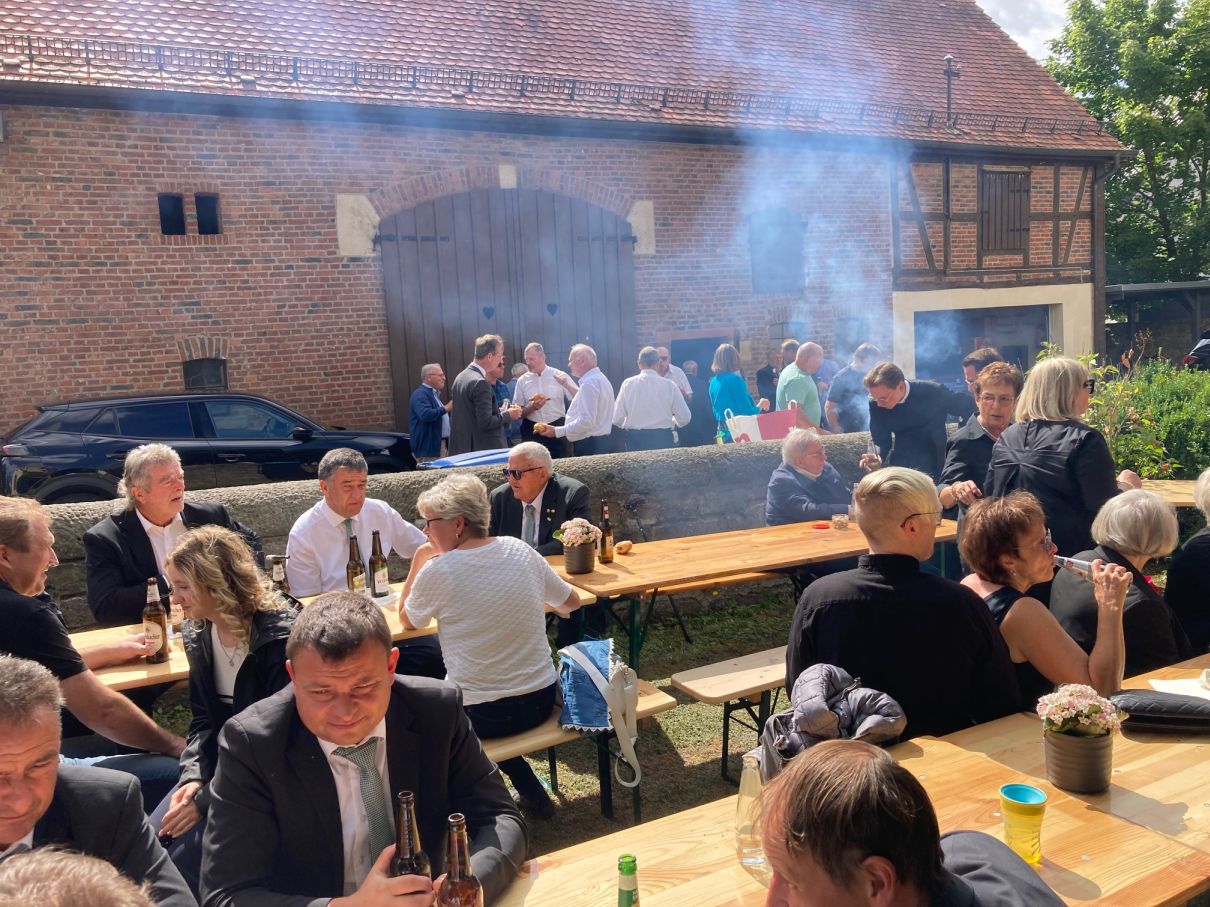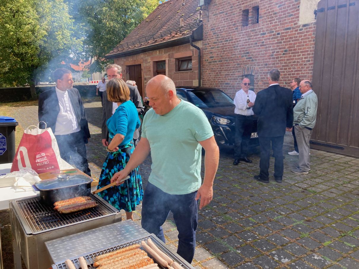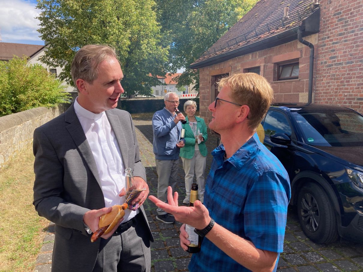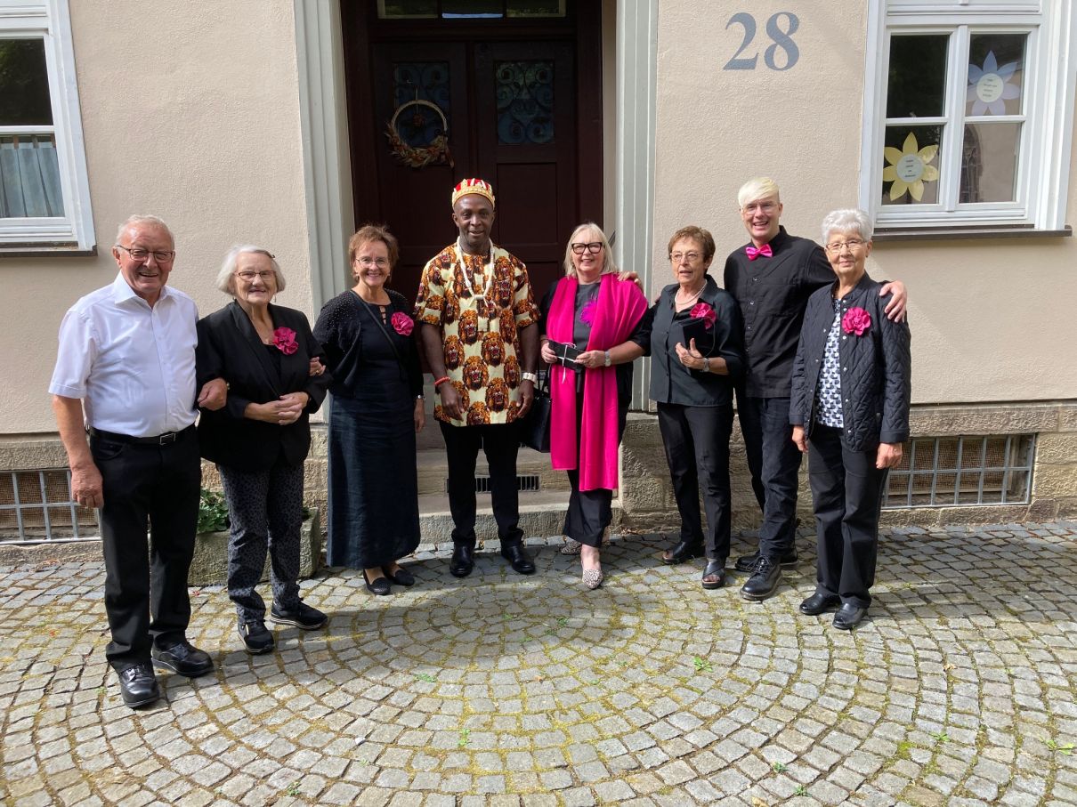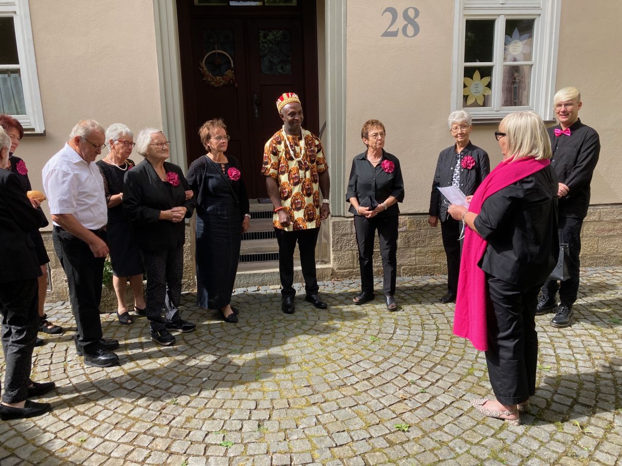 Mit einem festlichen Gottesdienst in der Stiftskirche in Rasdorf beging Pfarrer Aloysius Ndiukwu in Konzelebration mit den Pfarrern Markus Günther und Andreas Matthäi sein Silbernes Priesterjubiläum. Am Sonntag zuvor hatte er in Borsch, wo er tätig gewesen war, mit einem großen Fest und vielen befreundeten Priestern Abschied gefeiert. Leitender Pfarrer Markus Günther begrüßte Pfarrer Aloysius herzlich als neues bereicherndes Mitglied im Pastoralverbund Hessisches Kegelspiel zu den Heiligen 14 Nothelfern. In Anlehnung an das Sonntagevangelium betonte Festprediger Pfarrer Andreas Matthäi, dass er jetzt seinen neuen Platz eingenommen habe. Der Festgottesdienst in der Stiftskirche wurde musikalisch vom Gemischten Chor Ufhausen, verstärkt durch Sängerinnen und Sänger aus Buttlar und Soisdorf (Dirigent Winfried Rohm), sowie dem Männergesangverein Borsch und Rasdorf (Dirigentin Dorothe Abel-Brehl) mitgestaltet. An der Orgel spielte Michael Heller, Buttlar. Nach dem Gottesdienst hatte Pfarrer Aloysius zur Feier mit nigerianischem Gebäck, Würstchen und Getränken in den Vorgarten beim Rasdorfer Pfarrhaus eingeladen. Dort bestand auch die Möglichkeit, mit Pfarrer Aloysius, der sich traditionell gekleidet hatte, ins Gespräch zu kommen und ihn näher kennen zulernen. Pfarrer Aloysius bedankte sich bei allen, die ihn beim Ausrichten des Einführungsgottesdienstes unterstützt hatten, besonders beim Verwaltungsrat, der für das Stellen der Bänke und Tische und für die Bewirtung nach dem Gottesdienst zuständig war.