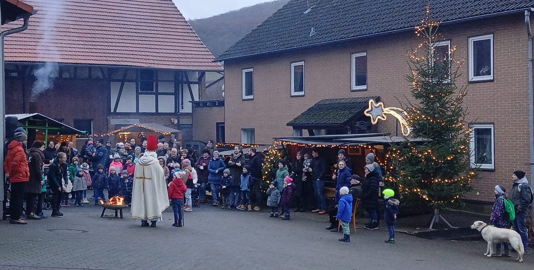 Die Kolpingsfamilie Großentaft hatte anlässlich des Kolpinggedenktages zur lebensgroßen Weihnachtskrippe der Landwirtsfamilie Sauerbier eingeladen. Viele Kinderaugen strahlten als der Nikolaus vor ihnen stand. Mit Liedern und Gedichten begrüßten die Kinder den heiligen Bischof. Im Gepäck hatte er für jedes Kind ein kleines Geschenk. Rundherum auf dem kleinen Weihnachtsmarkt gab es in kleinen, hübsch geschmückten Buden Kinderpunsch, Glühwein, Waffeln und hausgemachte Bratwürstchen.