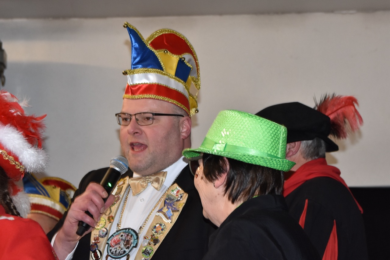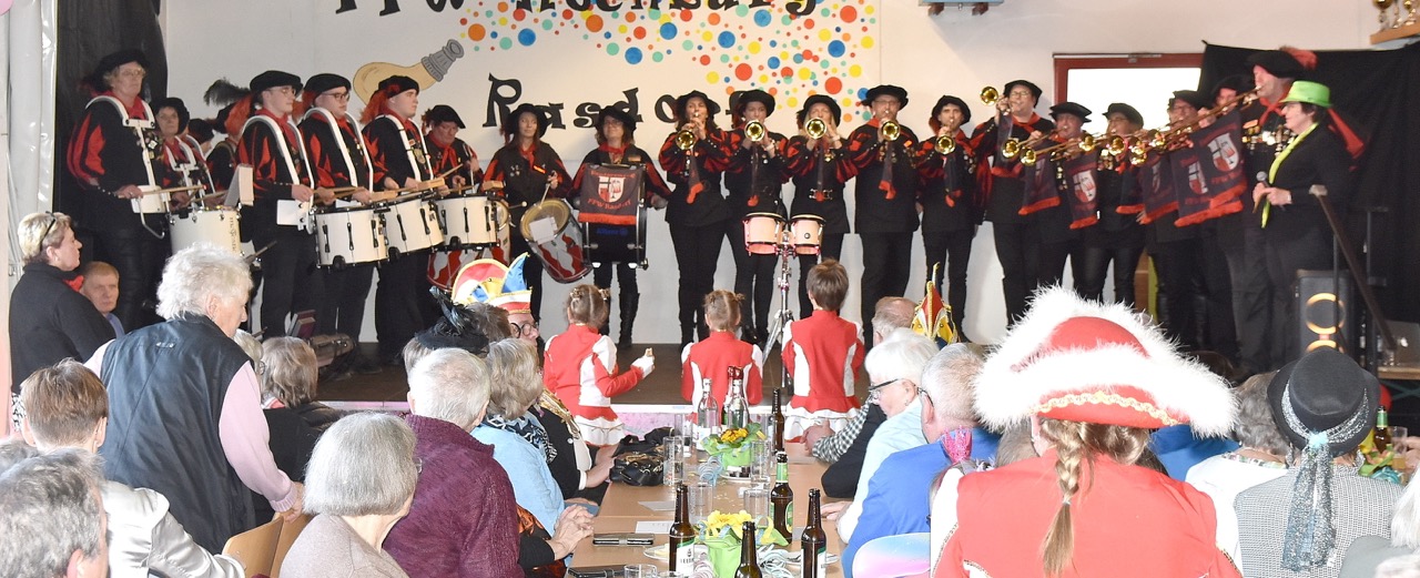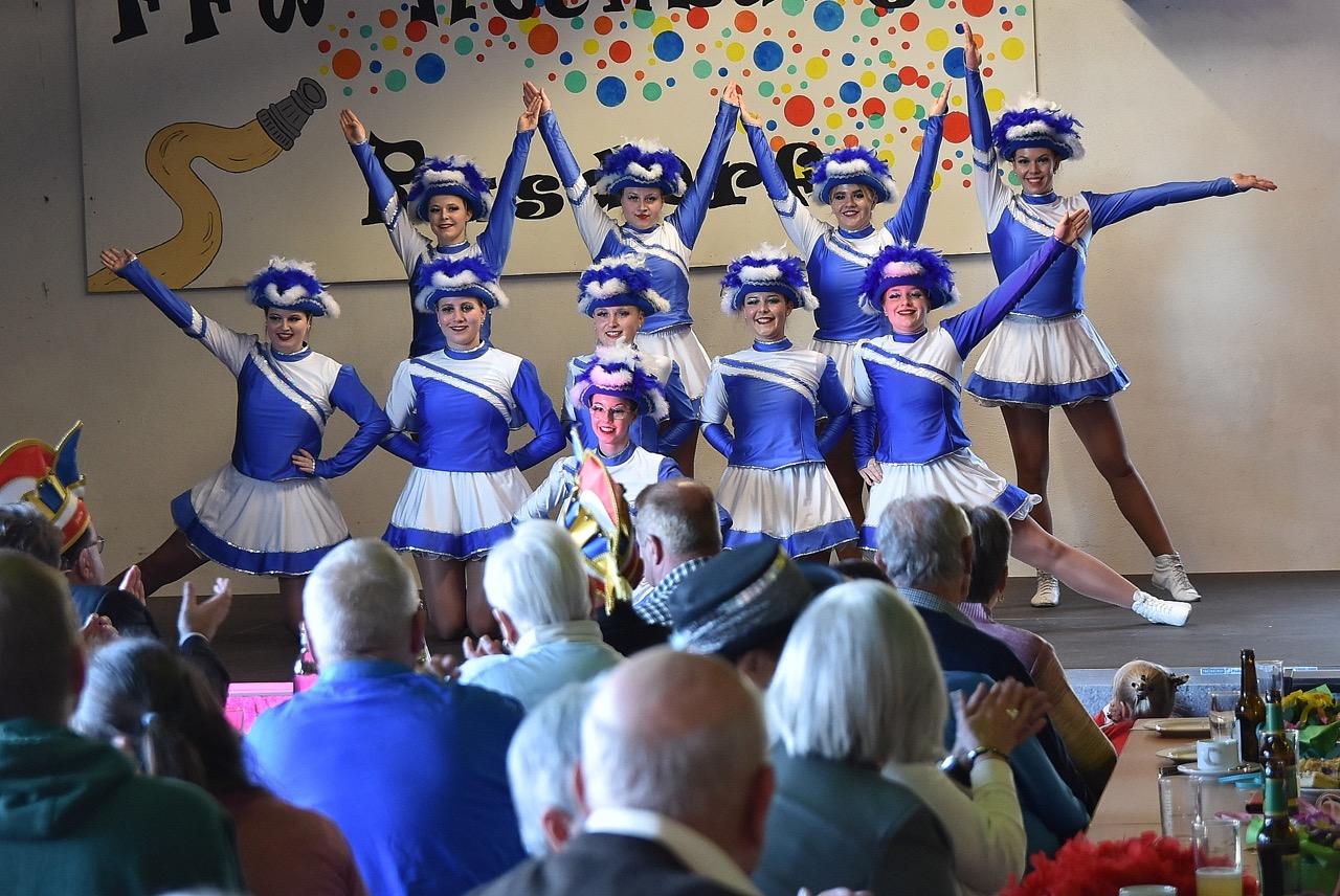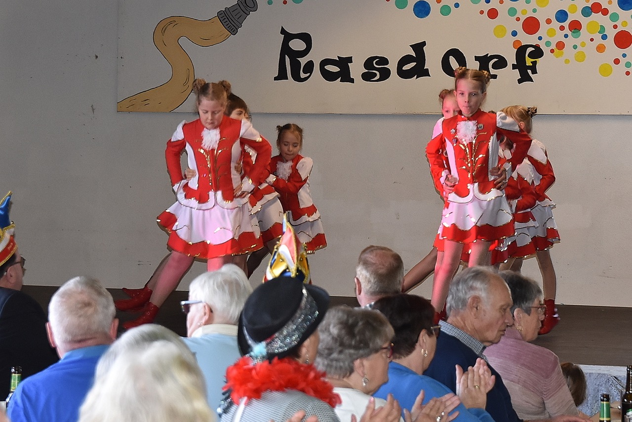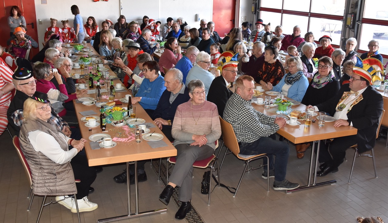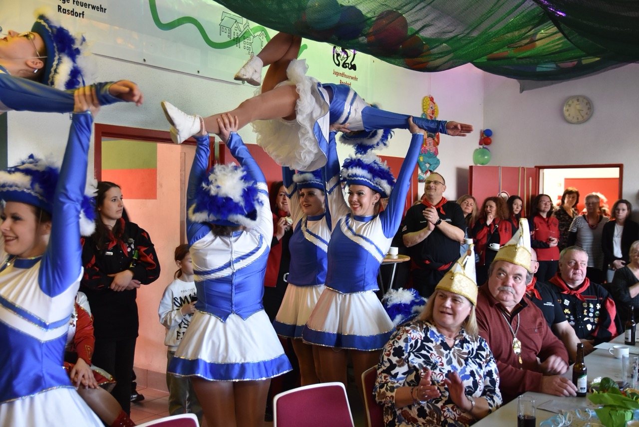 Unter dem Slogan „Sterne funkeln, der Himmel lacht, Senioren feiern Fasenacht“ hatte die Katholische Kirchengemeinde und die Point-Alpha-Gemeinde Rasdorf zur Seniorenfastnacht eingeladen. Das närrische Publikum, in der bis auf den letzten Platz besetzten Narrhalla Feuerwehrgerätehaus Rasdorf, bekam ein buntes Programm geboten. Nach der gereimten Begrüßung durch Bürgermeister Jürgen Hahn, wartete Markus Weller in der Bütt mit Neuigkeiten aus Rasdorf auf. Eine schwierige Rechenaufgabe hatten Nele Fladung, Mariann Bohlen und Ida Sauerbier, einstudiert von Vanessa Fladung, zu lösen und zum Schluss musste jede „vier Torten“ verspeisen. In Platt konnte man die Erschaffung der Welt bis zum Sündenfall in der Bütt von Annette Hardegen hören, bevor die Pflaumen auf dem Pflaumenbaum der Gymnastik III musikalisch reif waren. Sie gaben auch als „Die Höhner“ im Programm den Schlusston an. Adrette männlicher Bienchen mit akrobatischen Zügen waren aus Setzelbach zum Showtanz angeflogen (Trainerinnen Linda Gärtner, Eva Herbert). Männer haben einen anderen Ordnungssinn und Frauen haben nix im Schrank. Da die neue Leggins der Akteurin (Dagmar Neumeyer-Veltum) Vakuum gezogen hatte, musste der Bürgermeister beim Ausziehen behilflich sein. Das Programm lockerten die Minigarde (Trainerinnen Frieda Jansohn, Antonia Spiegel), Teeniegarde (Trainerinnen Tabea Gollbach, Maria Helmke) und die Junggarde (Trainerinnen: Celina Abel, Larissa Gollbach) aus Grüsselbach mit ihren Gardetänzen auf und kamen um eine Zugabe nicht umhin. Ein von akrobatischen Sequenzen geprägter Gardetanz zeigte das A-Team aus Rasdorf (Trainerin Sarah Seidel) und war ein Augenschmaus. Ein buntes farbenprächtiges Bild boten die 21 Kinder vom Kindersingkreis mit ihren fröhlichen bewegungsintensiven Liedern (Leitung Stephanie Hardegen, Jacqueline Mathes). Natürlich durften Ihre Lieblichkeit Prinzessin Elisa, faschingsverrückte Hundeliebhaberin mit Dekohand aus dem Rückerser Städterand und Seine Tollität Prinz Johannes, fußballspielender Eintracht-Fan mit Motorenlärm vom silbernen Stern (Elisa und Johannes Ebert) der KVG nicht fehlen. Unter den Klängen des Trommel- und Fanfarenzuges der Freiwilligen Feuerwehr Rasdorf, gaben sie den Seniorinnen und Senioren die Ehre und bevölkerten mit dem ganzen Hofstaat nebst Garden die Bühne. Mit närrischen, pointierten Versen führten Annette Hardegen und Ursula Veltum durch das Programm. Sie dankten der Freiwilligen Feuerwehr Rasdorf (Wehrführer Maik Lewalter) für die Bereitstellung des Feuerwehrgerätehaus als Narrhalla und den Mitgliedern des Pfarrgemeinderates für die helfenden Hände. Für die Tuschs und die Schunkelrunden sorgte das Duo Steffi und Siegfried aus Fulda.