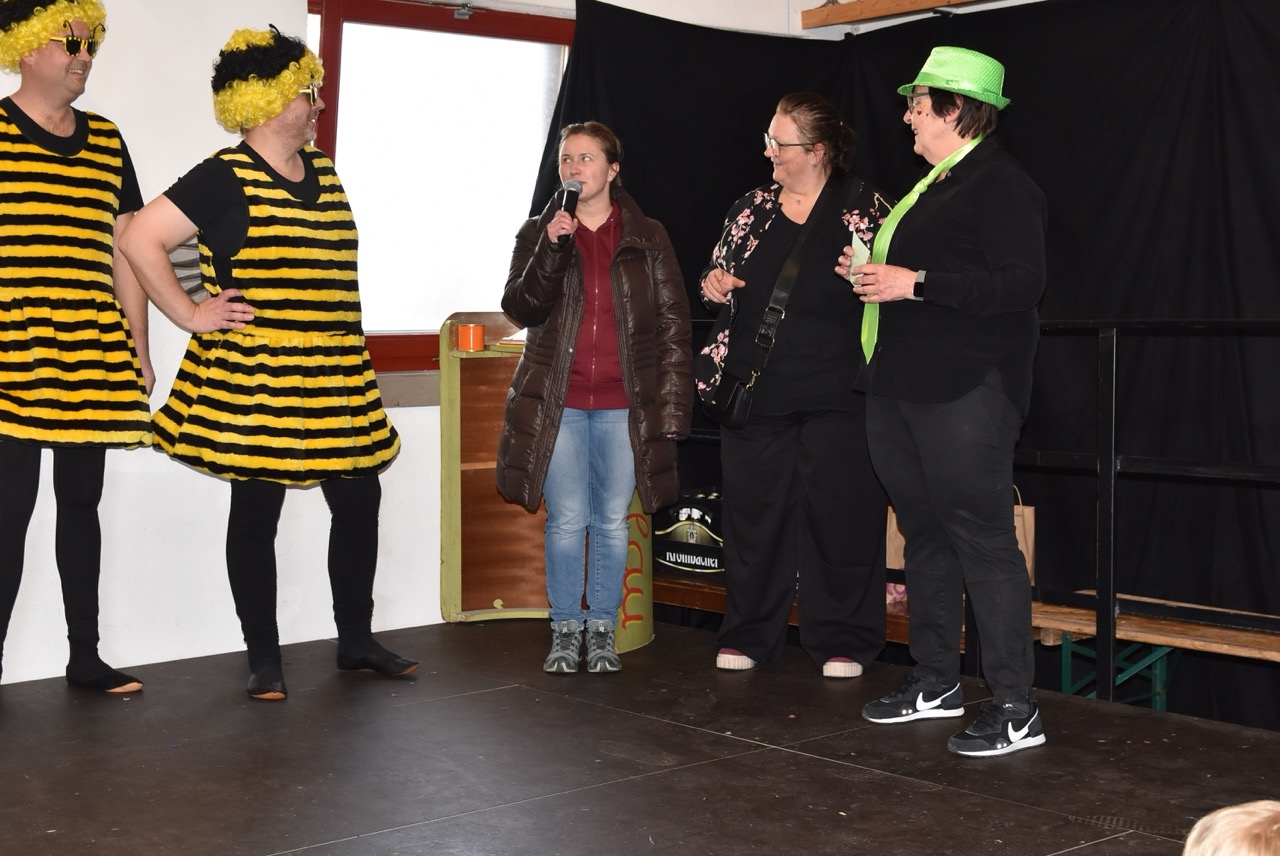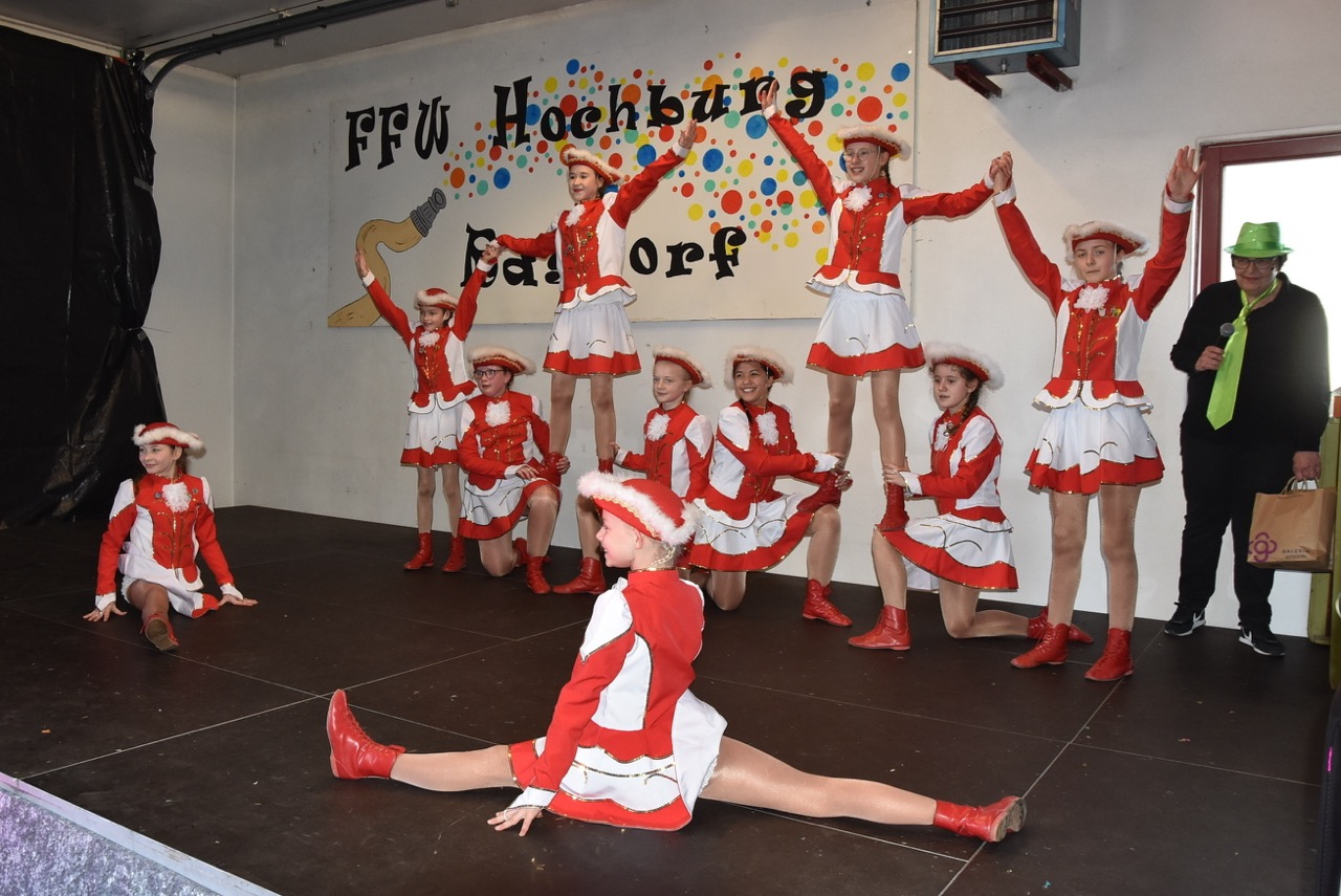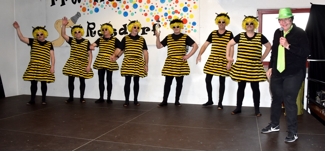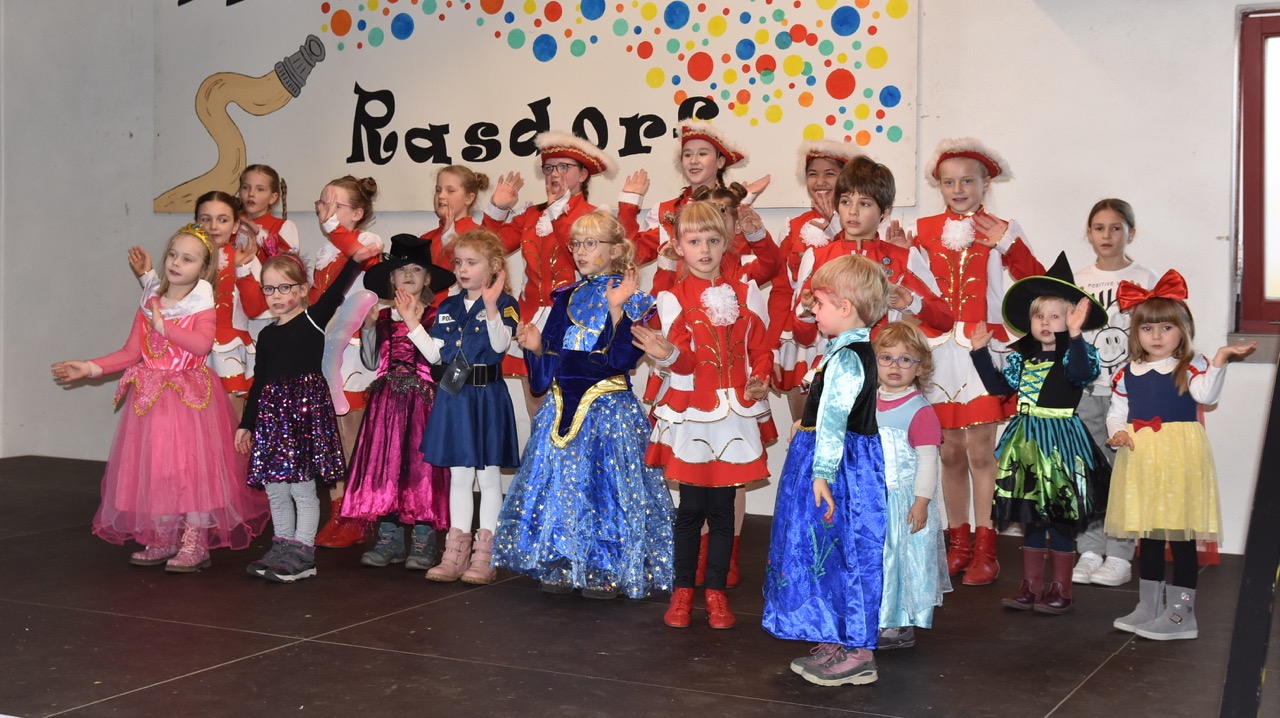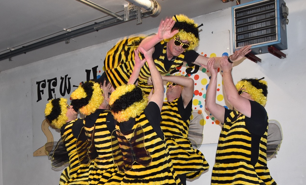Unter dem Slogan „Sterne funkeln, der Himmel lacht, Senioren feiern Fasenacht“ hatte die Katholische Kirchengemeinde und die Point-Alpha-Gemeinde Rasdorf zur Seniorenfastnacht eingeladen. Das närrische Publikum, in der bis auf den letzten Platz besetzten Narrhalla Feuerwehrgerätehaus Rasdorf, bekam ein buntes Programm geboten. Nach der gereimten Begrüßung durch Bürgermeister Jürgen Hahn, wartete Markus Weller in der Bütt mit Neuigkeiten aus Rasdorf auf. Eine schwierige Rechenaufgabe hatten Nele Fladung, Mariann Bohlen und Ida Sauerbier, einstudiert von Vanessa Fladung, zu lösen und zum Schluss musste jede „vier Torten“ verspeisen. In Platt konnte man die Erschaffung der Welt bis zum Sündenfall in der Bütt von Annette Hardegen hören, bevor die Pflaumen auf dem Pflaumenbaum der Gymnastik III musikalisch reif waren. Sie gaben auch als „Die Höhner“ im Programm den Schlusston an. Adrette männlicher Bienchen mit akrobatischen Zügen waren aus Setzelbach zum Showtanz angeflogen (Trainerinnen Linda Gärtner, Eva Herbert). Männer haben einen anderen Ordnungssinn und Frauen haben nix im Schrank. Da die neue Leggins der Akteurin (Dagmar Neumeyer-Veltum) Vakuum gezogen hatte, musste der Bürgermeister beim Ausziehen behilflich sein. Das Programm lockerten die Minigarde (Trainerinnen Frieda Jansohn, Antonia Spiegel), Teeniegarde (Trainerinnen Tabea Gollbach, Maria Helmke) und die Junggarde (Trainerinnen: Celina Abel, Larissa Gollbach) aus Grüsselbach mit ihren Gardetänzen auf und kamen um eine Zugabe nicht umhin. Ein von akrobatischen Sequenzen geprägter Gardetanz zeigte das A-Team aus Rasdorf (Trainerin Sarah Seidel) und war ein Augenschmaus. Ein buntes farbenprächtiges Bild boten die 21 Kinder vom Kindersingkreis mit ihren fröhlichen bewegungsintensiven Liedern (Leitung Stephanie Hardegen, Jacqueline Mathes). Natürlich durften Ihre Lieblichkeit Prinzessin Elisa, faschingsverrückte Hundeliebhaberin mit Dekohand aus dem Rückerser Städterand und Seine Tollität Prinz Johannes, fußballspielender Eintracht-Fan mit Motorenlärm vom silbernen Stern (Elisa und Johannes Ebert) der KVG nicht fehlen. Unter den Klängen des Trommel- und Fanfarenzuges der Freiwilligen Feuerwehr Rasdorf, gaben sie den Seniorinnen und Senioren die Ehre und bevölkerten mit dem ganzen Hofstaat nebst Garden die Bühne. Mit närrischen, pointierten Versen führten Annette Hardegen und Ursula Veltum durch das Programm. Sie dankten der Freiwilligen Feuerwehr Rasdorf (Wehrführer Maik Lewalter) für die Bereitstellung des Feuerwehrgerätehaus als Narrhalla und den Mitgliedern des Pfarrgemeinderates für die helfenden Hände. Für die Tuschs und die Schunkelrunden sorgte das Duo Steffi und Siegfried aus Fulda.