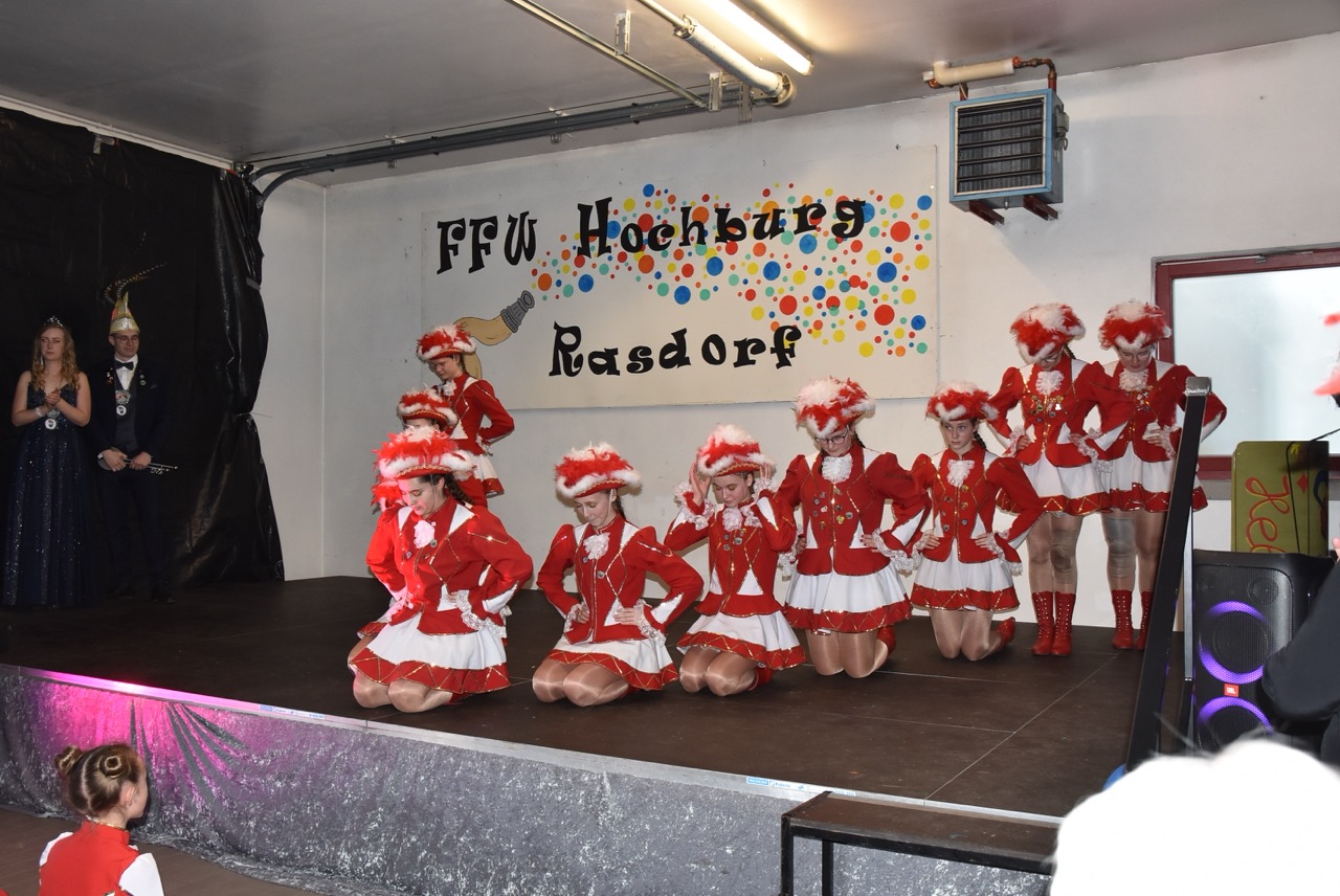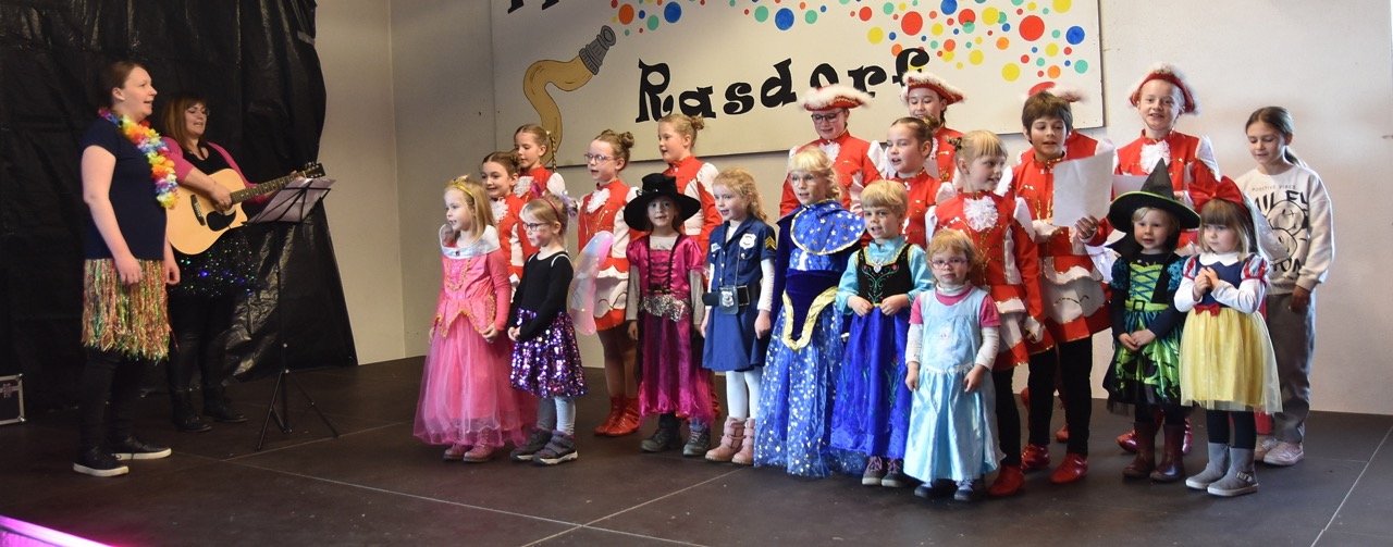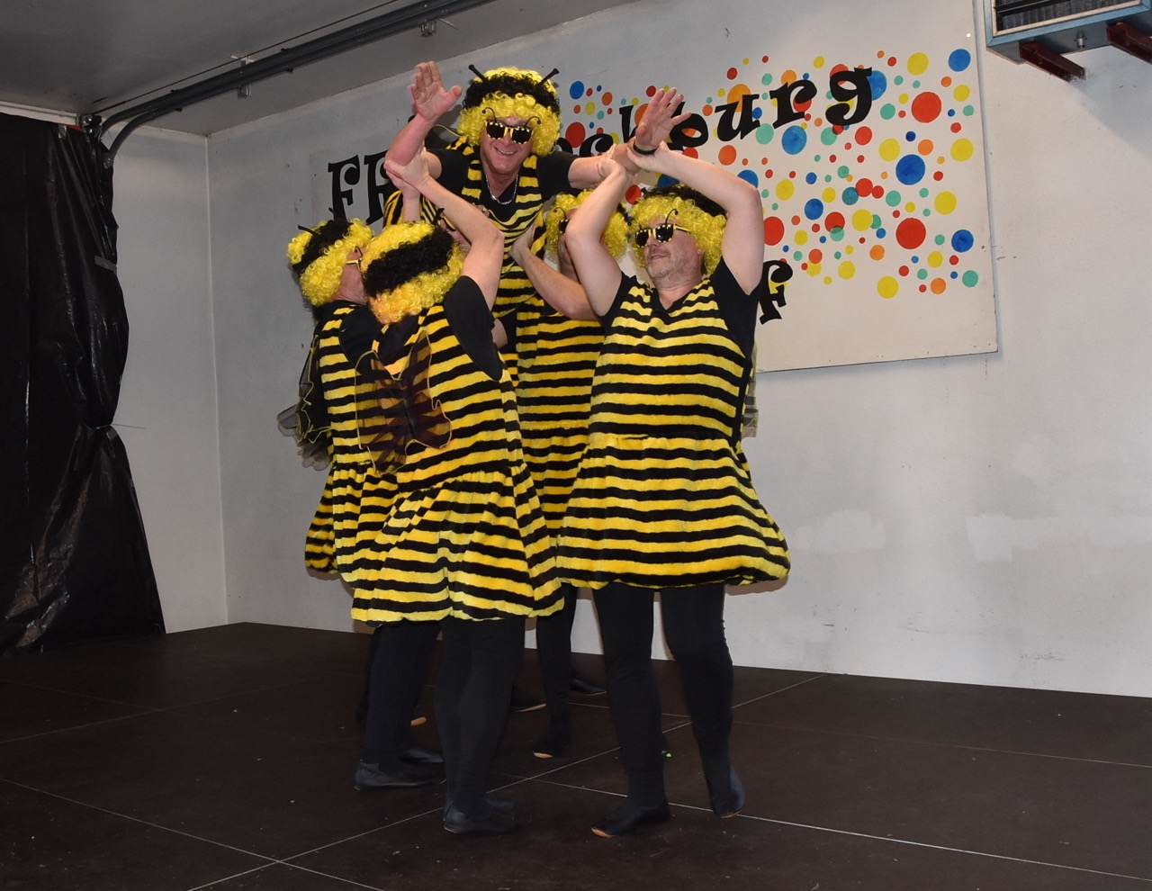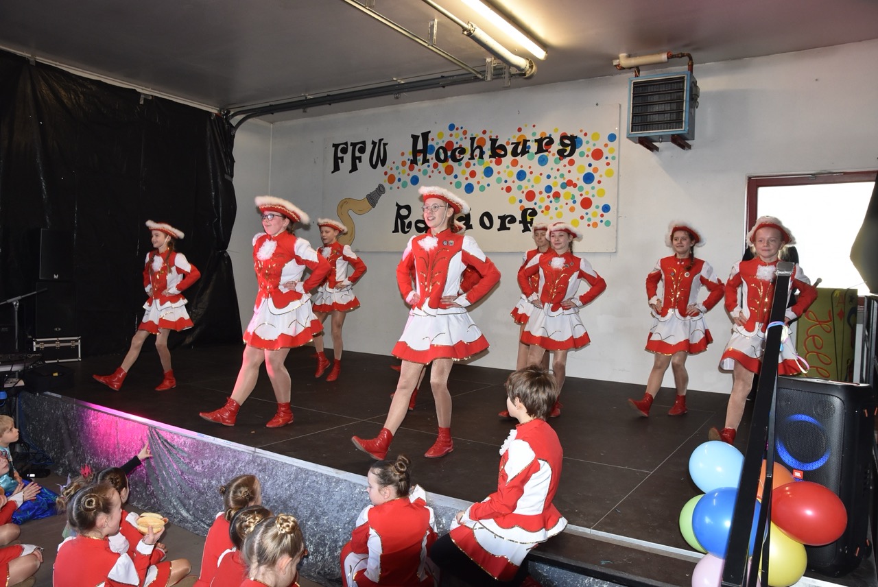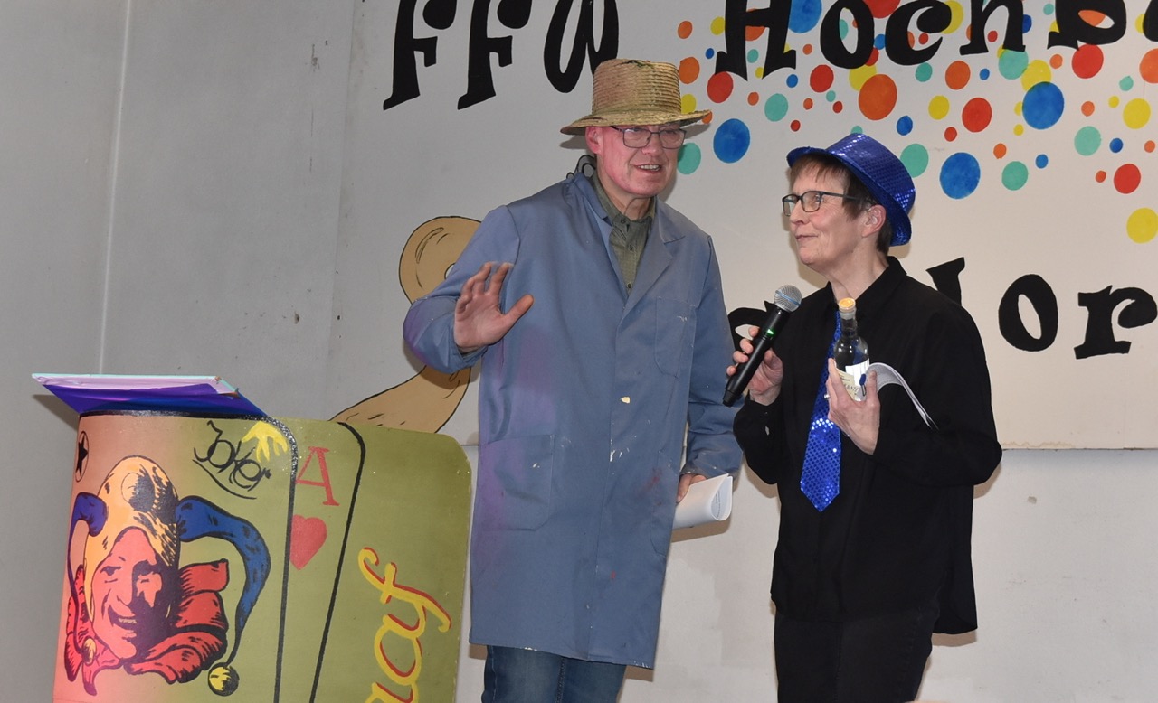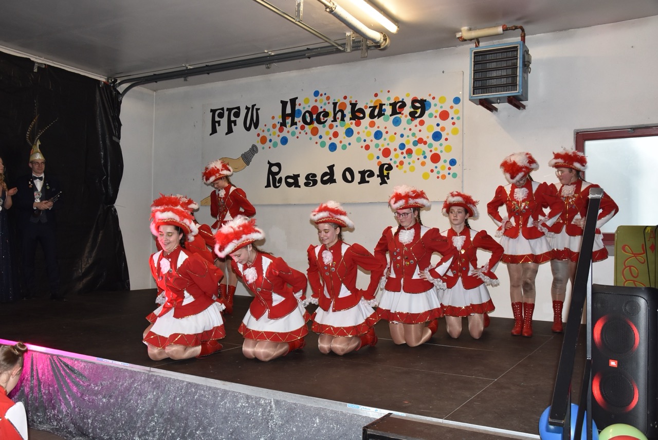 Unter dem Slogan „Sterne funkeln, der Himmel lacht, Senioren feiern Fasenacht“ hatte die Katholische Kirchengemeinde und die Point-Alpha-Gemeinde Rasdorf zur Seniorenfastnacht eingeladen. Das närrische Publikum, in der bis auf den letzten Platz besetzten Narrhalla Feuerwehrgerätehaus Rasdorf, bekam ein buntes Programm geboten. Nach der gereimten Begrüßung durch Bürgermeister Jürgen Hahn, wartete Markus Weller in der Bütt mit Neuigkeiten aus Rasdorf auf. Eine schwierige Rechenaufgabe hatten Nele Fladung, Mariann Bohlen und Ida Sauerbier, einstudiert von Vanessa Fladung, zu lösen und zum Schluss musste jede „vier Torten“ verspeisen. In Platt konnte man die Erschaffung der Welt bis zum Sündenfall in der Bütt von Annette Hardegen hören, bevor die Pflaumen auf dem Pflaumenbaum der Gymnastik III musikalisch reif waren. Sie gaben auch als „Die Höhner“ im Programm den Schlusston an. Adrette männlicher Bienchen mit akrobatischen Zügen waren aus Setzelbach zum Showtanz angeflogen (Trainerinnen Linda Gärtner, Eva Herbert). Männer haben einen anderen Ordnungssinn und Frauen haben nix im Schrank. Da die neue Leggins der Akteurin (Dagmar Neumeyer-Veltum) Vakuum gezogen hatte, musste der Bürgermeister beim Ausziehen behilflich sein. Das Programm lockerten die Minigarde (Trainerinnen Frieda Jansohn, Antonia Spiegel), Teeniegarde (Trainerinnen Tabea Gollbach, Maria Helmke) und die Junggarde (Trainerinnen: Celina Abel, Larissa Gollbach) aus Grüsselbach mit ihren Gardetänzen auf und kamen um eine Zugabe nicht umhin. Ein von akrobatischen Sequenzen geprägter Gardetanz zeigte das A-Team aus Rasdorf (Trainerin Sarah Seidel) und war ein Augenschmaus. Ein buntes farbenprächtiges Bild boten die 21 Kinder vom Kindersingkreis mit ihren fröhlichen bewegungsintensiven Liedern (Leitung Stephanie Hardegen, Jacqueline Mathes). Natürlich durften Ihre Lieblichkeit Prinzessin Elisa, faschingsverrückte Hundeliebhaberin mit Dekohand aus dem Rückerser Städterand und Seine Tollität Prinz Johannes, fußballspielender Eintracht-Fan mit Motorenlärm vom silbernen Stern (Elisa und Johannes Ebert) der KVG nicht fehlen. Unter den Klängen des Trommel- und Fanfarenzuges der Freiwilligen Feuerwehr Rasdorf, gaben sie den Seniorinnen und Senioren die Ehre und bevölkerten mit dem ganzen Hofstaat nebst Garden die Bühne. Mit närrischen, pointierten Versen führten Annette Hardegen und Ursula Veltum durch das Programm. Sie dankten der Freiwilligen Feuerwehr Rasdorf (Wehrführer Maik Lewalter) für die Bereitstellung des Feuerwehrgerätehaus als Narrhalla und den Mitgliedern des Pfarrgemeinderates für die helfenden Hände. Für die Tuschs und die Schunkelrunden sorgte das Duo Steffi und Siegfried aus Fulda.