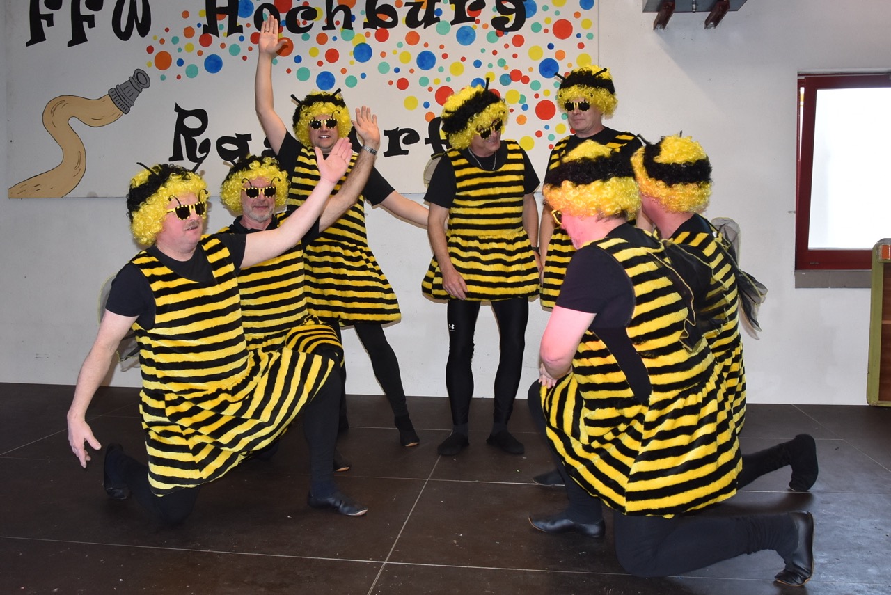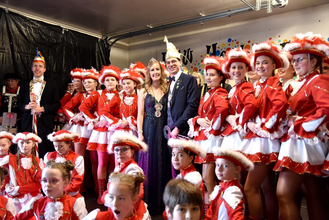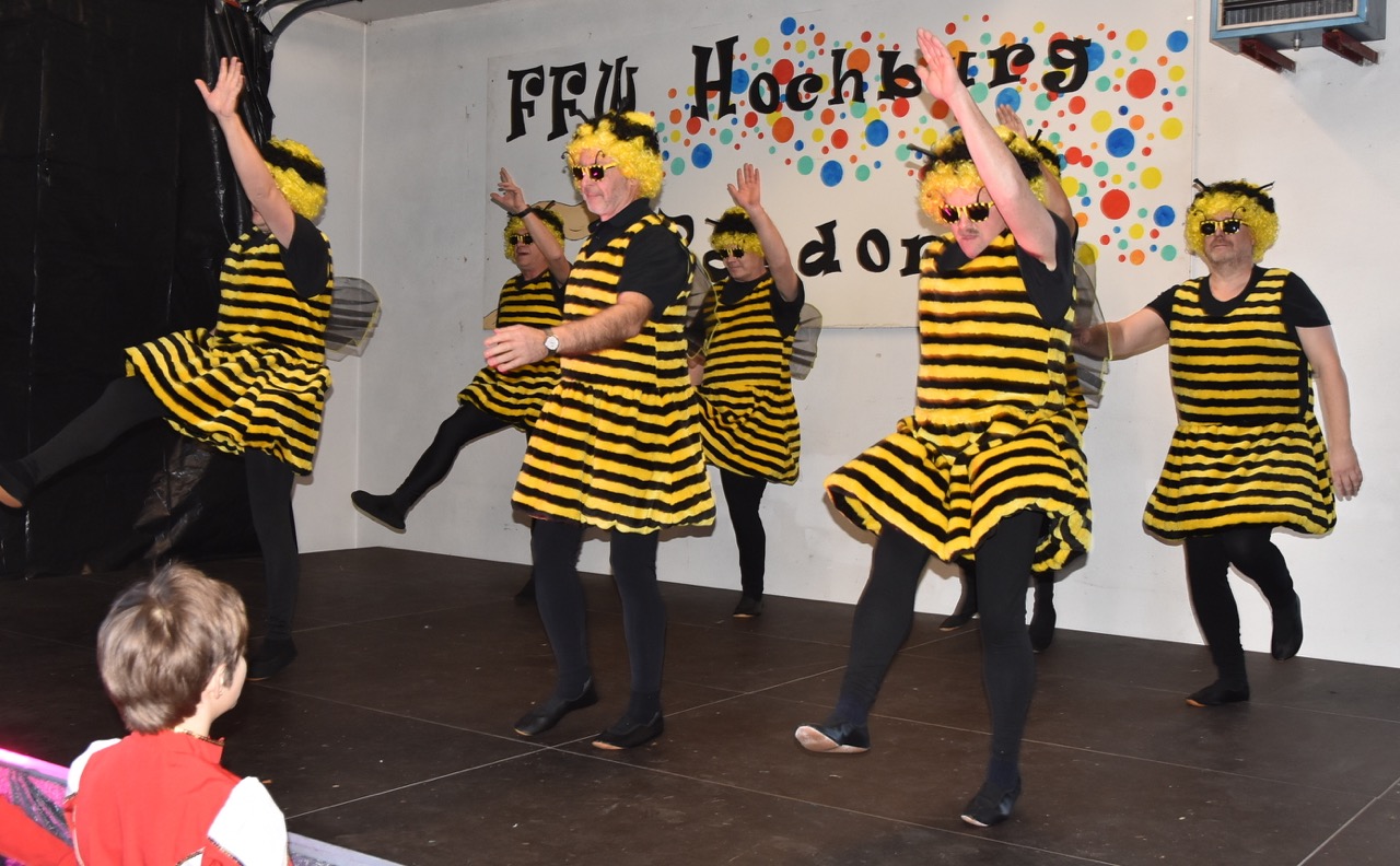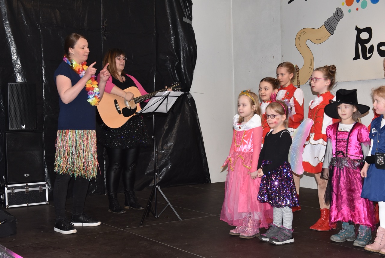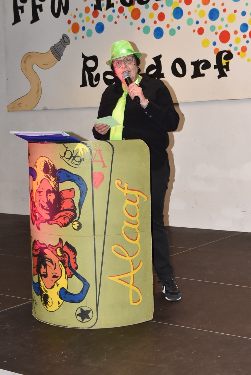 Unter dem Slogan „Sterne funkeln, der Himmel lacht, Senioren feiern Fasenacht“ hatte die Katholische Kirchengemeinde und die Point-Alpha-Gemeinde Rasdorf zur Seniorenfastnacht eingeladen. Das närrische Publikum, in der bis auf den letzten Platz besetzten Narrhalla Feuerwehrgerätehaus Rasdorf, bekam ein buntes Programm geboten. Nach der gereimten Begrüßung durch Bürgermeister Jürgen Hahn, wartete Markus Weller in der Bütt mit Neuigkeiten aus Rasdorf auf. Eine schwierige Rechenaufgabe hatten Nele Fladung, Mariann Bohlen und Ida Sauerbier, einstudiert von Vanessa Fladung, zu lösen und zum Schluss musste jede „vier Torten“ verspeisen. In Platt konnte man die Erschaffung der Welt bis zum Sündenfall in der Bütt von Annette Hardegen hören, bevor die Pflaumen auf dem Pflaumenbaum der Gymnastik III musikalisch reif waren. Sie gaben auch als „Die Höhner“ im Programm den Schlusston an. Adrette männlicher Bienchen mit akrobatischen Zügen waren aus Setzelbach zum Showtanz angeflogen (Trainerinnen Linda Gärtner, Eva Herbert). Männer haben einen anderen Ordnungssinn und Frauen haben nix im Schrank. Da die neue Leggins der Akteurin (Dagmar Neumeyer-Veltum) Vakuum gezogen hatte, musste der Bürgermeister beim Ausziehen behilflich sein. Das Programm lockerten die Minigarde (Trainerinnen Frieda Jansohn, Antonia Spiegel), Teeniegarde (Trainerinnen Tabea Gollbach, Maria Helmke) und die Junggarde (Trainerinnen: Celina Abel, Larissa Gollbach) aus Grüsselbach mit ihren Gardetänzen auf und kamen um eine Zugabe nicht umhin. Ein von akrobatischen Sequenzen geprägter Gardetanz zeigte das A-Team aus Rasdorf (Trainerin Sarah Seidel) und war ein Augenschmaus. Ein buntes farbenprächtiges Bild boten die 21 Kinder vom Kindersingkreis mit ihren fröhlichen bewegungsintensiven Liedern (Leitung Stephanie Hardegen, Jacqueline Mathes). Natürlich durften Ihre Lieblichkeit Prinzessin Elisa, faschingsverrückte Hundeliebhaberin mit Dekohand aus dem Rückerser Städterand und Seine Tollität Prinz Johannes, fußballspielender Eintracht-Fan mit Motorenlärm vom silbernen Stern (Elisa und Johannes Ebert) der KVG nicht fehlen. Unter den Klängen des Trommel- und Fanfarenzuges der Freiwilligen Feuerwehr Rasdorf, gaben sie den Seniorinnen und Senioren die Ehre und bevölkerten mit dem ganzen Hofstaat nebst Garden die Bühne. Mit närrischen, pointierten Versen führten Annette Hardegen und Ursula Veltum durch das Programm. Sie dankten der Freiwilligen Feuerwehr Rasdorf (Wehrführer Maik Lewalter) für die Bereitstellung des Feuerwehrgerätehaus als Narrhalla und den Mitgliedern des Pfarrgemeinderates für die helfenden Hände. Für die Tuschs und die Schunkelrunden sorgte das Duo Steffi und Siegfried aus Fulda.
