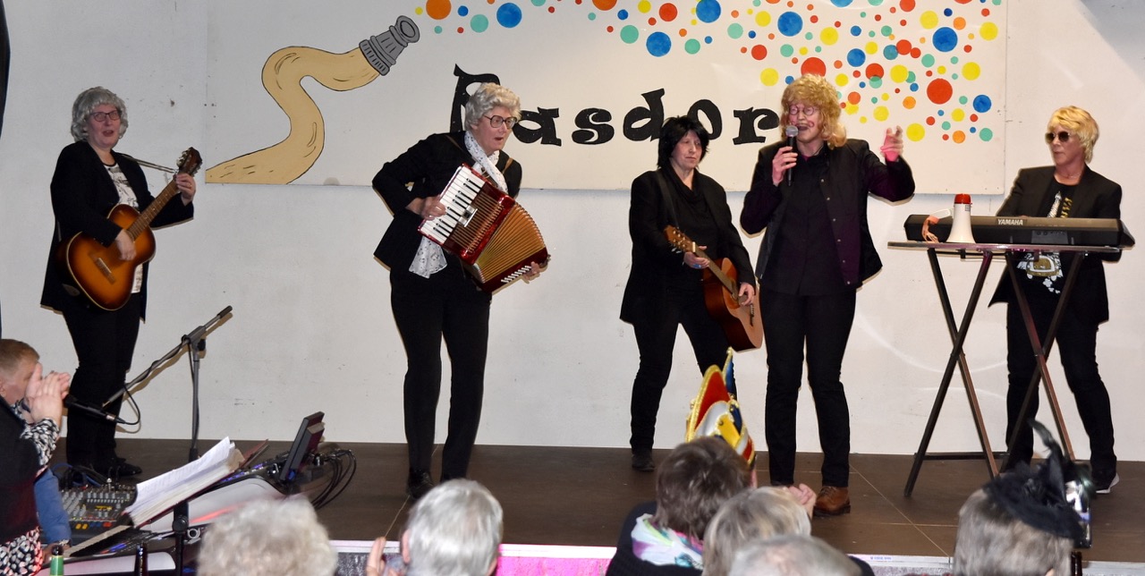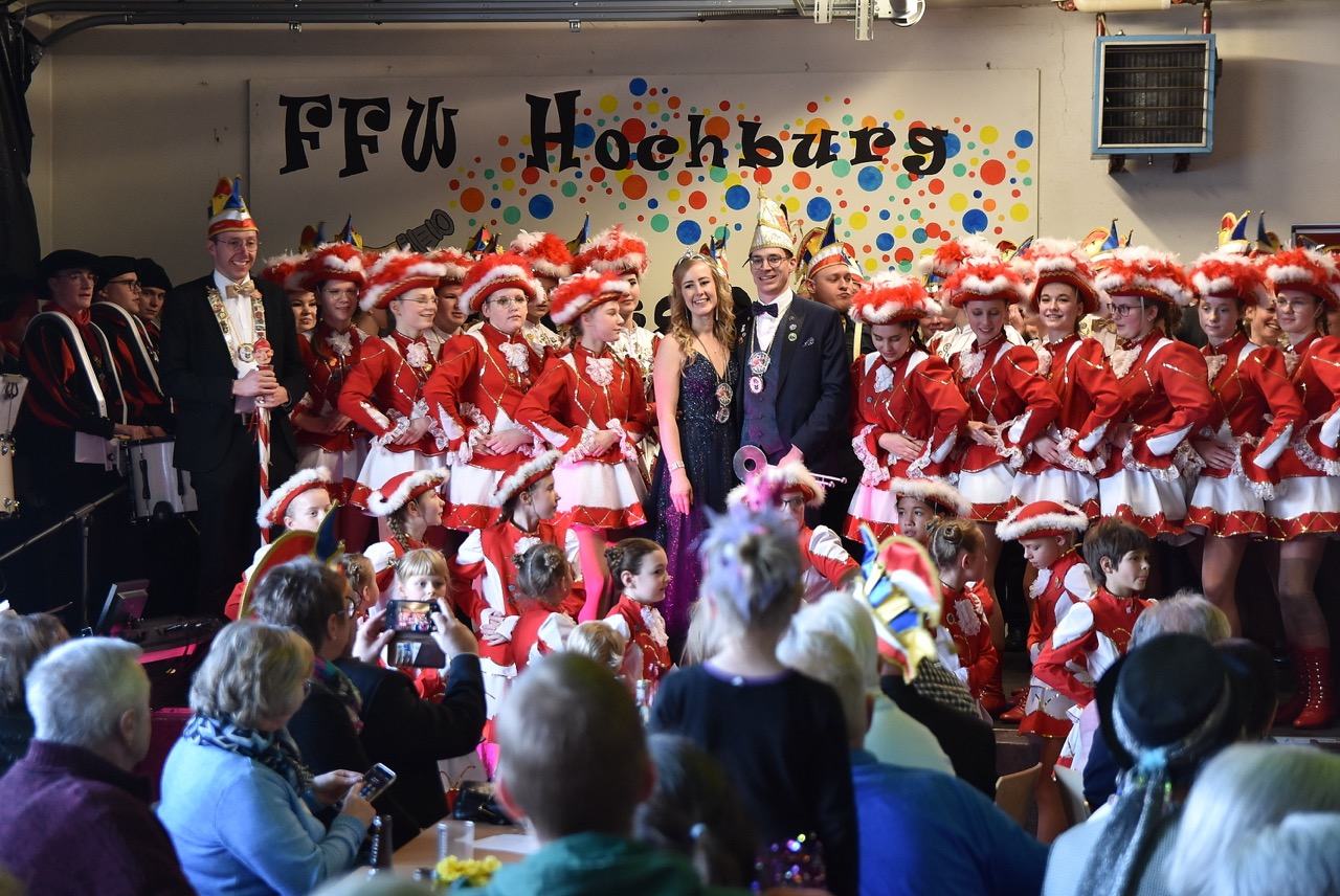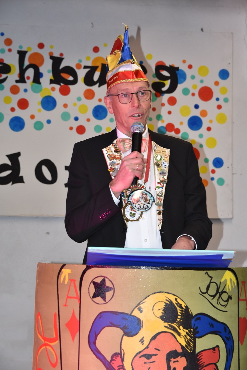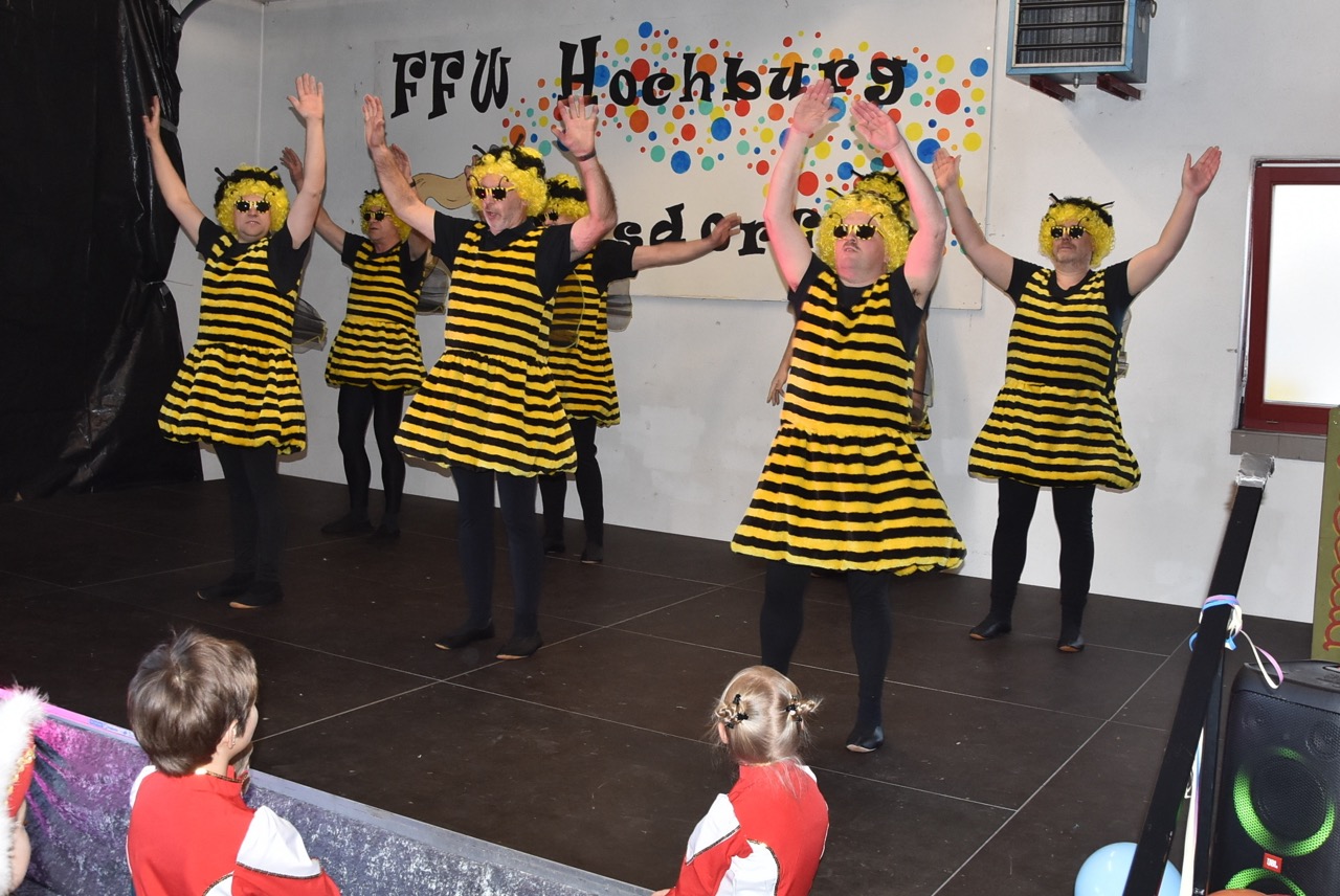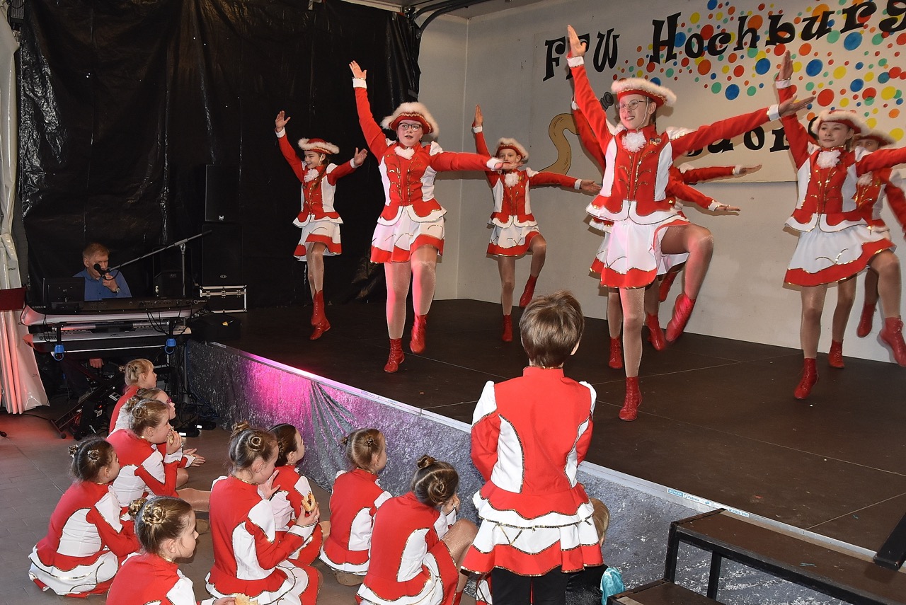 Unter dem Slogan „Sterne funkeln, der Himmel lacht, Senioren feiern Fasenacht“ hatte die Katholische Kirchengemeinde und die Point-Alpha-Gemeinde Rasdorf zur Seniorenfastnacht eingeladen. Das närrische Publikum, in der bis auf den letzten Platz besetzten Narrhalla Feuerwehrgerätehaus Rasdorf, bekam ein buntes Programm geboten. Nach der gereimten Begrüßung durch Bürgermeister Jürgen Hahn, wartete Markus Weller in der Bütt mit Neuigkeiten aus Rasdorf auf. Eine schwierige Rechenaufgabe hatten Nele Fladung, Mariann Bohlen und Ida Sauerbier, einstudiert von Vanessa Fladung, zu lösen und zum Schluss musste jede „vier Torten“ verspeisen. In Platt konnte man die Erschaffung der Welt bis zum Sündenfall in der Bütt von Annette Hardegen hören, bevor die Pflaumen auf dem Pflaumenbaum der Gymnastik III musikalisch reif waren. Sie gaben auch als „Die Höhner“ im Programm den Schlusston an. Adrette männlicher Bienchen mit akrobatischen Zügen waren aus Setzelbach zum Showtanz angeflogen (Trainerinnen Linda Gärtner, Eva Herbert). Männer haben einen anderen Ordnungssinn und Frauen haben nix im Schrank. Da die neue Leggins der Akteurin (Dagmar Neumeyer-Veltum) Vakuum gezogen hatte, musste der Bürgermeister beim Ausziehen behilflich sein. Das Programm lockerten die Minigarde (Trainerinnen Frieda Jansohn, Antonia Spiegel), Teeniegarde (Trainerinnen Tabea Gollbach, Maria Helmke) und die Junggarde (Trainerinnen: Celina Abel, Larissa Gollbach) aus Grüsselbach mit ihren Gardetänzen auf und kamen um eine Zugabe nicht umhin. Ein von akrobatischen Sequenzen geprägter Gardetanz zeigte das A-Team aus Rasdorf (Trainerin Sarah Seidel) und war ein Augenschmaus. Ein buntes farbenprächtiges Bild boten die 21 Kinder vom Kindersingkreis mit ihren fröhlichen bewegungsintensiven Liedern (Leitung Stephanie Hardegen, Jacqueline Mathes). Natürlich durften Ihre Lieblichkeit Prinzessin Elisa, faschingsverrückte Hundeliebhaberin mit Dekohand aus dem Rückerser Städterand und Seine Tollität Prinz Johannes, fußballspielender Eintracht-Fan mit Motorenlärm vom silbernen Stern (Elisa und Johannes Ebert) der KVG nicht fehlen. Unter den Klängen des Trommel- und Fanfarenzuges der Freiwilligen Feuerwehr Rasdorf, gaben sie den Seniorinnen und Senioren die Ehre und bevölkerten mit dem ganzen Hofstaat nebst Garden die Bühne. Mit närrischen, pointierten Versen führten Annette Hardegen und Ursula Veltum durch das Programm. Sie dankten der Freiwilligen Feuerwehr Rasdorf (Wehrführer Maik Lewalter) für die Bereitstellung des Feuerwehrgerätehaus als Narrhalla und den Mitgliedern des Pfarrgemeinderates für die helfenden Hände. Für die Tuschs und die Schunkelrunden sorgte das Duo Steffi und Siegfried aus Fulda.