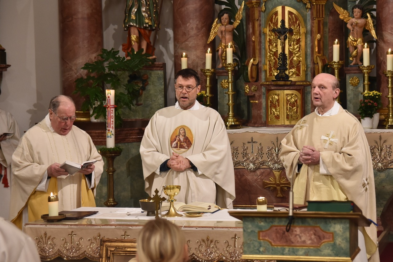 Pfarrer Markus Günther feierte in Konzelebration mit den Pfarrer Franz-Peter Breidbach und Bernhard Preis, sowie zahlreichen Gläubigen in der Pfarrkirche St. Laurentius Ufhausen einen Gedenkgottesdienst. In diesem nahm das Gebet um Seligsprechung einen zentralen Platz ein. Abtbischof Bonifaz Sauer OSB wurde am 10. Januar 1877 in Oberufhausen bei Eiterfeld geboren. Er erhielt den Taufnamen Joseph. Als Missionsbenediktiner von St. Ottilien ging er nach Korea. Dort gründete er als Abt die Abtei in Seoul, war Apostolischer Vikar von Wonsan, Nordkorea, wurde 1921 Bischof und baute in Tokwon eine blühende Mission auf. Bei der Machtübernahme der Kommunisten 1949 wurde das Kloster aufgelöst, die Mönche und Schwestern inhaftiert. Sein Todestag ist am 07. Februar 1950 und sein Grab ist nicht bekannt. In seiner Predigt stellte Markus Günther die Frage, wie es sein könne, dass im 20. Jahrhundert ein Bischof in einem fernen Land durch Entbehrung und Strapazen versterbe. Nordkorea stehe an erster Stelle bei der Christenverfolgung. Aber in Vietnam habe er im Jahr 2023 bei einem Besuch gehört, dass Benediktiner wenige Jahre zuvor misshandelt worden seien. Es gäbe in solchen Ländern Menschen, „die unter der Decke“ ihren christlichen Glauben lebten. Pfarrer Markus Günther äußerte den Wunsch, dass zum nächsten internationalen Weltjugendtag in Seoul im Jahre 2027 auch Jugendliche aus Ufhausen mitfahren könnten. Bonifaz Sauer habe sein Leben und Glauben aus Oberufhausen mit in die Mission genommen. Ihm seien Beständigkeit und Ausdauer in einer schwierigen Zeit eigen gewesen und er sei in Nordkorea geblieben. So sei sein Blut als Märtyrer auch Samen für uns als Glaubende.