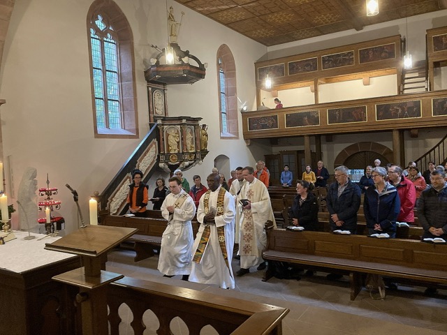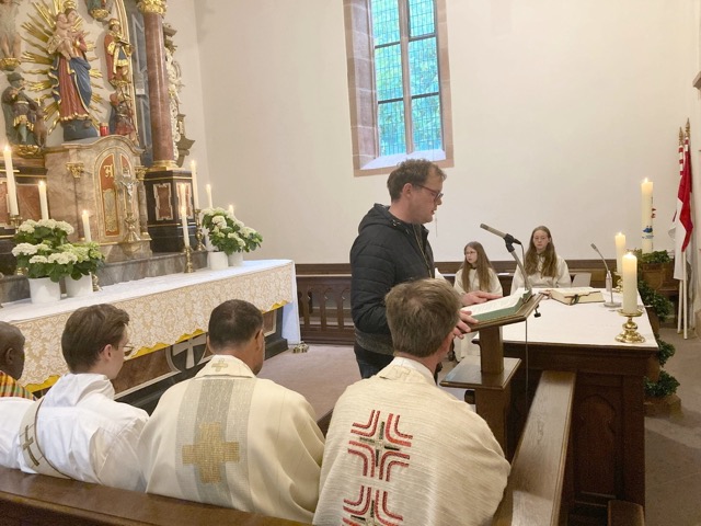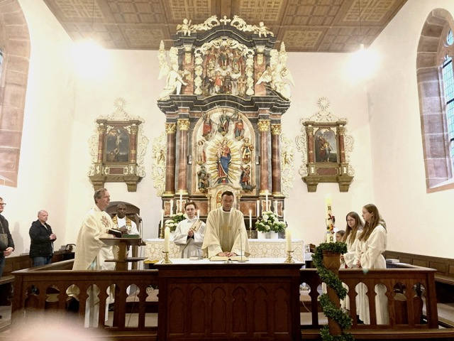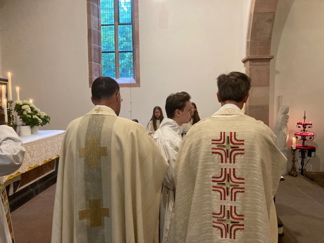 In diesem Jahr war Hauptzelebrant Pfarrer Markus Günther, der zum ersten Mal auf dem Gehilfersberg war. Mit ihm waren die Pfarrer Andreas Matthäi und Aloysius Ndiukwu und Diakon Marcel Krawietz am Altar. Die Orgel spielte Klara Sauerbier.