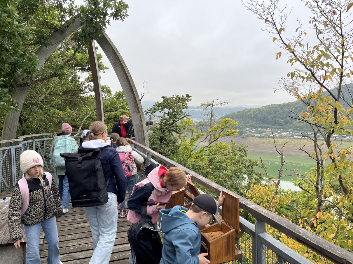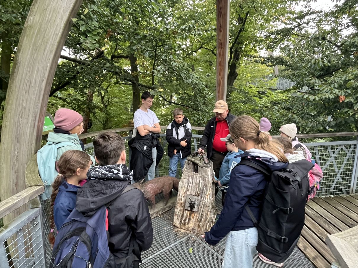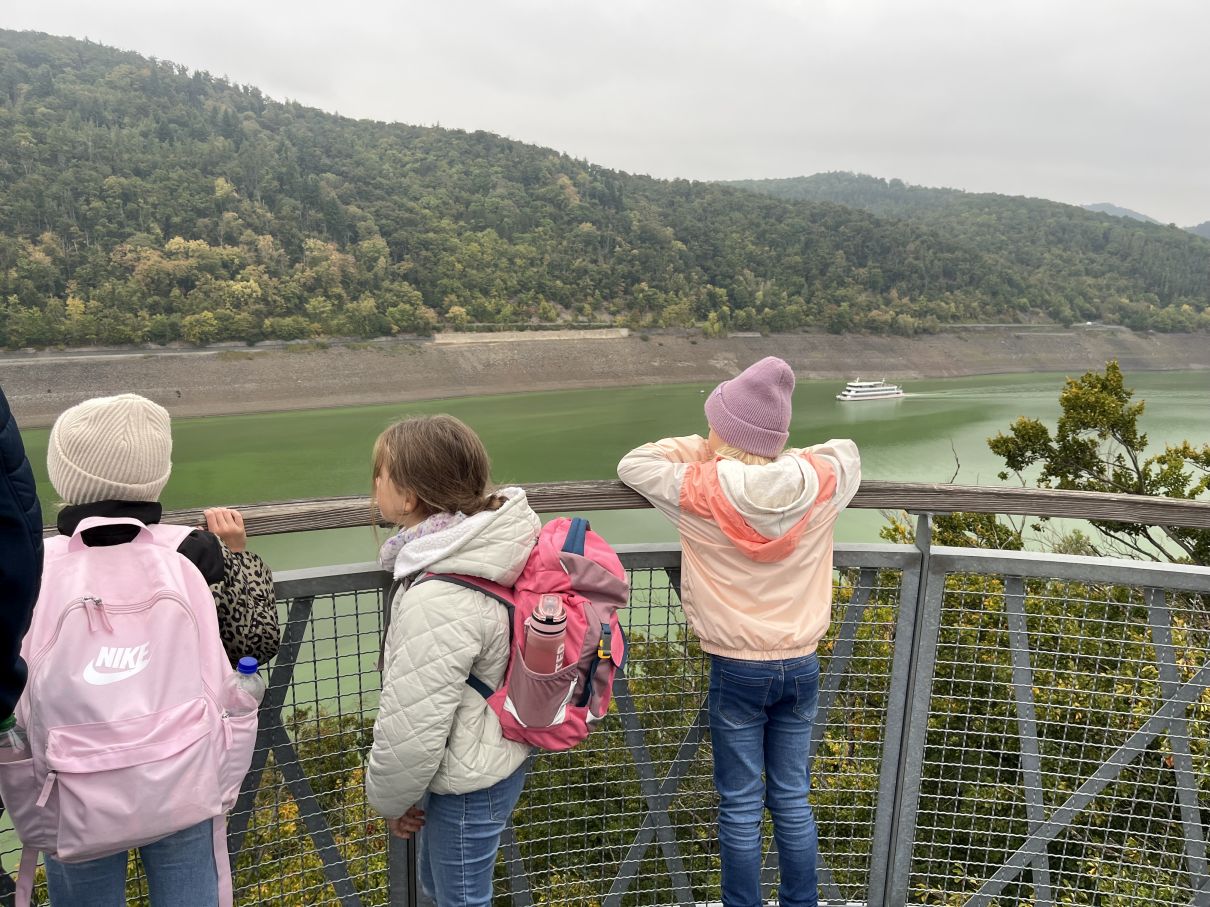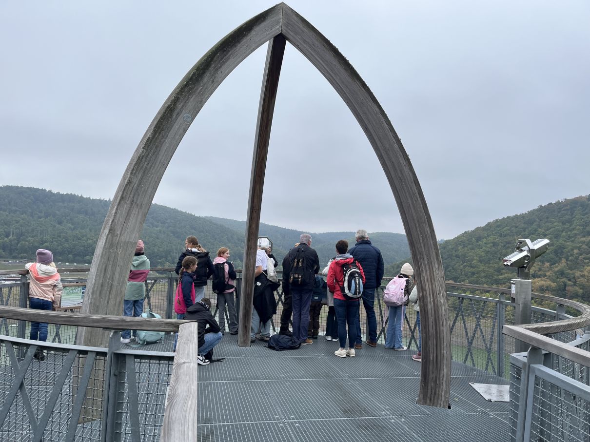 Erstes Ziel war der Baumkronenweg am Edersee. Dort wurden die Kinder und ihre Betreuer um 10:00 Uhr von zwei Naturparkführern empfangen, die die Gruppe über den Eichhörnchenweg und den Baumkronenweg begleiteten. Auf anschauliche und altersgerechte Weise erfuhren die Teilnehmenden Spannendes über die Natur und Geschichte der Region, die Entstehung des Edersees und die beeindruckende Staumauer.
