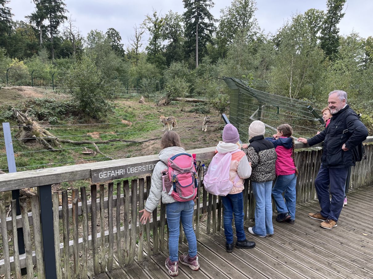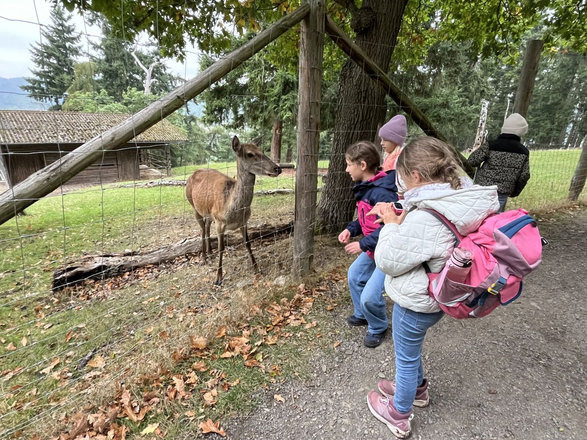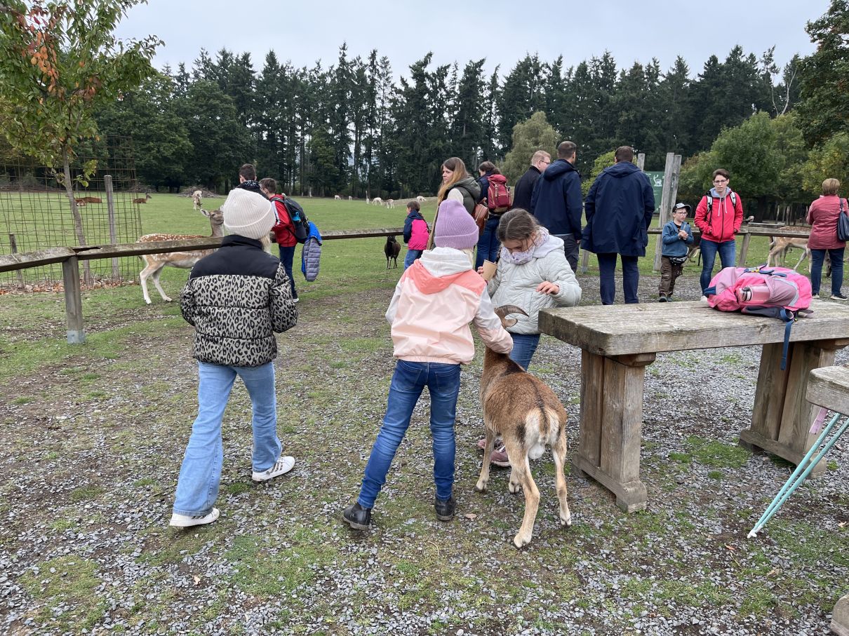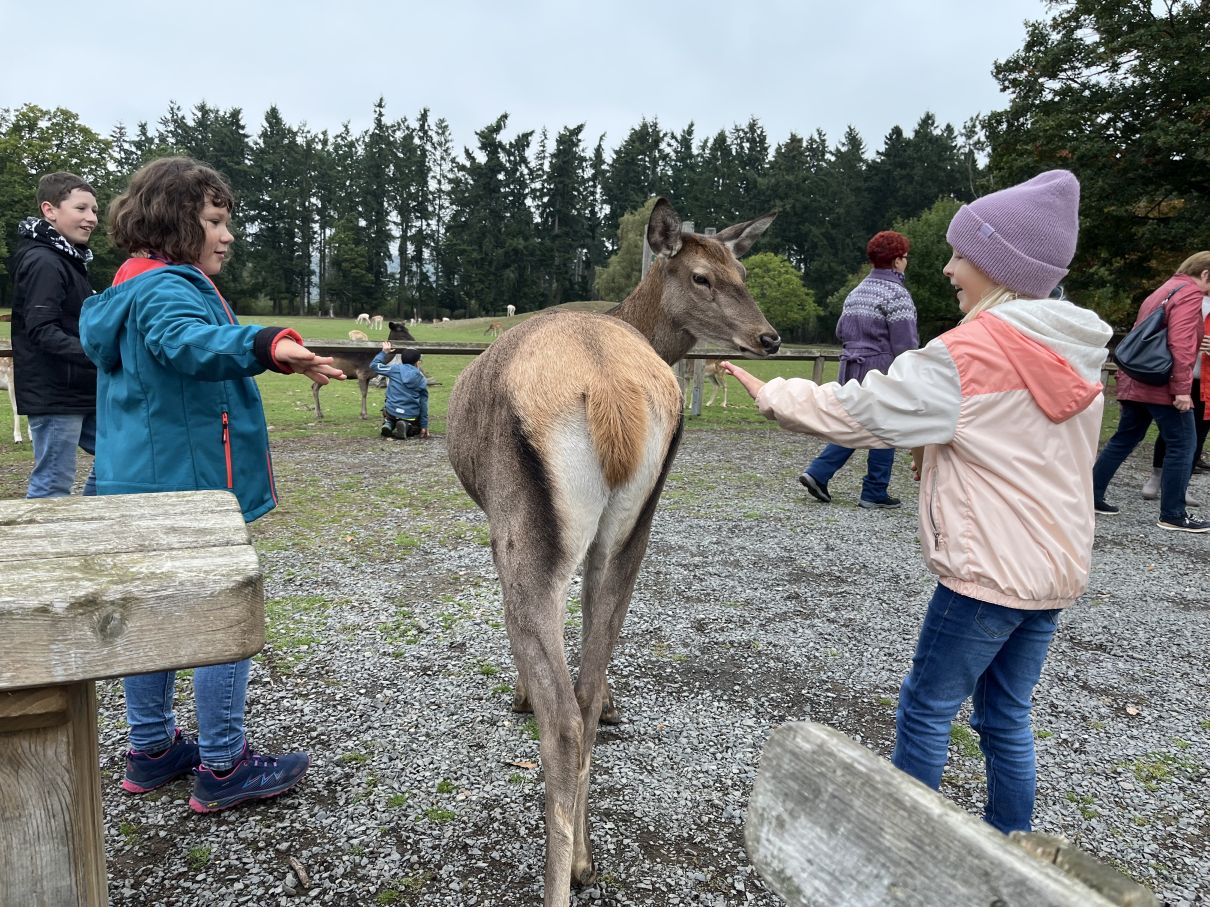 Im Wildtierpark gab es viele Tiere zu entdecken: Besonders beliebt waren die Zwergziegen im Streichelzoo. Außerdem konnten die Kinder und Betreuer Wisent, Wildpferde, Rotwild, Damwild, Mufflons, Luchse, Füchse, Dachse, Eichhörnchen, Alpensteinböcke, Wildschweine und vieles mehr beobachten. Besonders faszinierend waren das Europäische Wolfsrudel, die Luchse und die Greifvögel der Greifenwarte. Die Futterautomaten wurden rege genutzt, sodass die Kinder die Tiere füttern und streicheln konnten – ein Erlebnis, das manchen den Abschied schwer machte.