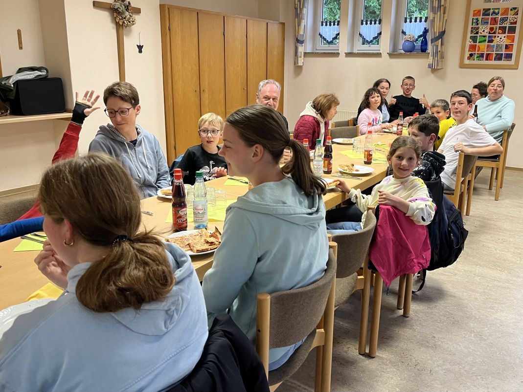 Gegen 17:45 Uhr kamen wir wieder in Steinbach an und ließen den Ausflug im Pfarrheim bei Pizza und Getränken ausklingen. Fazit: Die Messdienerinnen und Messdiener hatten einen unvergesslichen Tag und freuen sich schon auf den nächsten Ausflug.