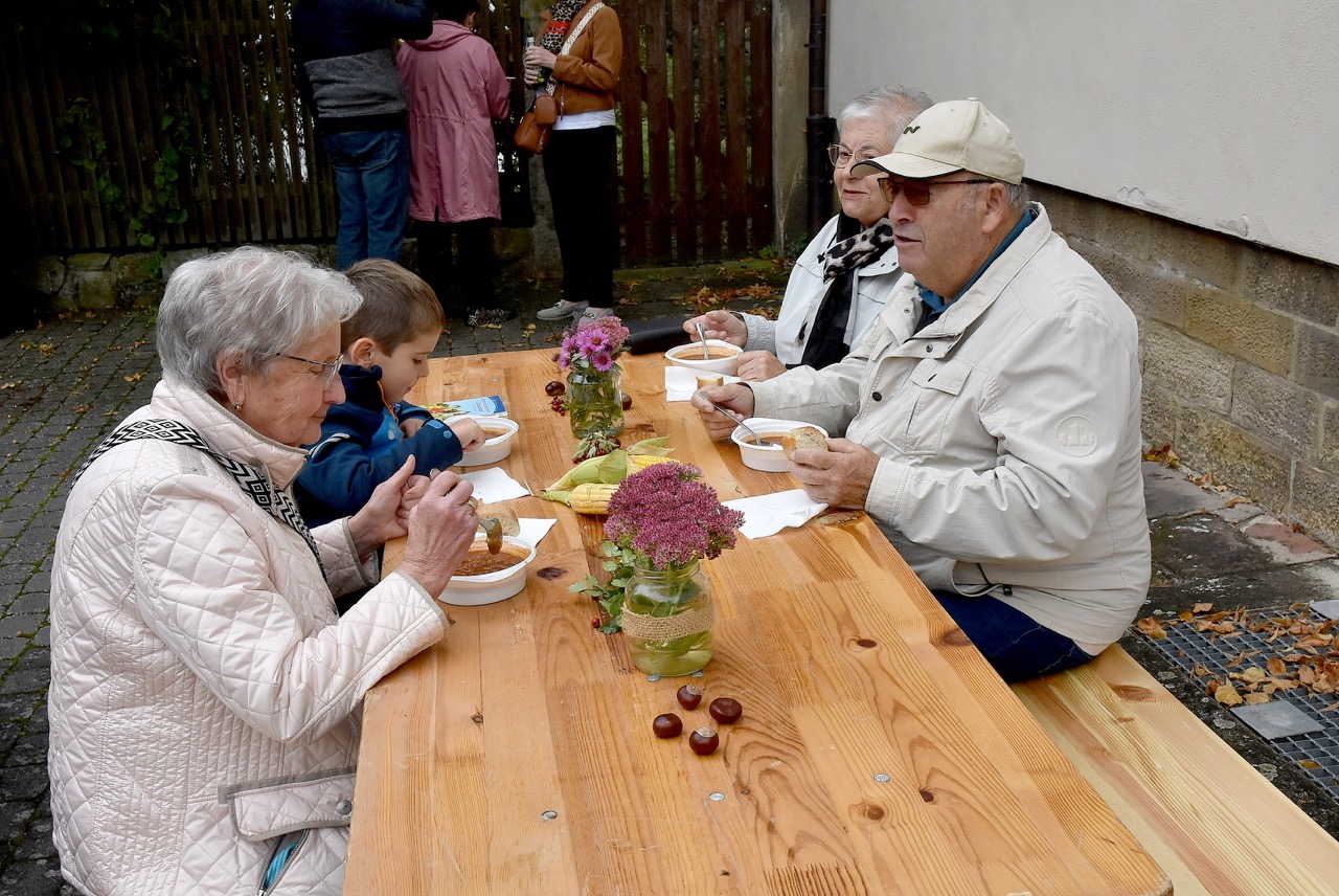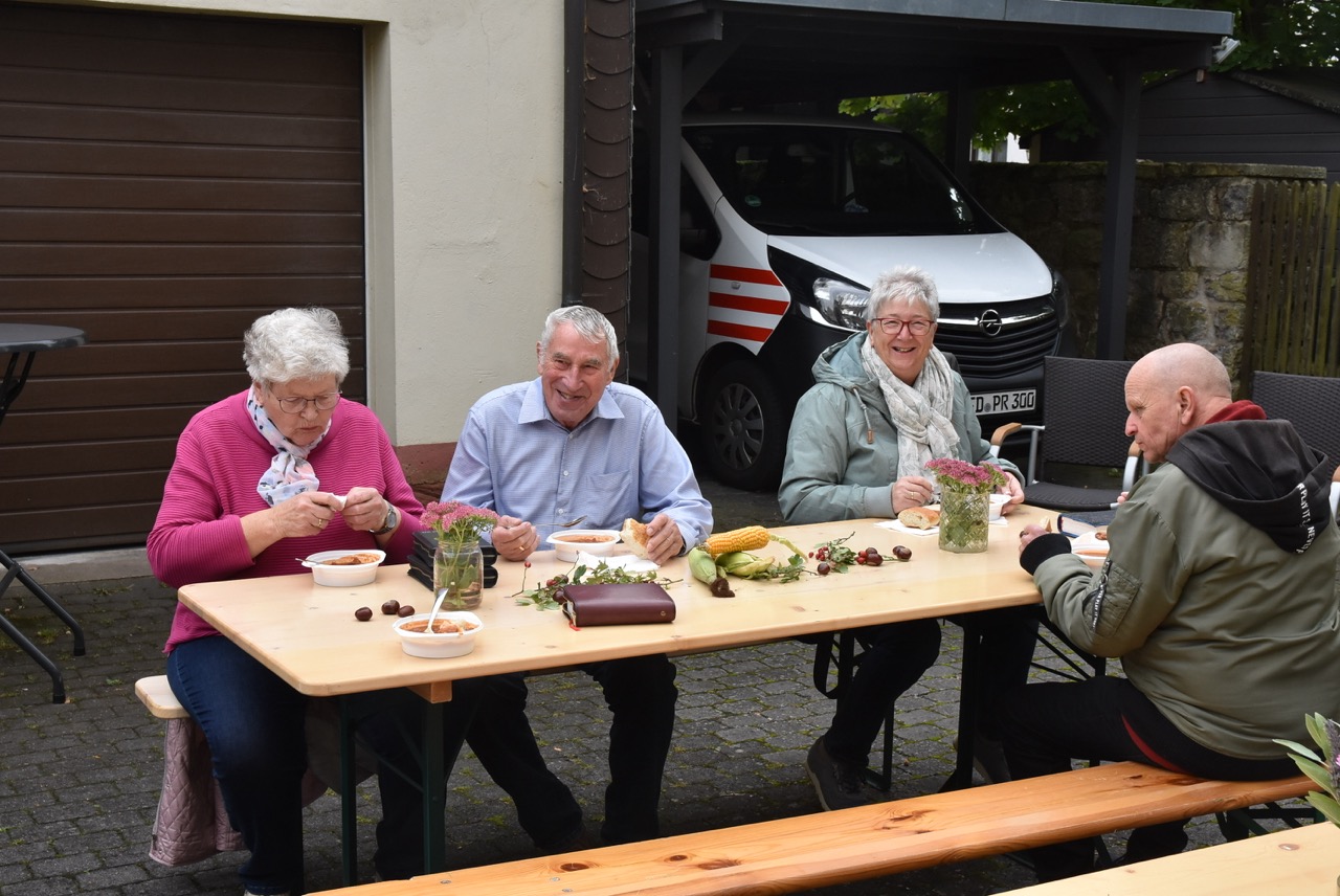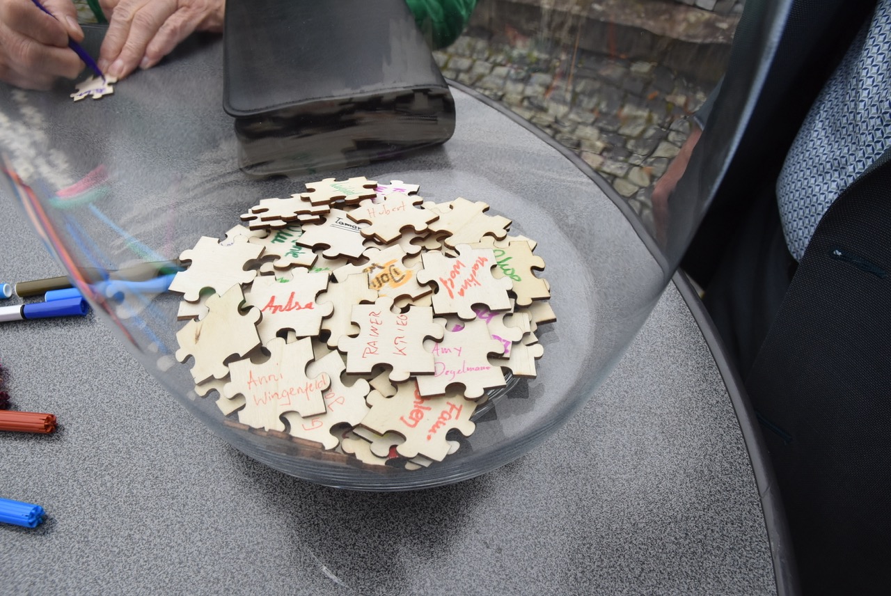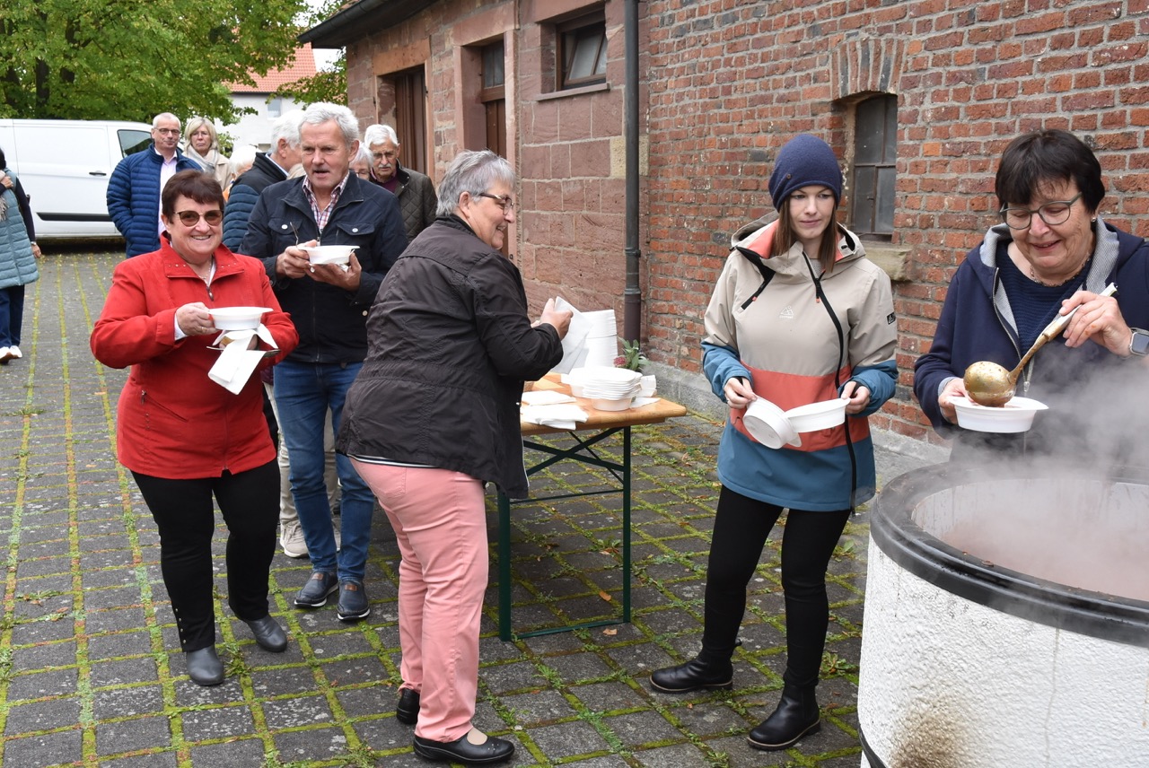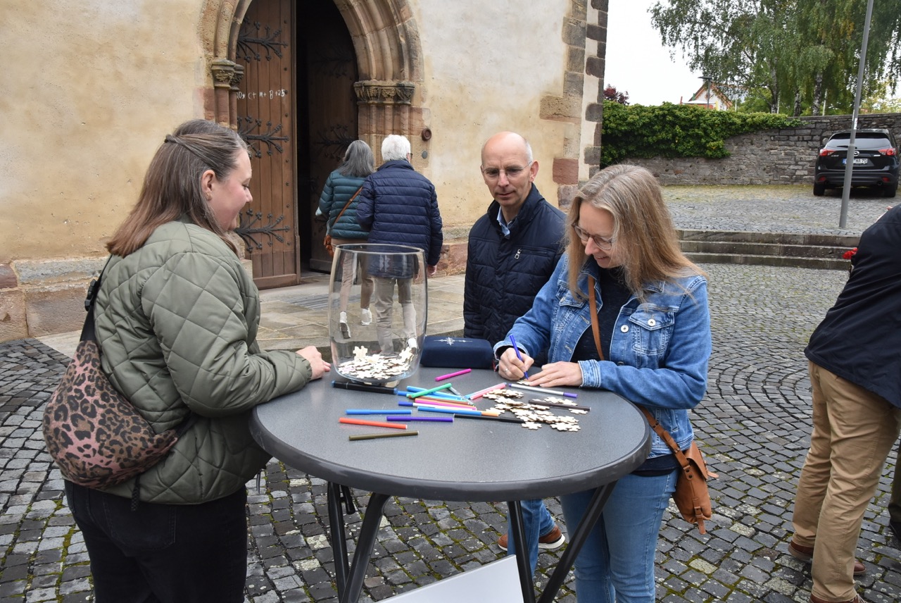 Pfarrer Markus Günther dankte den Küsterinnen Birgit Zentgraf und Christiane Budenz, dem Projektchor (Leitung Maria Budenz), an der Orgel Benjamin Weiss, den Lektorinnen und Lektoren aus den verschiedenen Pfarreien, dem FamGo-Team, das die Puzzleteile hergestellt hatte, sowie dem Verwaltungs- und Pfarrgemeinderat Rasdorf, die nach dem Gottesdienst mit „Gulaschkanone“, Getränken, Kaffee und Kuchen zum Verweilen, Begegnung und Gespräch eingeladen hatten.