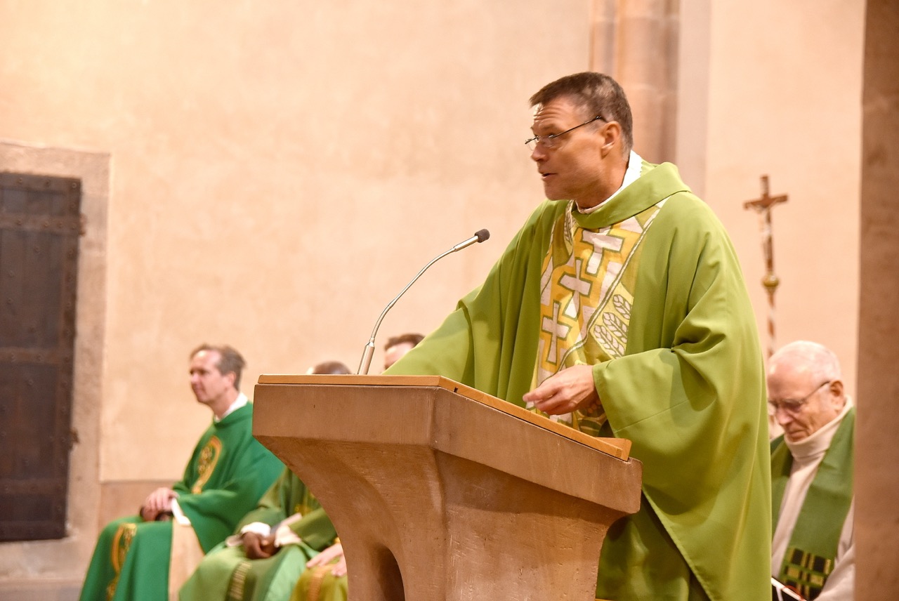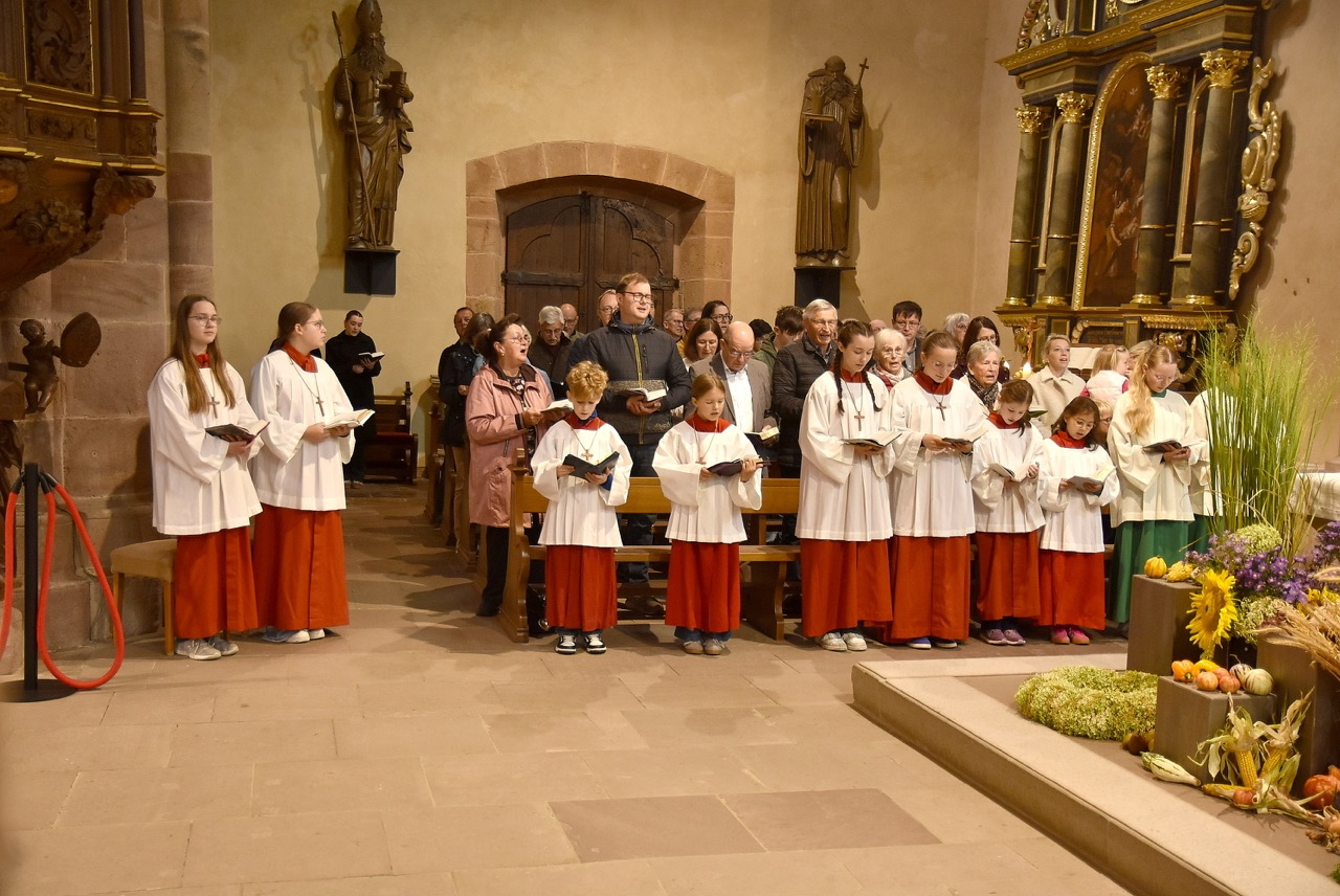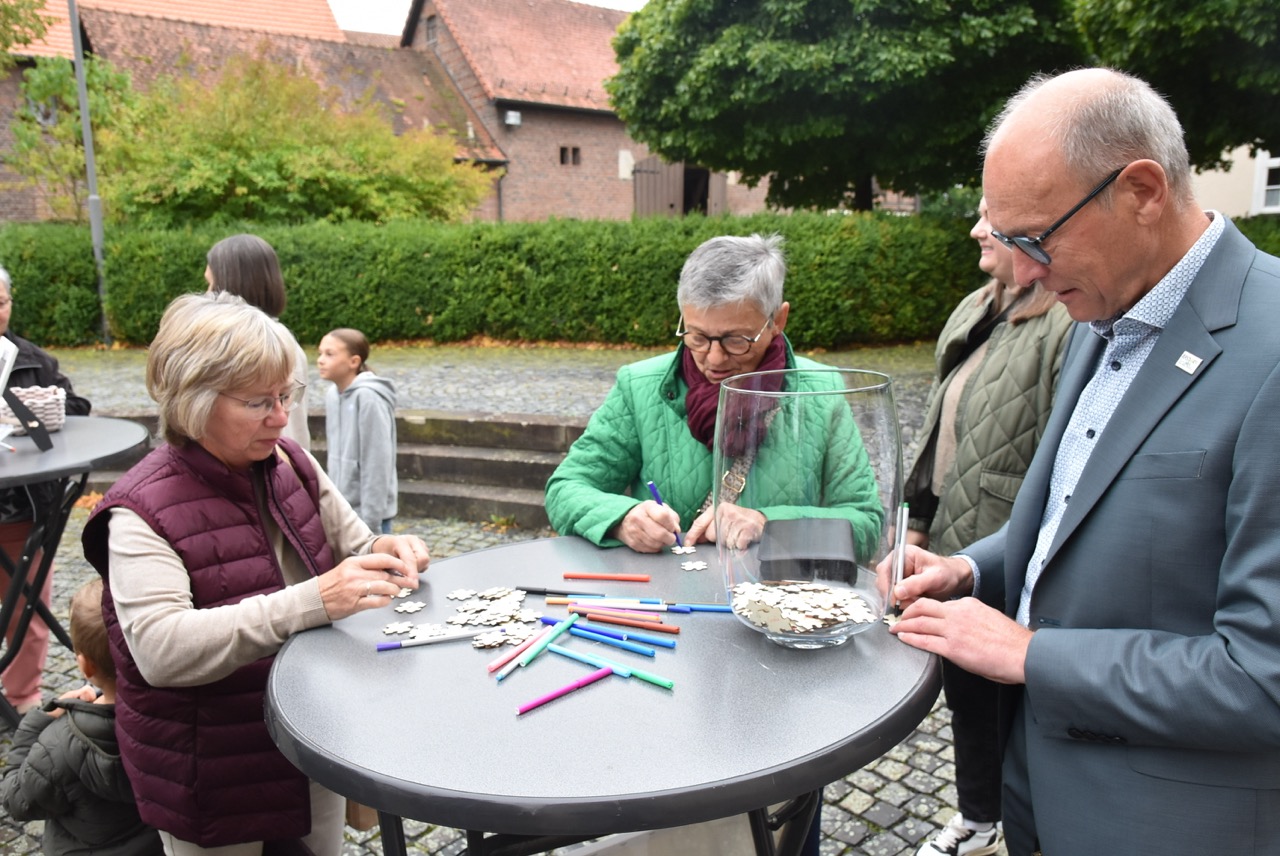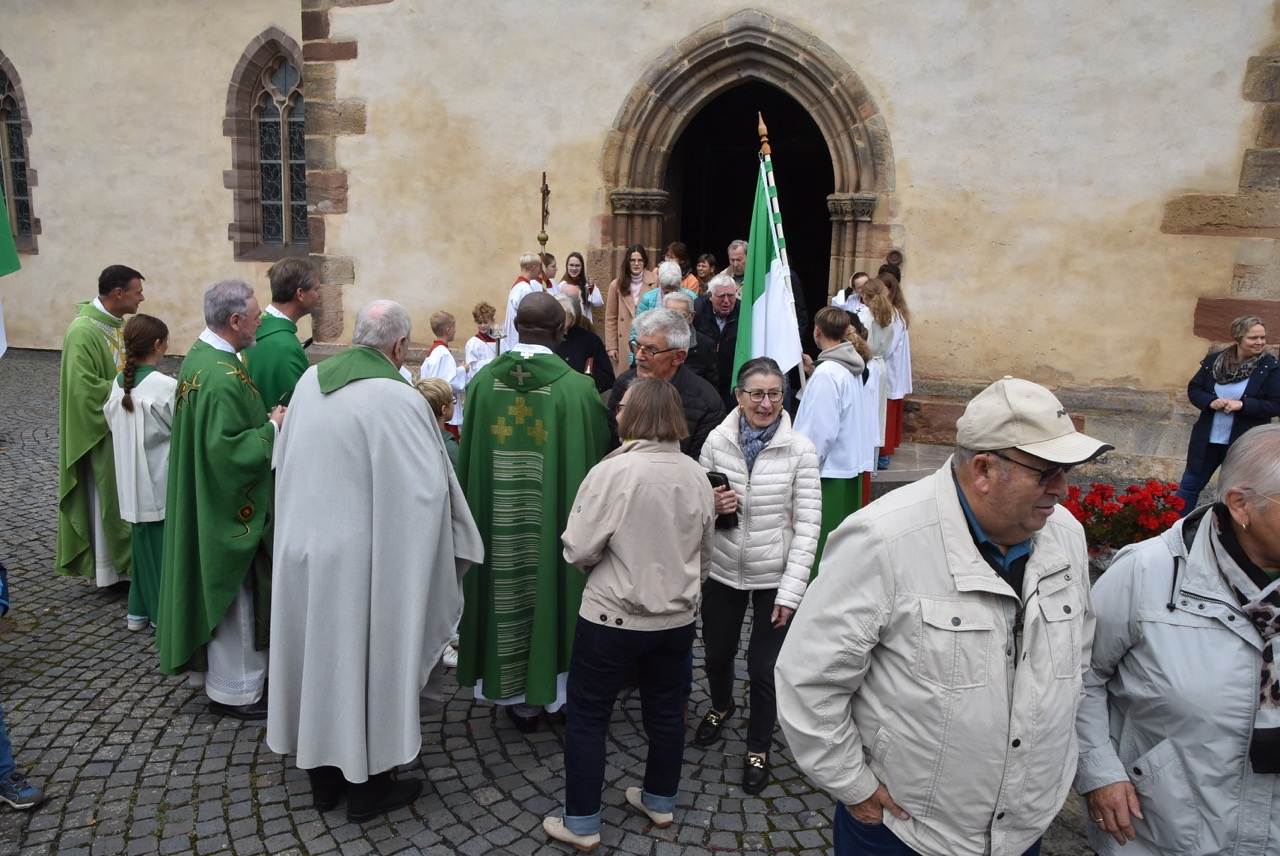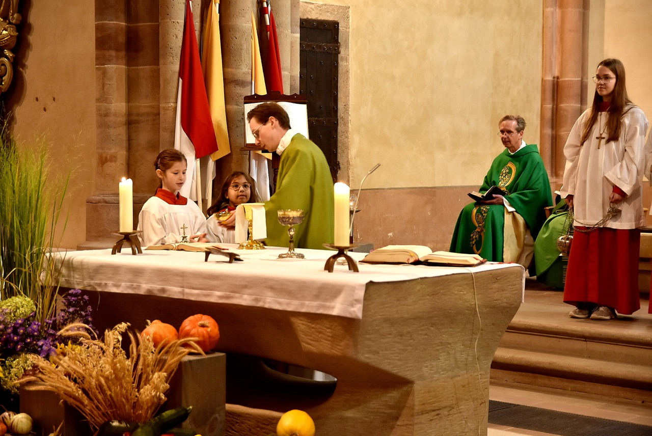 Unter dem Thema „Gemeinsam unterwegs“ hatte der Pastoralverbund Hessisches Kegelspiel zu den Heiligen 14 Nothelfern zum Gottesdienst in die Stiftskirche in Rasdorf die Gläubigen des gesamten Pastoralverbunds eingeladen. Das Familiengottesdienstteam (FamGo-Team) hatte Puzzleteile vorbereitet. Mit der Aufforderung „Gemeinsam unterwegs Aus vielen Ichs wird ein Wir! Sei auch du ein Teil davon im Pastoralverbund Hessisches Kegelspiel“ konnten die Teilnehmenden vor dem Gotteshaus ihren Namen auf Puzzleteile schreiben, die dann zu einem Ganzen zusammengefügt werden. Den Gottesdienst zelebrierte leitender Pfarrer Markus C. Günther in Konzelebration mit den Pfarrern Andreas Matthäi, Aloysius Ndiukwu, Marcel Krawietz, Winfried Vogel und Peter Hannappel. Er begrüßte die Teilnehmenden aus den Kirchengemeineden Burghaun, Hünhan, Langenschwarz, Neukirchen, Steinbach, Eiterfeld mit Filialen, Arzell mit Filialen, Wölf, Oberweisenborn, Großentaft mit Treischfeld und Soisdorf, Ufhausen mit Unterufhausen und Mansbach, Rasdorf mit Grüsselbach und Setzelbach. Seit dem 01. Oktober 2024 sei der Pastoralverbund per Dekret des Bischofs zur territorialen Umschreibung aufgefordert. Bezogen auf die Puzzleteile betonte Markus Günther in seiner Predigt, dass zum Gesamtbild jeder mit seinen Stärken und Schwächen, einzigartigen Begabungen, Geben und Nehmen beitragen könne. Puzzleteile, die sich nicht verbinden würden, blieben isoliert. Daraus könne eine soziale Schieflage entstehen, die den anderen nicht mehr wahrnimmt. Damit stellte er ein Bezug zum Tagesevangelium her, das die Geschichte von „dem armen Lazarus und dem Reichen“ erzählt. Darin werde deutlich, dass es „ein zu Spät“ gebe. Die Botschaft, dass einer von den Toten auferstanden sei, die jeden Sonntag bzw. in der Eucharistie gefeiert werden, sei keine Gewähr dafür, umzudenken und sich zu bekehren. Wo sich Gottlosigkeit breit mach, bestehe die Gefahr, dass der arme Lazarus vor unserer Haustür aus dem Blick gerade, betonte Markus Günther. Der Zusammenschluss der oben genannten Pfarreien von jenseits der A 7 bis zur thüringischen Grenze sei Mittel, um Gott zu loben, ihm Ehrfurcht zu erweisen, ihm zu dienen und dadurch die frohe Botschaft zu verkünden. Der leitende Pfarrer schloss seine Predigt mit dem Wunsch, dass jede/ jeder sein Puzzleteil dazu beitrage, damit ein Bild entstehe, das größer ist als die Summe seiner Einzelteile. Das Bild, das wir im Gesamten noch nicht sähen, das Gott aber schon längst als Vision von seinem Reich und als tiefste Sehnsucht in uns hineingelegt habe. Am Ende des Gottesdienstes stellte Gemeindereferentin Maria Martina Fischer die neue Referentin für Ehrenamtsförderung und Netzwerkarbeit im Pastoralverbund Lydia Hohmann vor, die seit dem 15. September 2025 tätig ist (nähre Beschreibung im Newsletter des Pastoralverbund).
