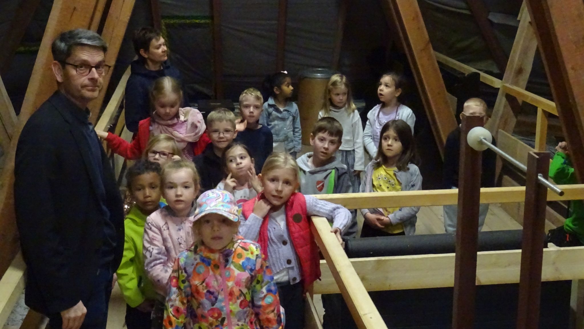 Der Höhepunkt jedoch war die Besteigung des Kirchturms. Wir zählten um 11 Uhr die Glockenschläge und durften sogar selbst am Glockenseil die Glocke zum Läuten bringen. Spannend waren die Töne der großen Orgelpfeifen die Herr Pfarrer Blümel erklingen ließ. Die Kirche ist ein Raum, in dem wir viel erleben durften.