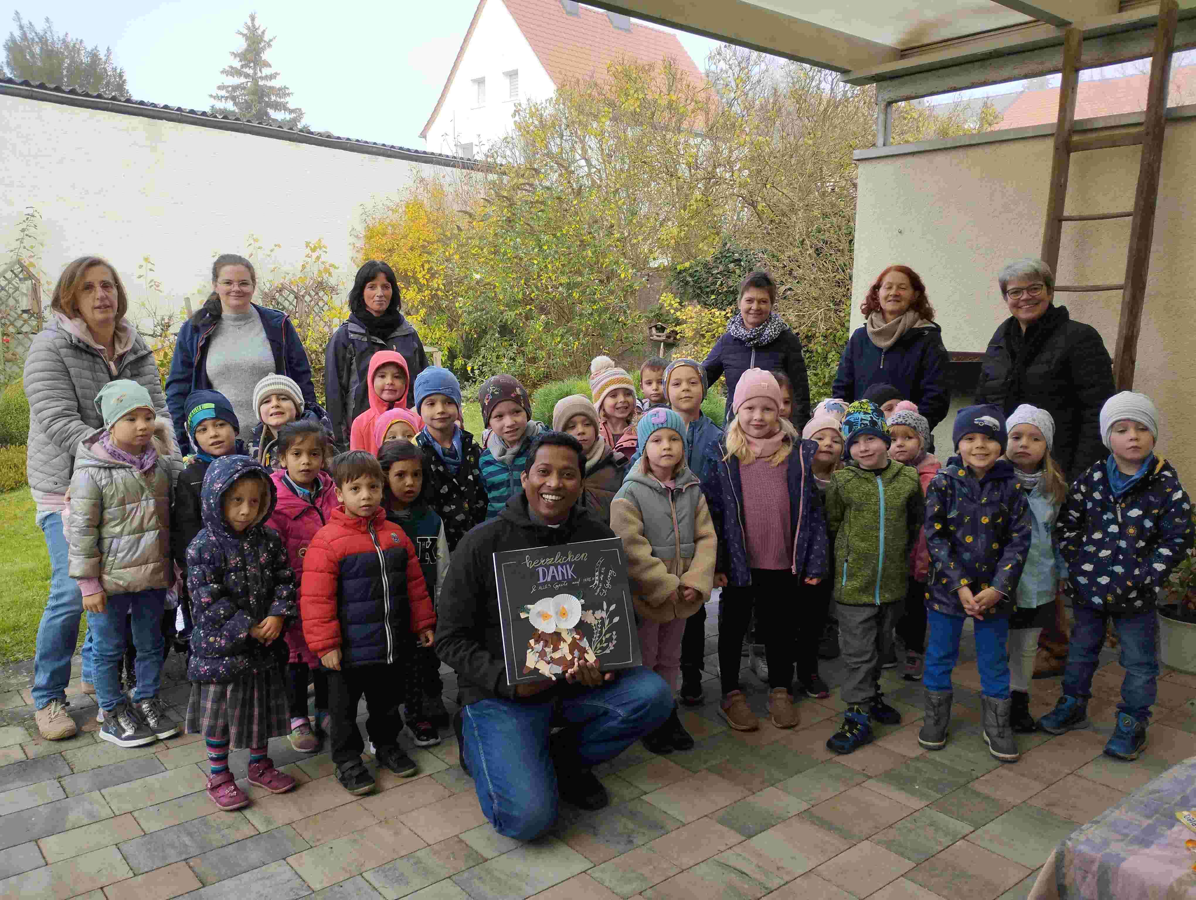 die Kinder und Ihre Erzieherinnen verabschieden sich bei Herrn Pater Binesh und bedanken sich für die vielen schönen gemeinsamen Stunden.