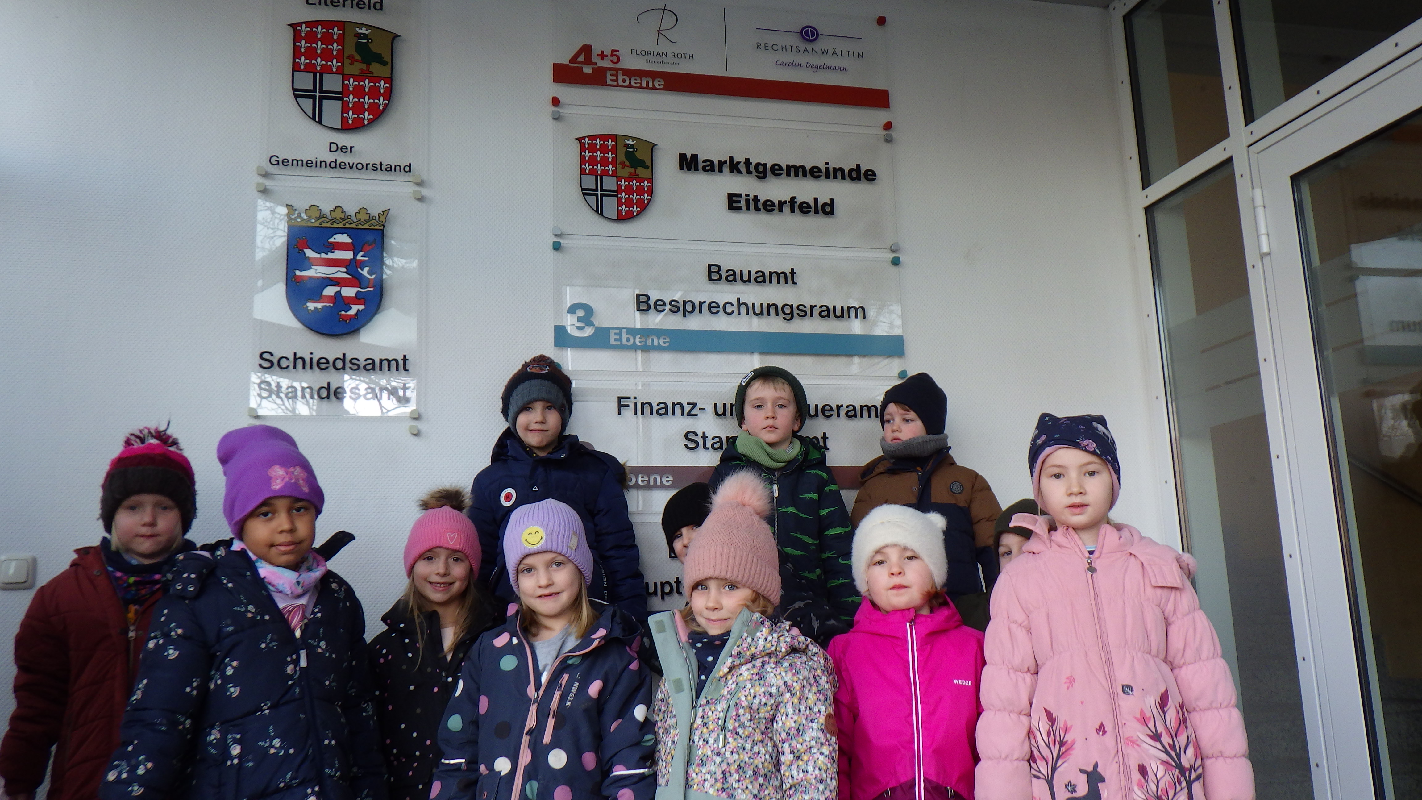Als Dankeschön überreichten die Kinder ein selbstgemaltes Wappen der Gemeinde Eiterfeld und sangen das Lied von den Kindern in den Gemeinden. Bürgermeisterin Dana Hauke freute sich sehr über den Besuch der Kinder und den lebendigen Austausch. Zum Abschied erhielt jedes Kind eine kleine süße Überraschung. Sie blickt einem Wiedersehen bereits erwartungsvoll entgegen, sei es bei einem erneuten Besuch im Rathaus oder an anderer Stelle in der Gemeinde.