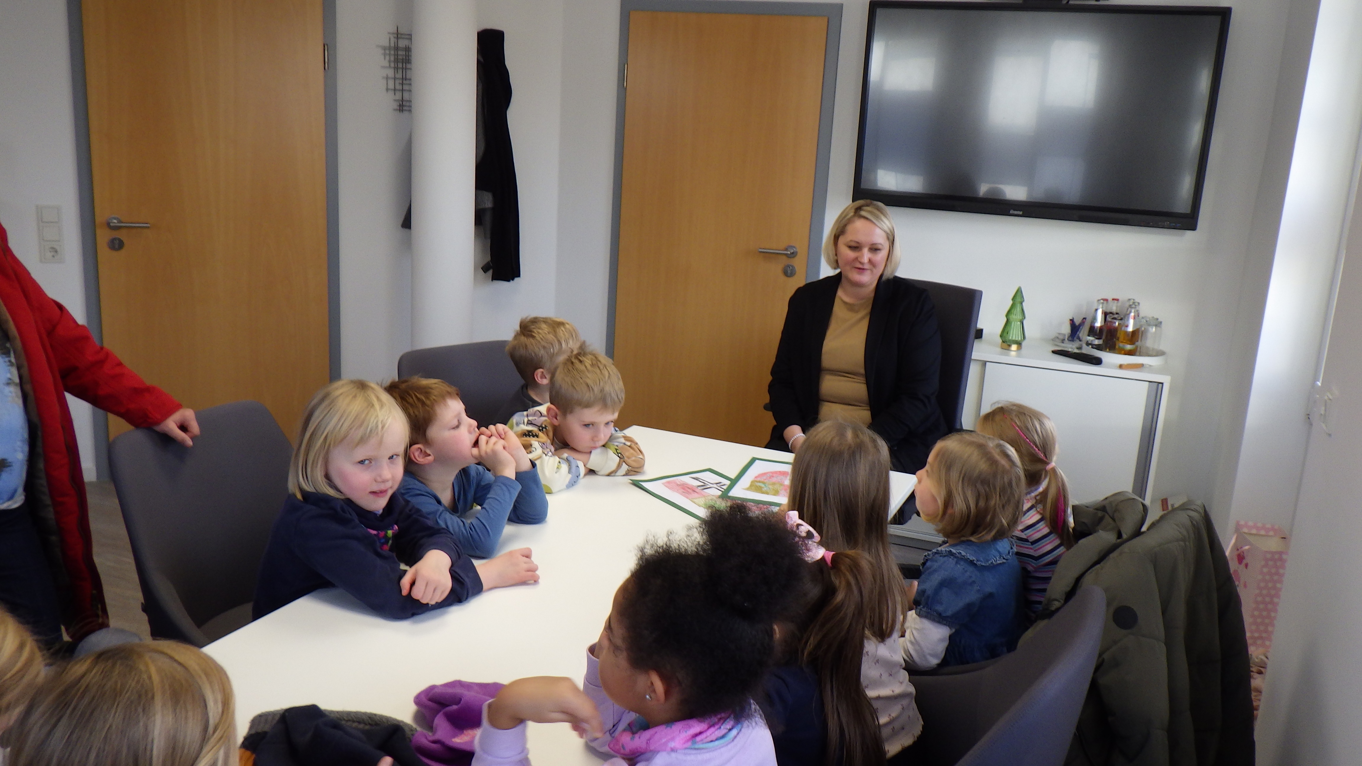 Um sich genauere Informationen zu beschaffen, was eigentlich eine Gemeinde ist, besuchten die Schulanfänger die Bürgermeisterin Frau Dana Hauke im Bürgermeisteramt. Frau Dana Hauke nahm sich Zeit, um die vielen Fragen der Schulanfänger, wie z. B.