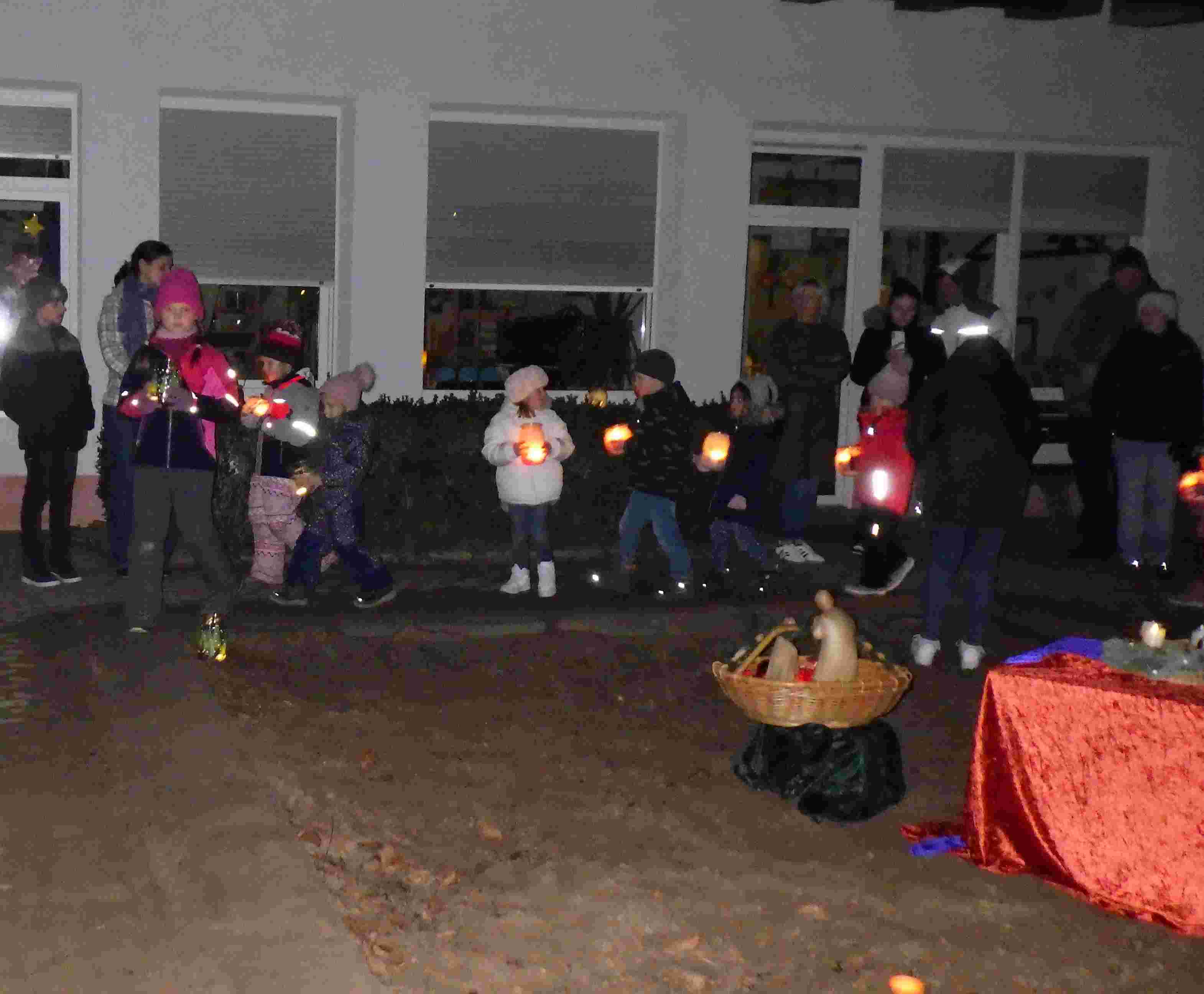 Mit einer Geschichte, Gebeten und adventlichen Liedern wurde die kleine Feier ausgeschmückt. Die Krippenfiguren Josef und Maria bekamen einen Platz in unserer Mitte.