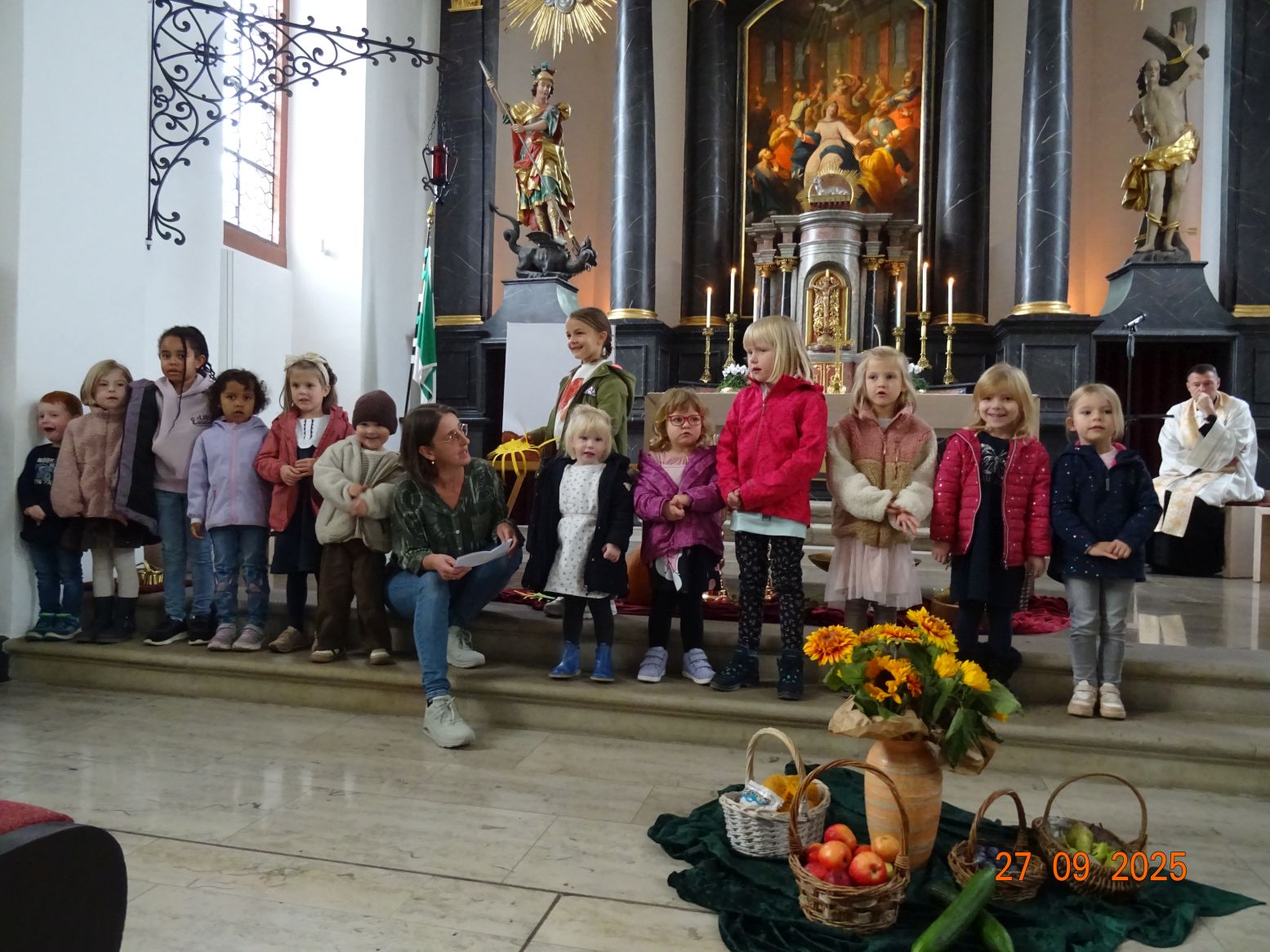 Jede Gruppe hat einen Beitrag z.B. Fingerspiel, Lied und Gedicht vor dem Altar dargeboten. Mit den Fürbitten haben wir auch an die Menschen gedacht, die in Not und Armut leben und daran erinnert, dass auch wir teilen können.