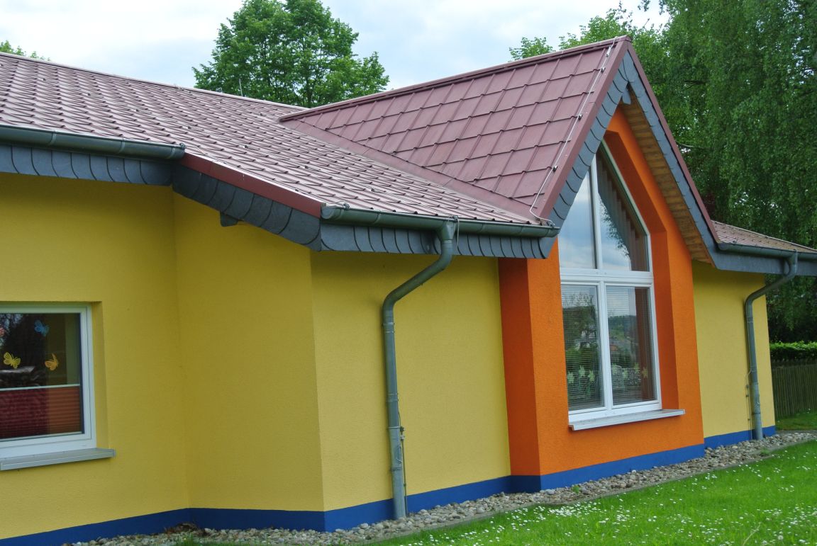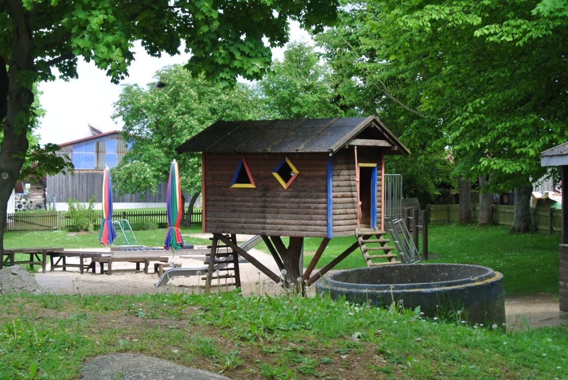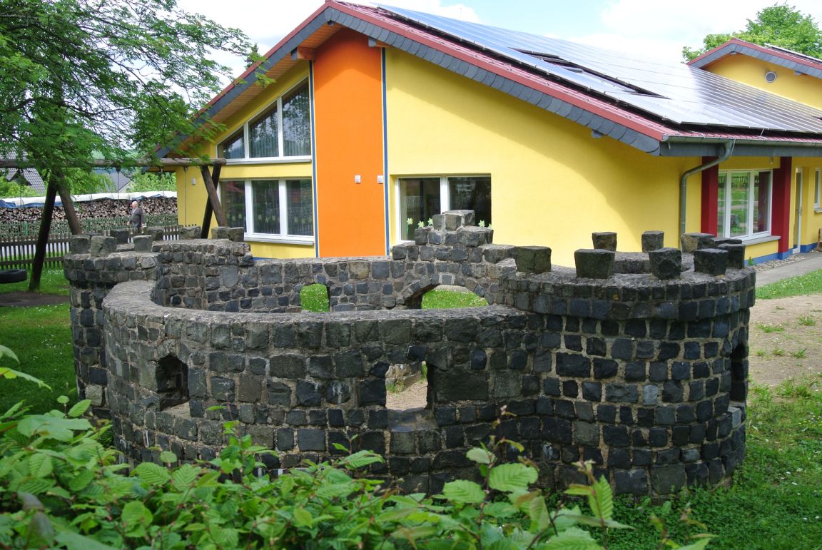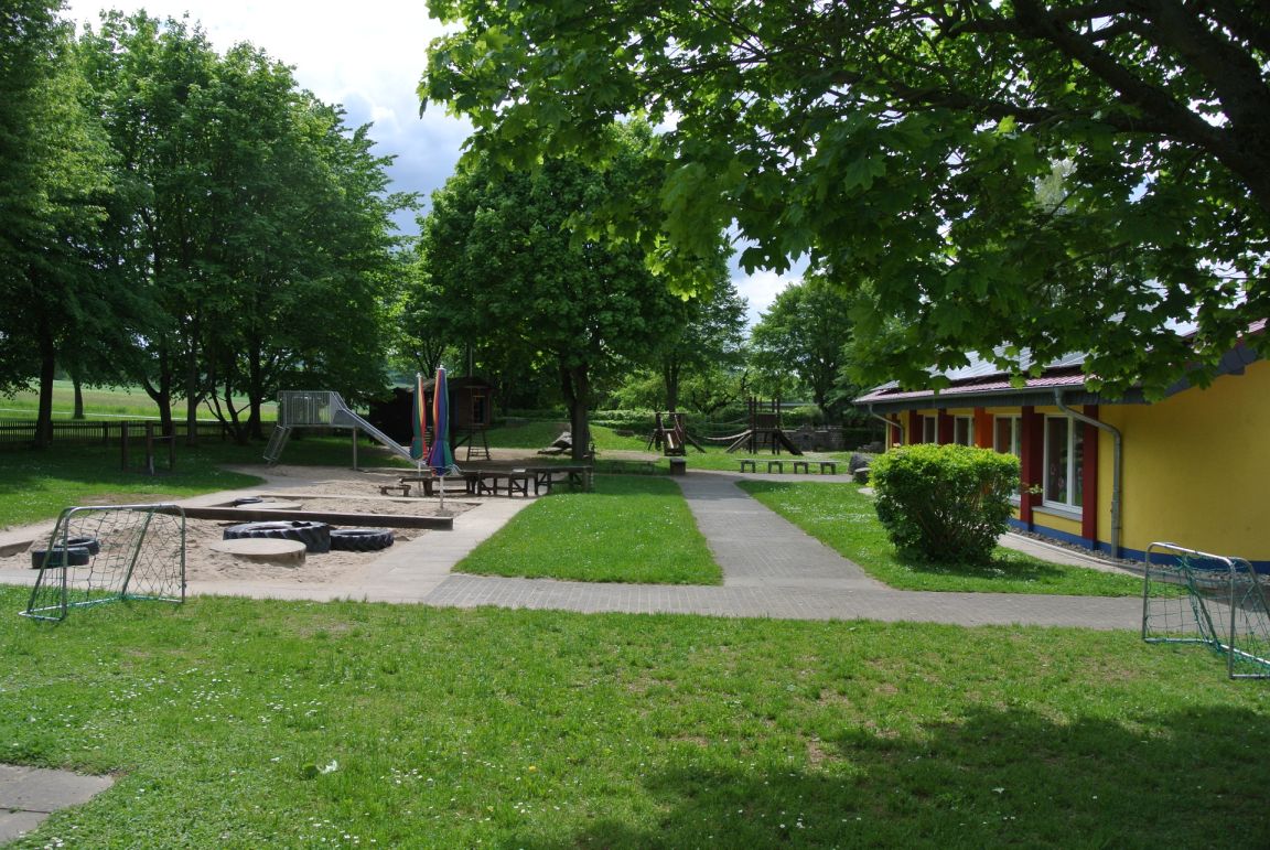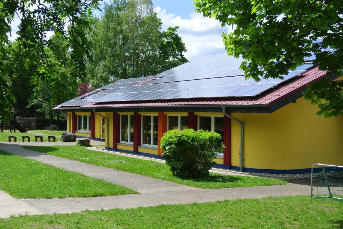 Die Kindertagesstätte, 1977 erbaut, wurde im Jahr 1993 renoviert und auf drei Gruppen erweitert. In 2010 wurde der Kindergarten grundlegend saniert und modernisiert. Drei großzügige, gemütliche und kindgerechte Gruppenräume mit zweiter Spielebene erwarten die Kinder. Außerdem haben die Kinder die Möglichkeit im Turnraum zu turnen, im pädagogischen Nutzungsraum in Kleingruppen zu arbeiten und an der Werkbank im Flur aktiv zu werden. Zahlreiche Spielgeräte im Freien – unter vielen anderen eine Vogelnestschaukel oder eine Matschanlage – bieten Anregung und Förderung für die Kinder, um deren Fähigkeiten kreativ zu entfalten.