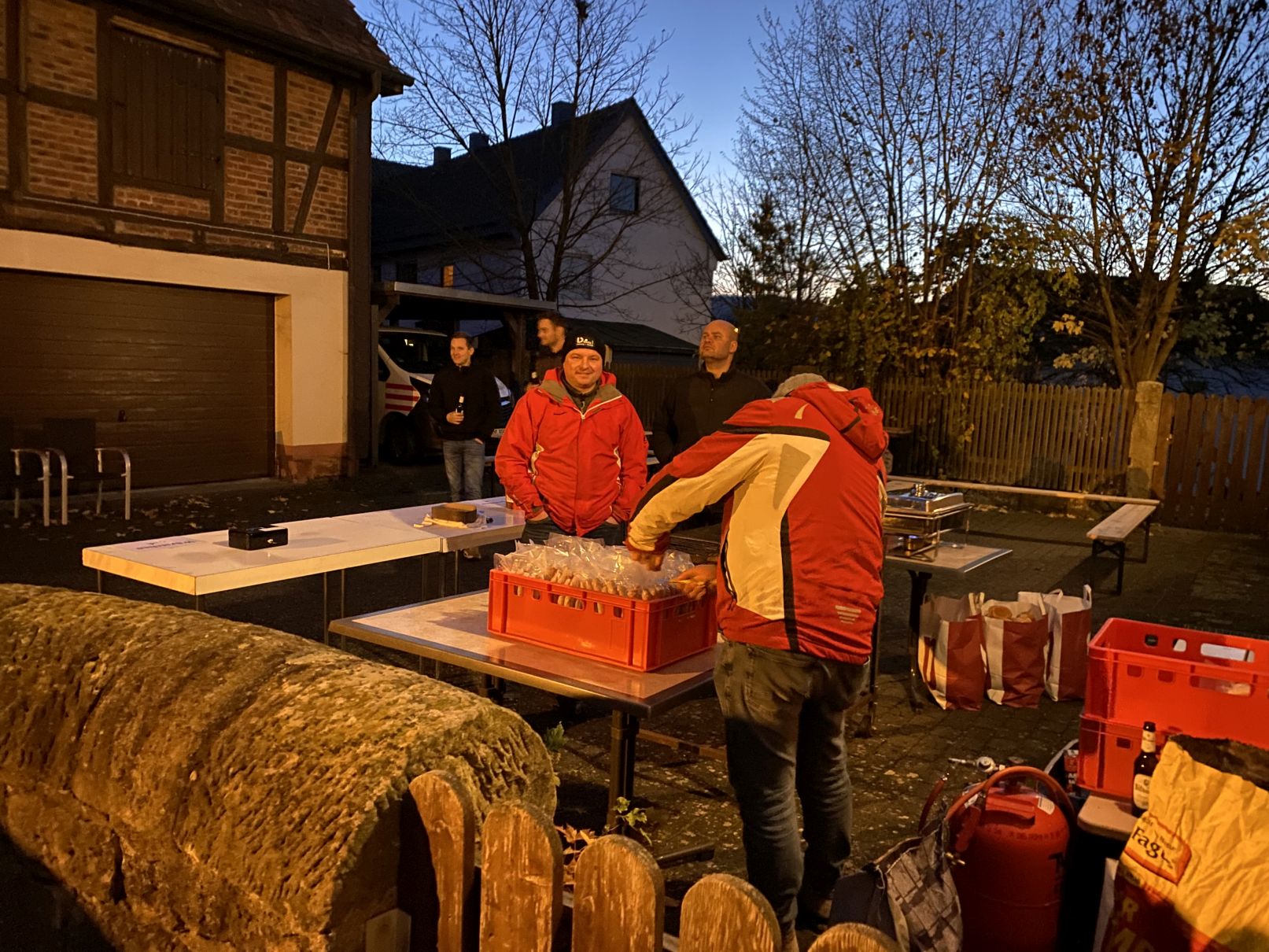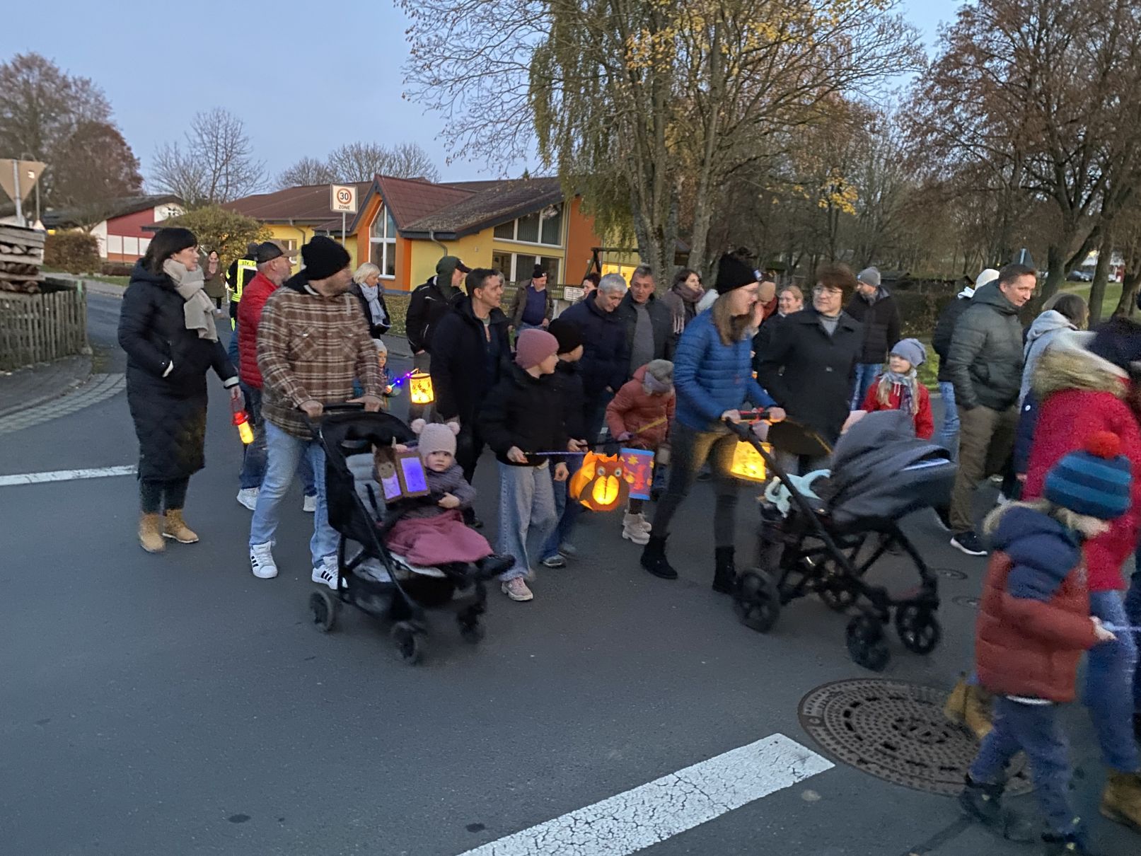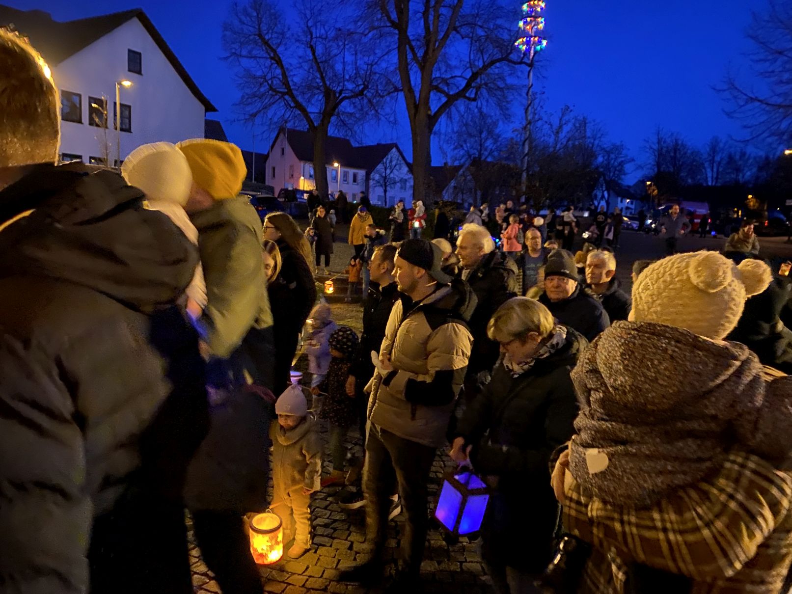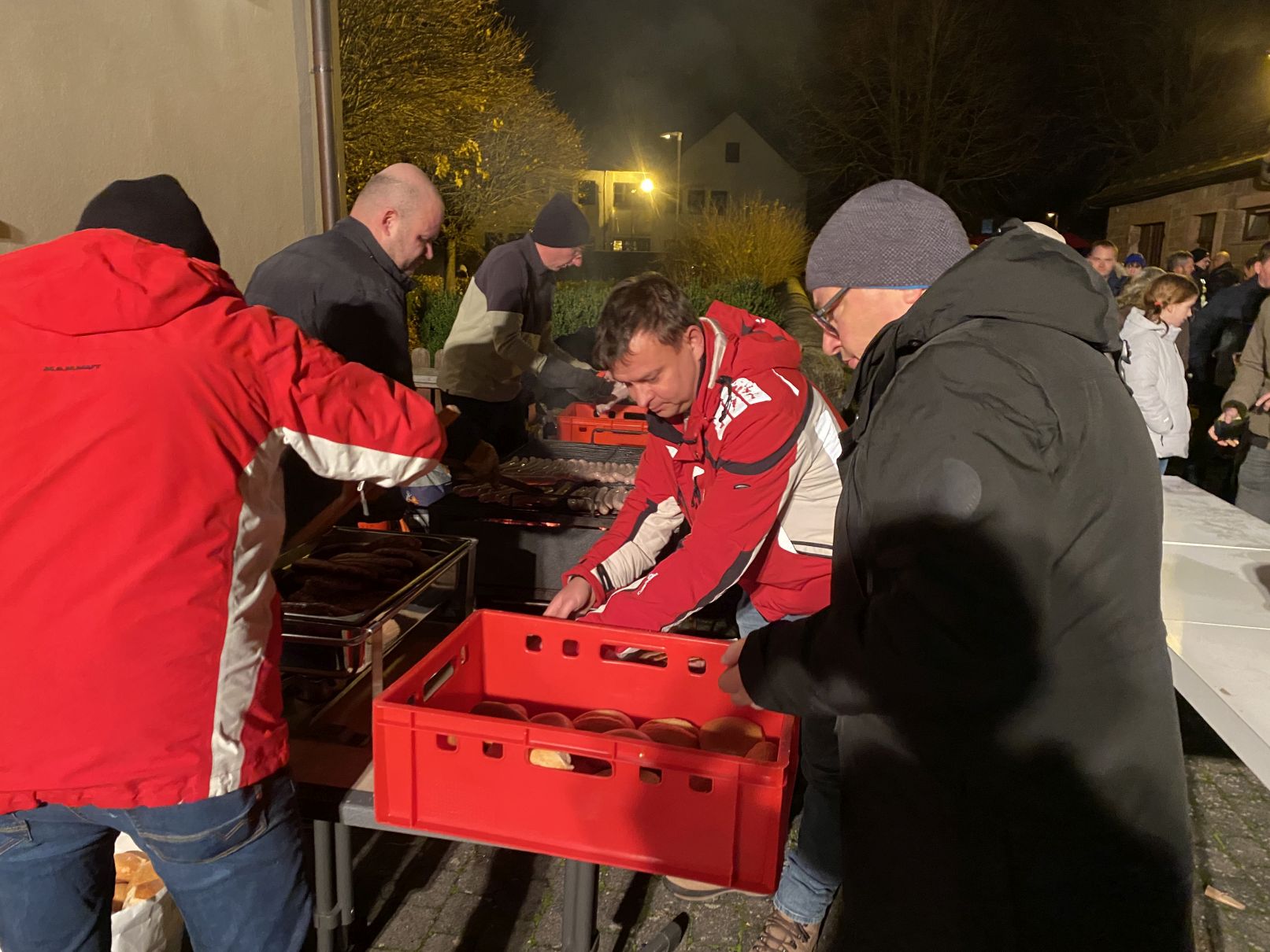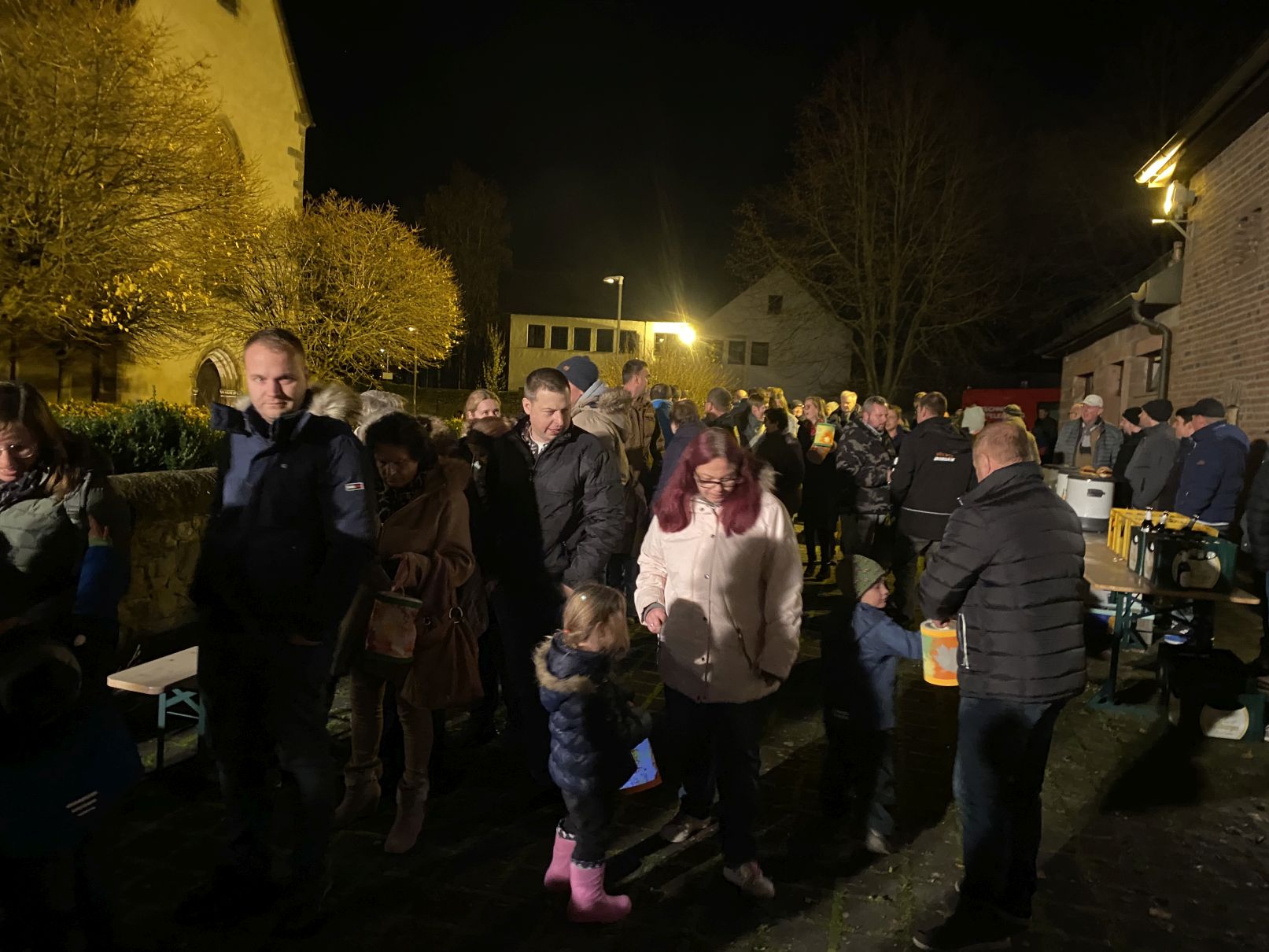 Zum Abschluss lud die Kita zu einem gemütlichen Beisammensein am Pfarrhaus ein. Bei warmen und kalten Getränken und Bratwurst klang der Abend in geselliger Runde aus.