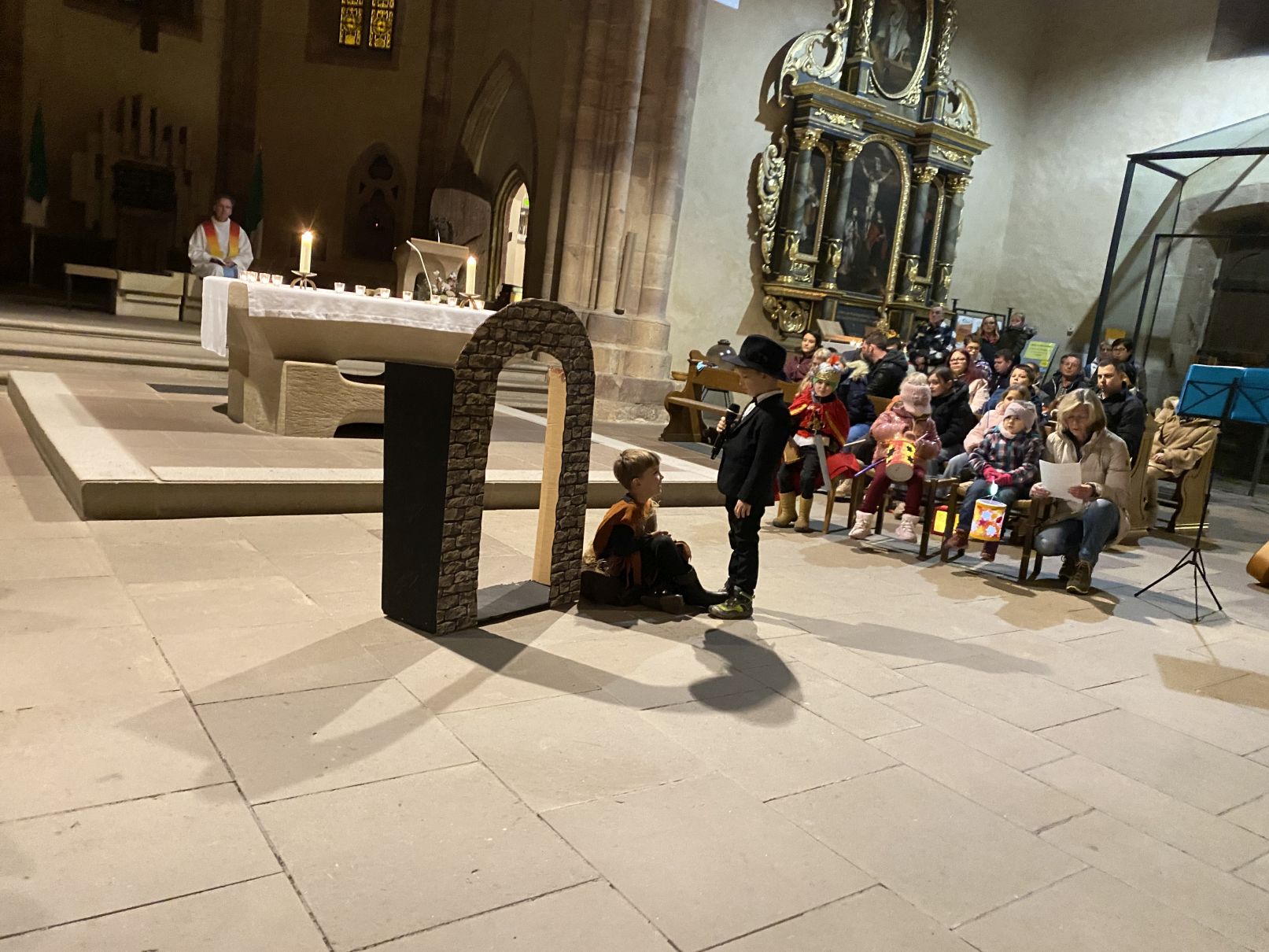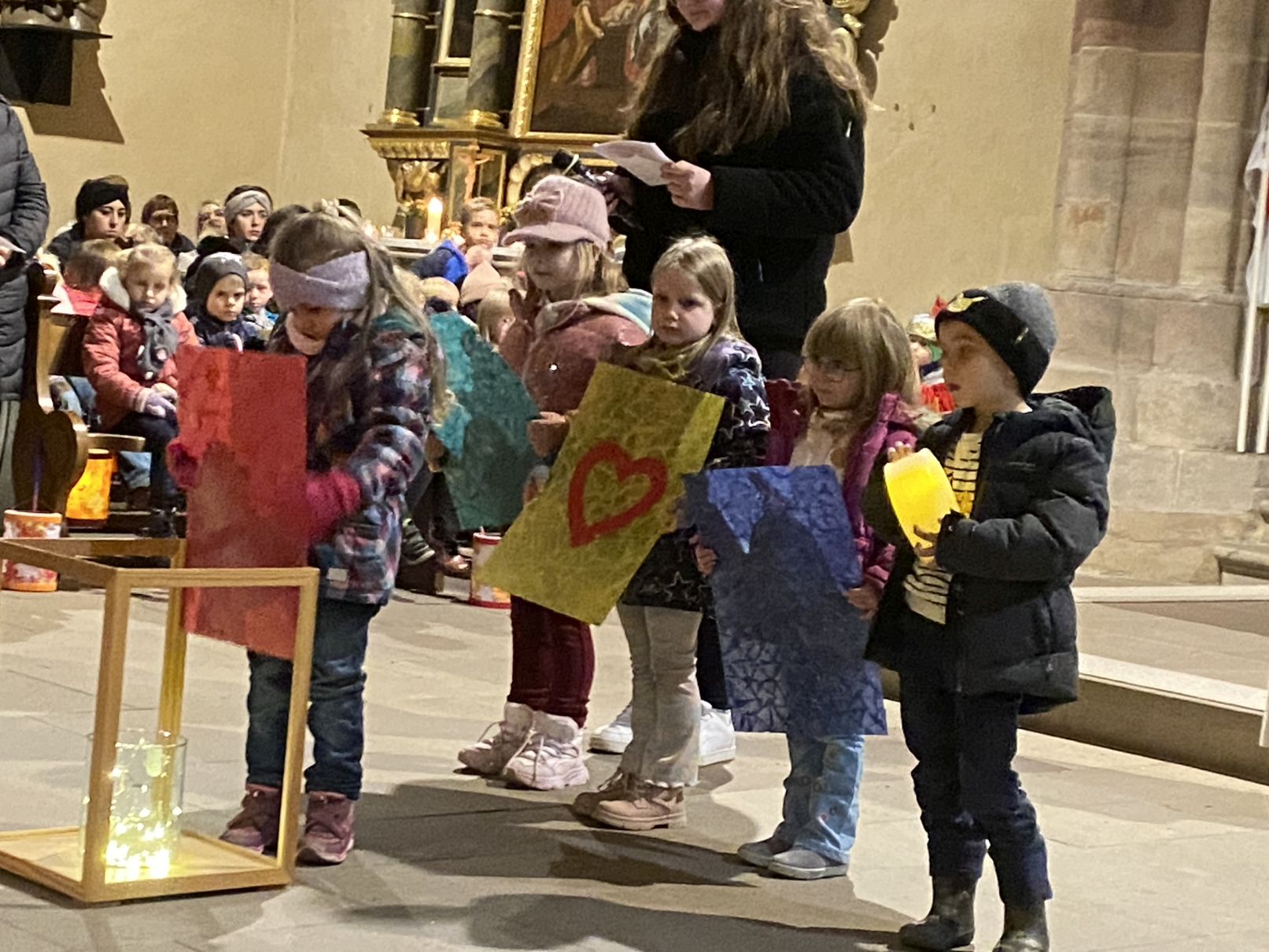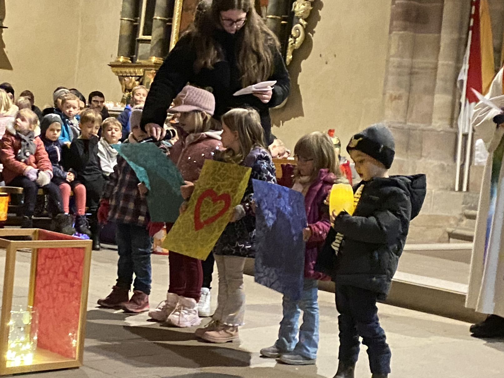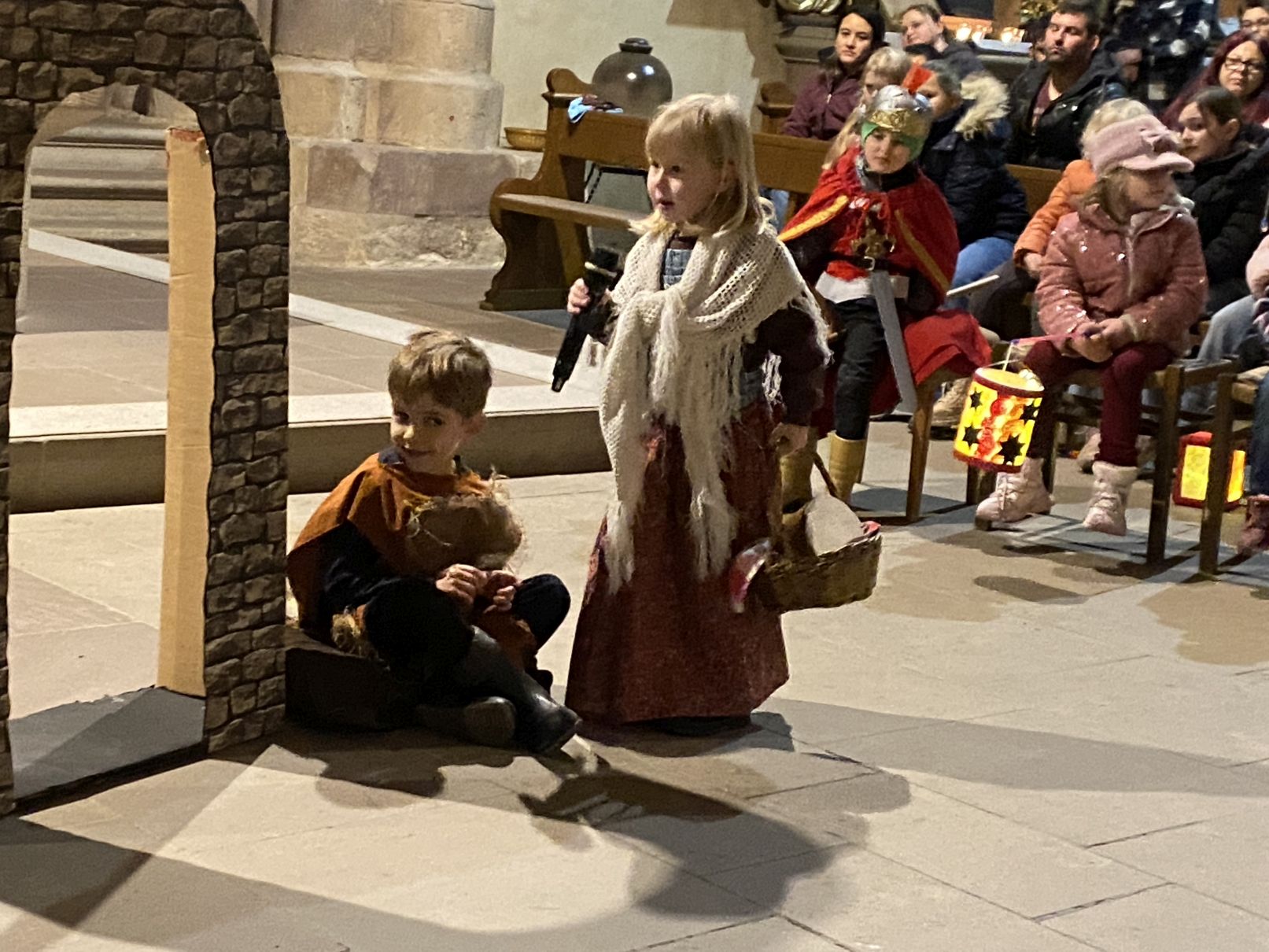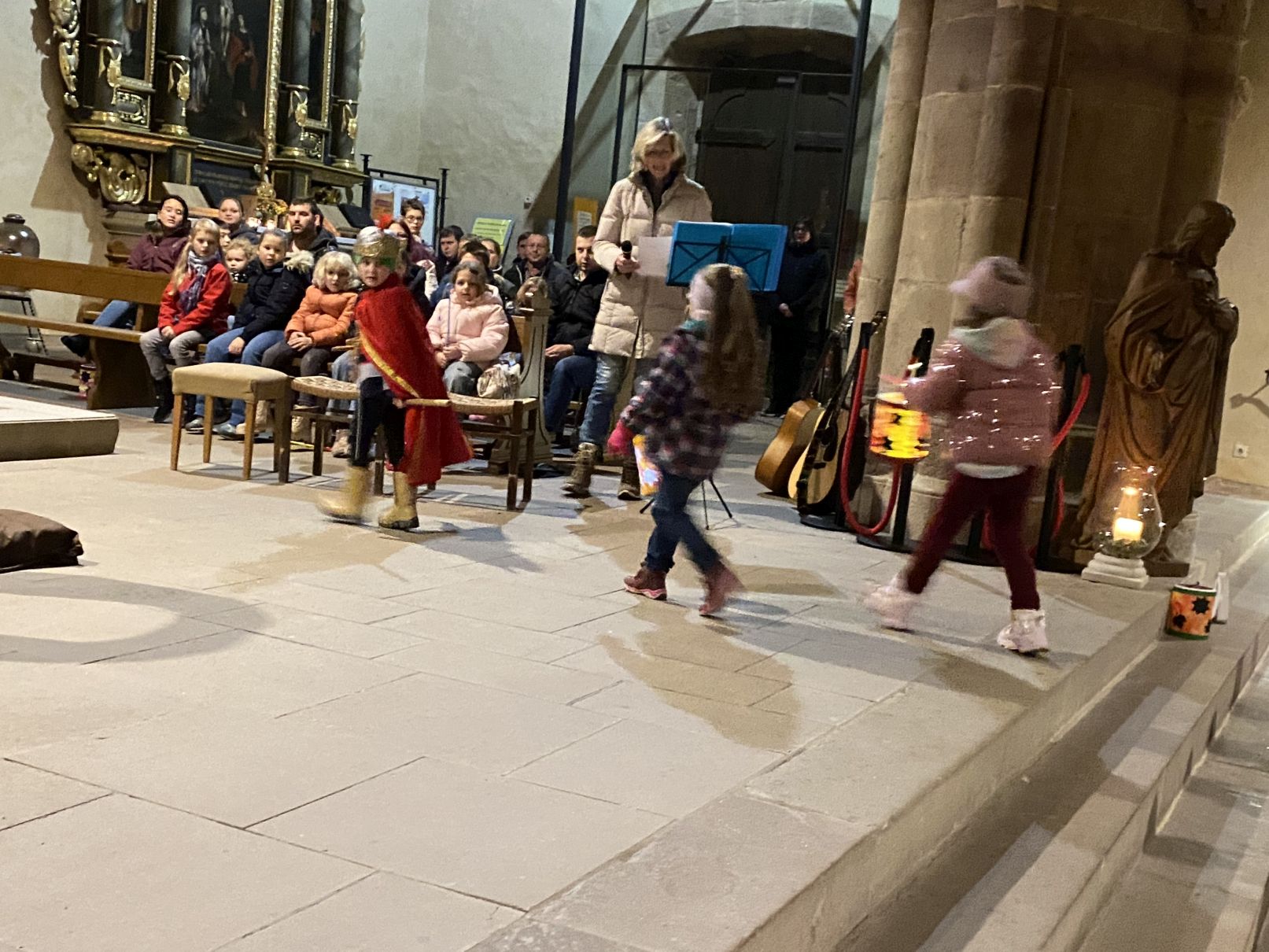 Im Anschluss an den Laternenumzug fand ein Wortgottesdienst mit Pfarrer Matthäi statt, bei dem die Kinder die Geschichte des heiligen Martin in beeindruckender Weise nacherzählten. Mit großem Engagement hatten die Erzieherinnen und Erzieher der Kita gemeinsam mit den Kindern die Martinsgeschichte, einen Lichtertanz sowie die Fürbitten eingeübt, wofür ein herzliches Dankeschön gilt!