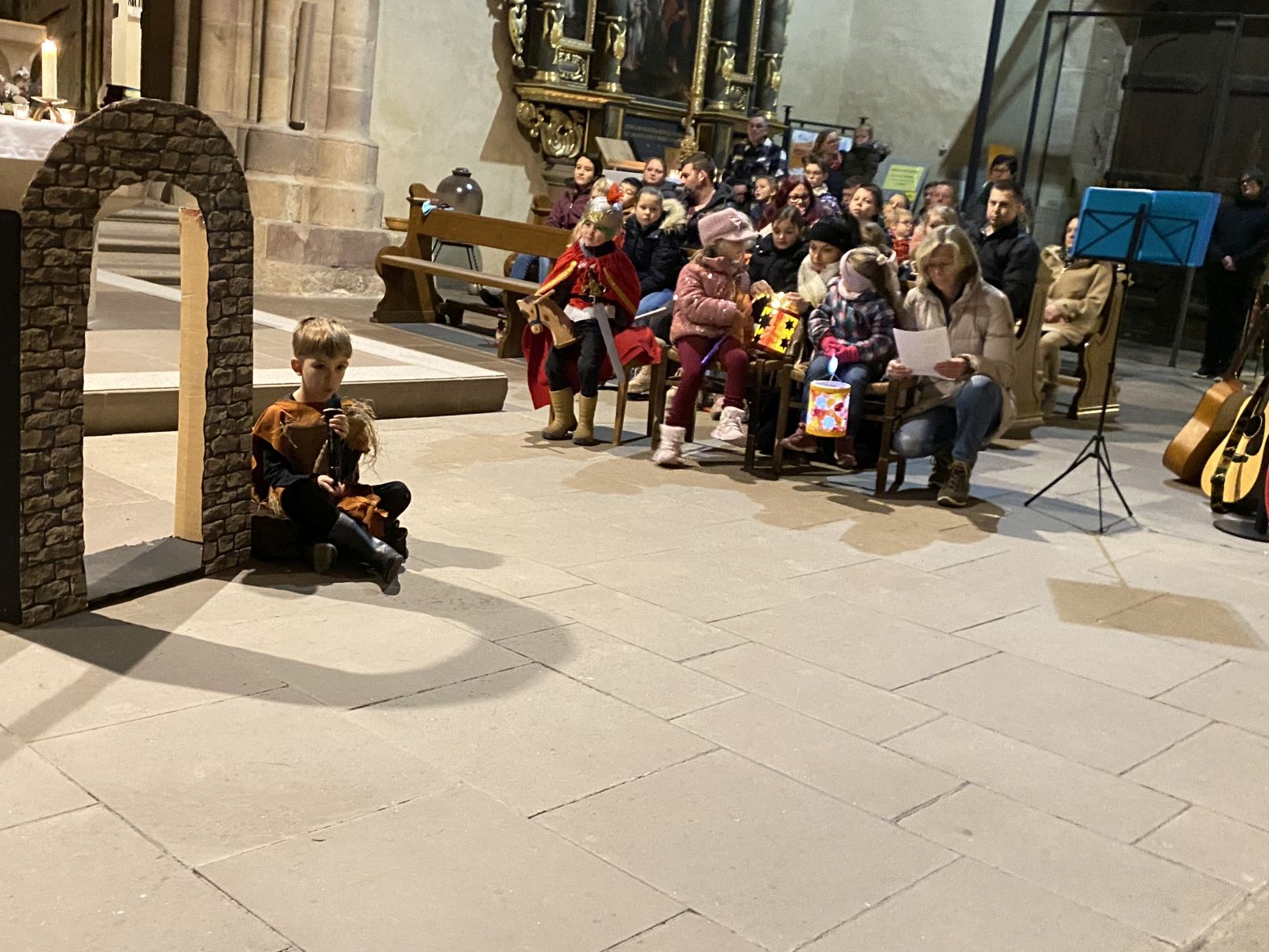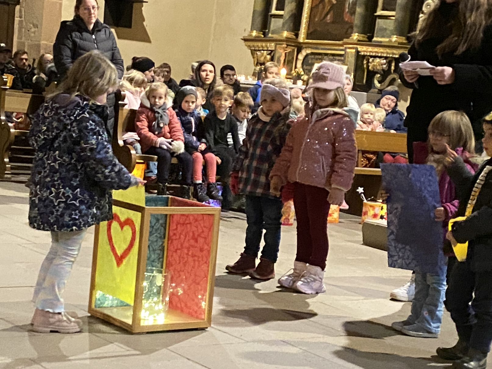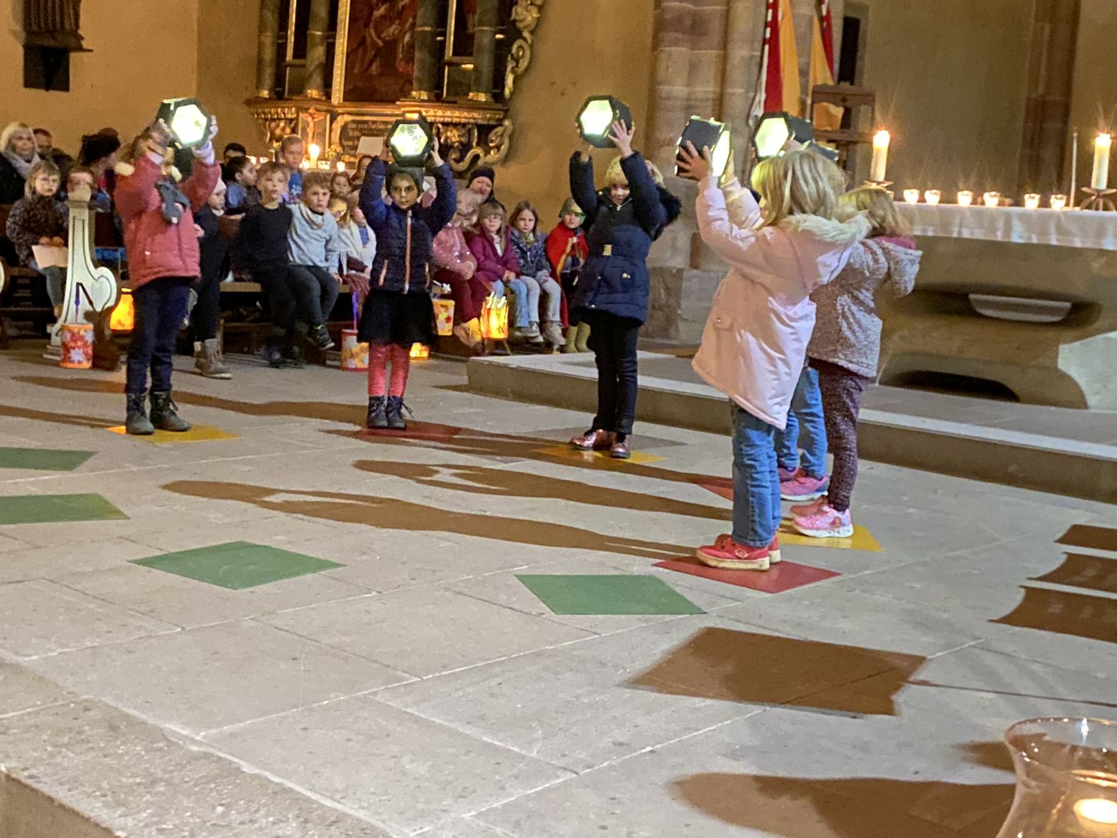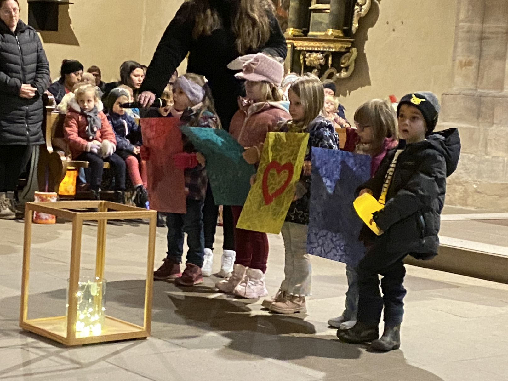 Im Anschluss an den Laternenumzug fand ein Wortgottesdienst mit Pfarrer Matthäi statt, bei dem die Kinder die Geschichte des heiligen Martin in beeindruckender Weise nacherzählten. Mit großem Engagement hatten die Erzieherinnen und Erzieher der Kita gemeinsam mit den Kindern die Martinsgeschichte, einen Lichtertanz sowie die Fürbitten eingeübt, wofür ein herzliches Dankeschön gilt!