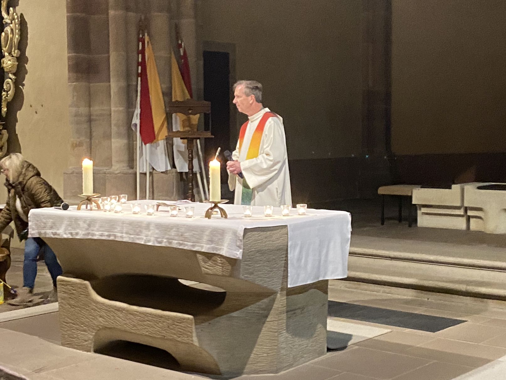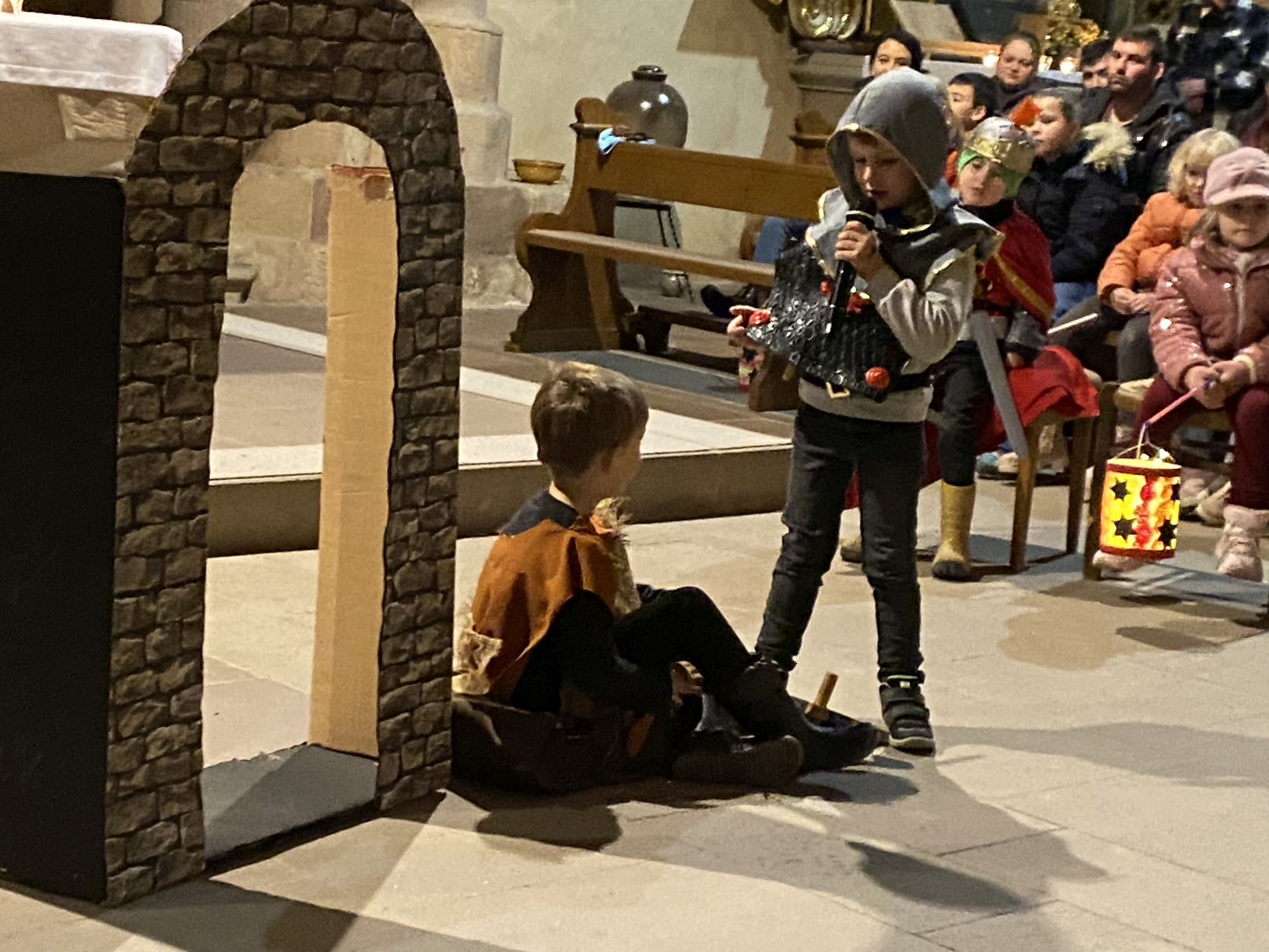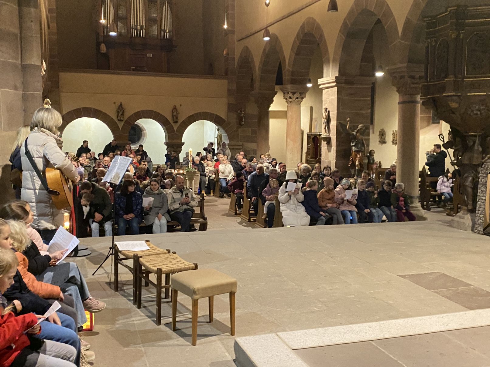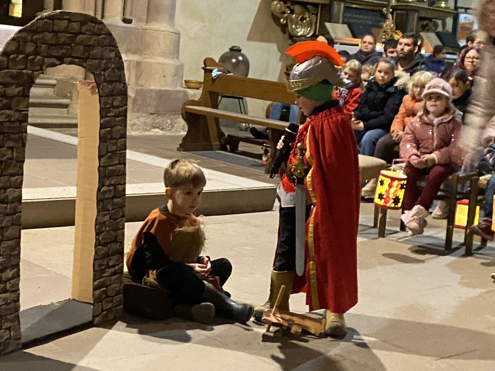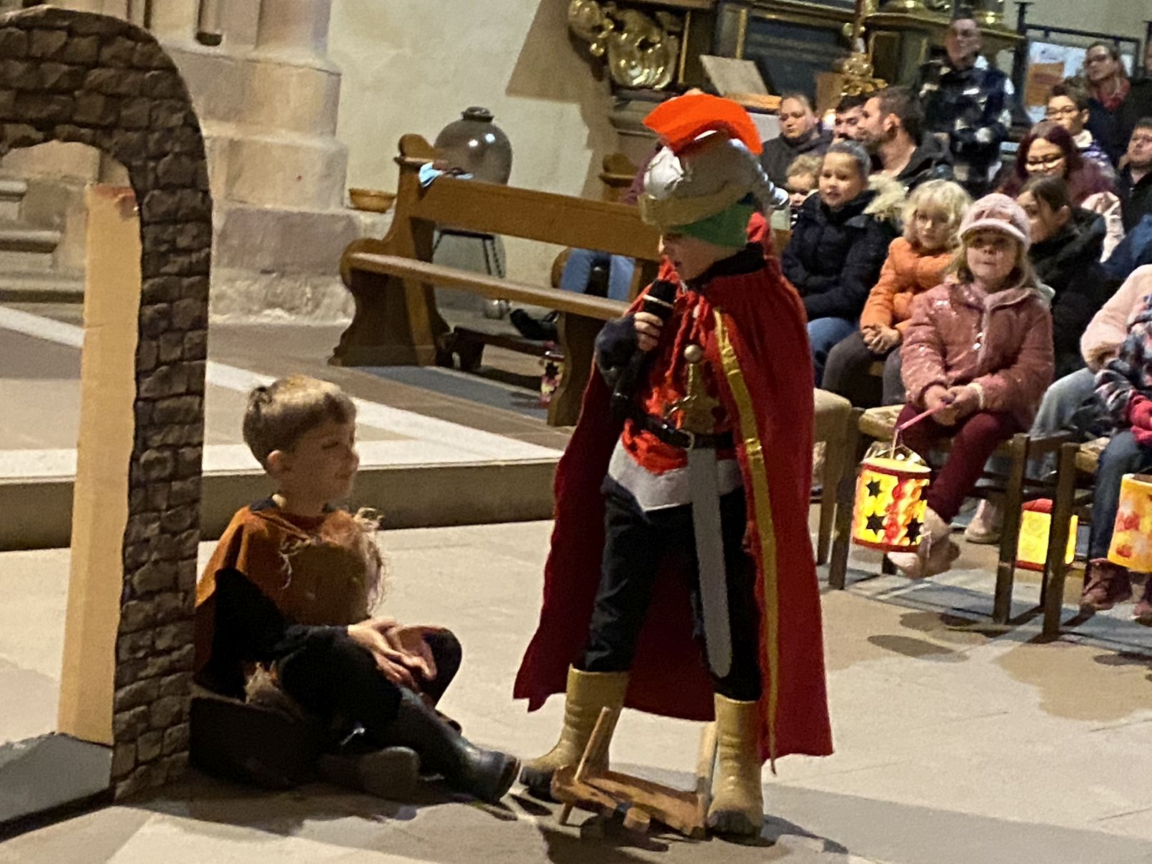 Im Anschluss an den Laternenumzug fand ein Wortgottesdienst mit Pfarrer Matthäi statt, bei dem die Kinder die Geschichte des heiligen Martin in beeindruckender Weise nacherzählten. Mit großem Engagement hatten die Erzieherinnen und Erzieher der Kita gemeinsam mit den Kindern die Martinsgeschichte, einen Lichtertanz sowie die Fürbitten eingeübt, wofür ein herzliches Dankeschön gilt!