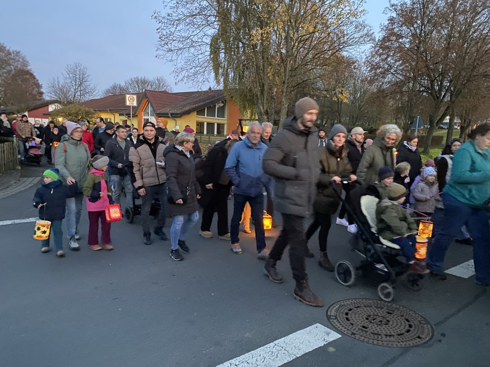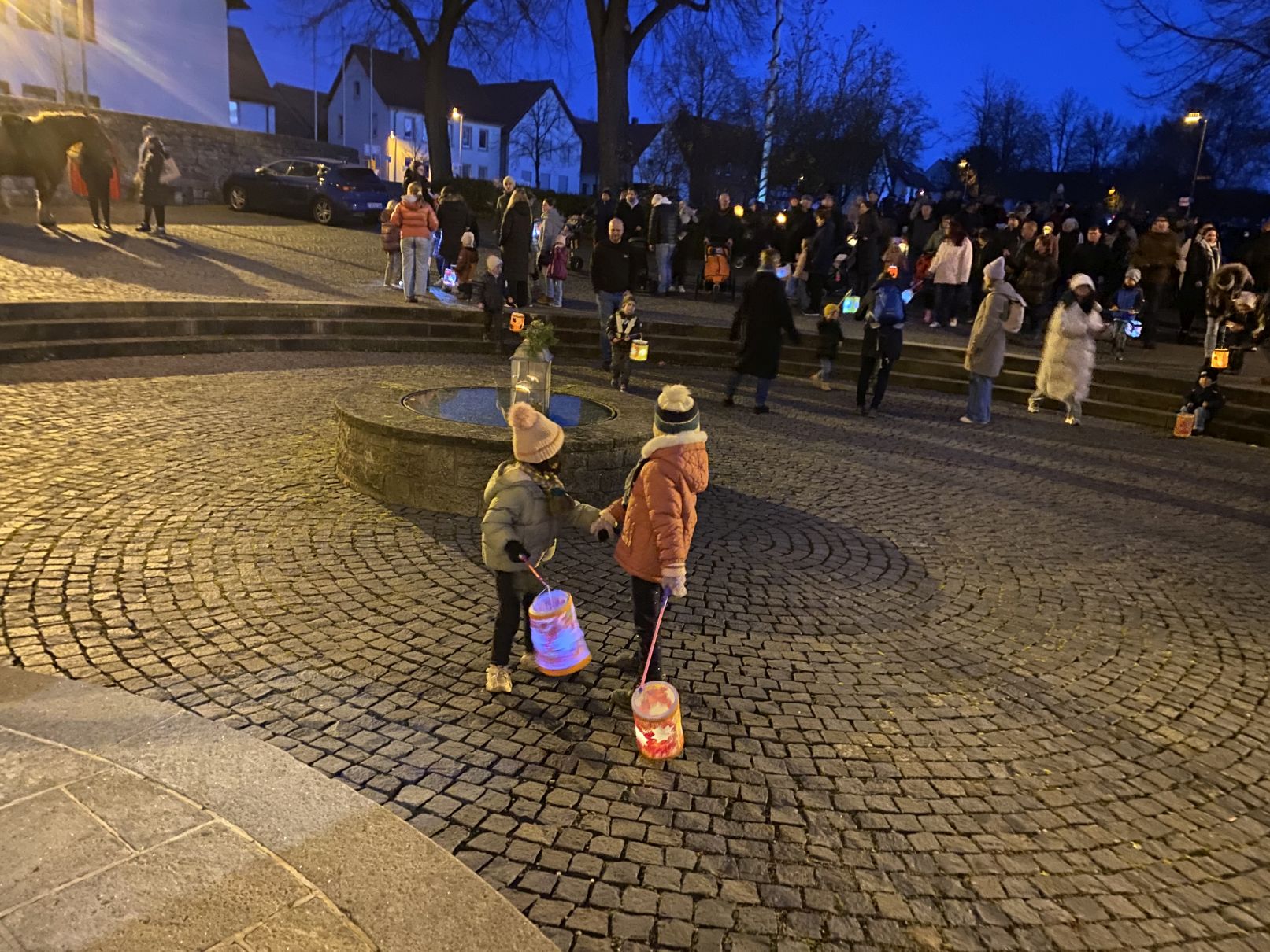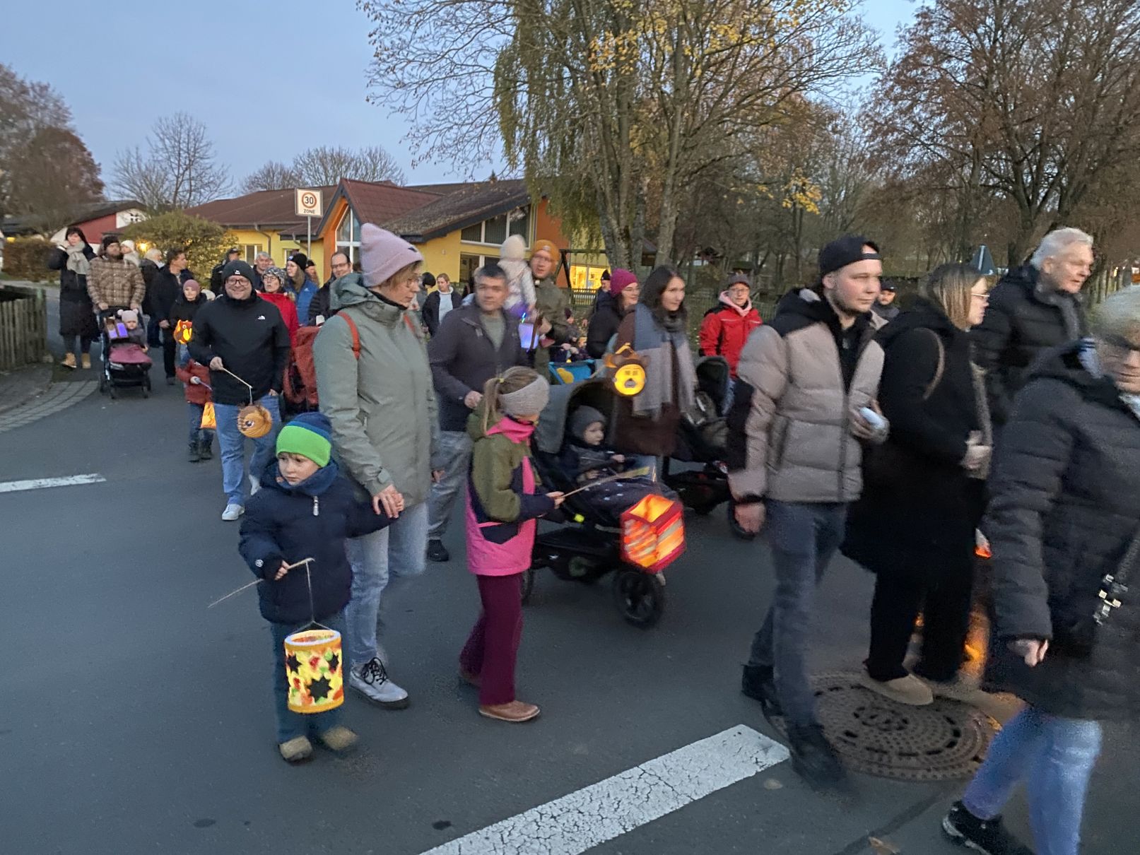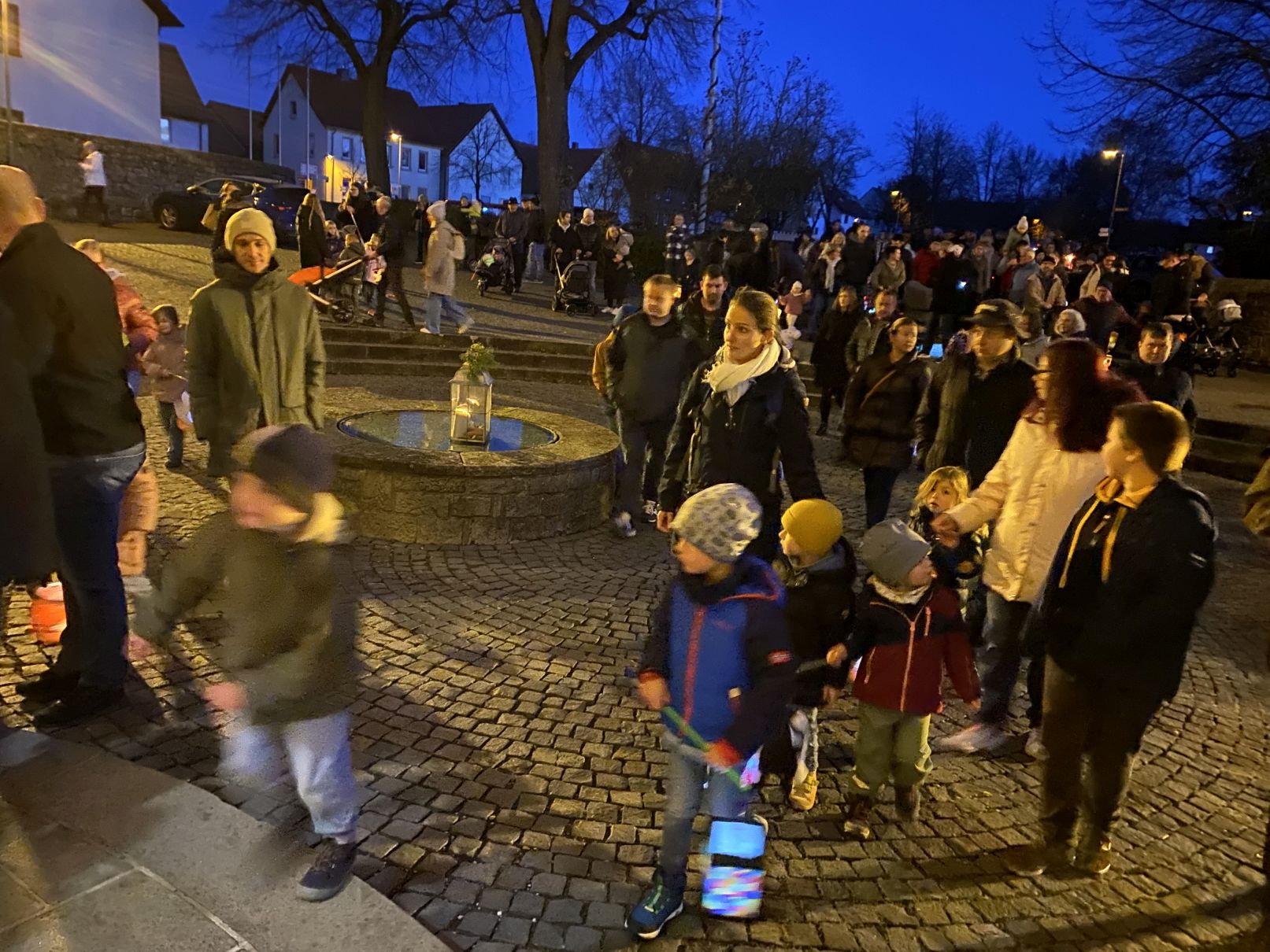 Stimmungsvolles Lichtermeer beim St. Martinsumzug der Kita St. Johannes der Täufer