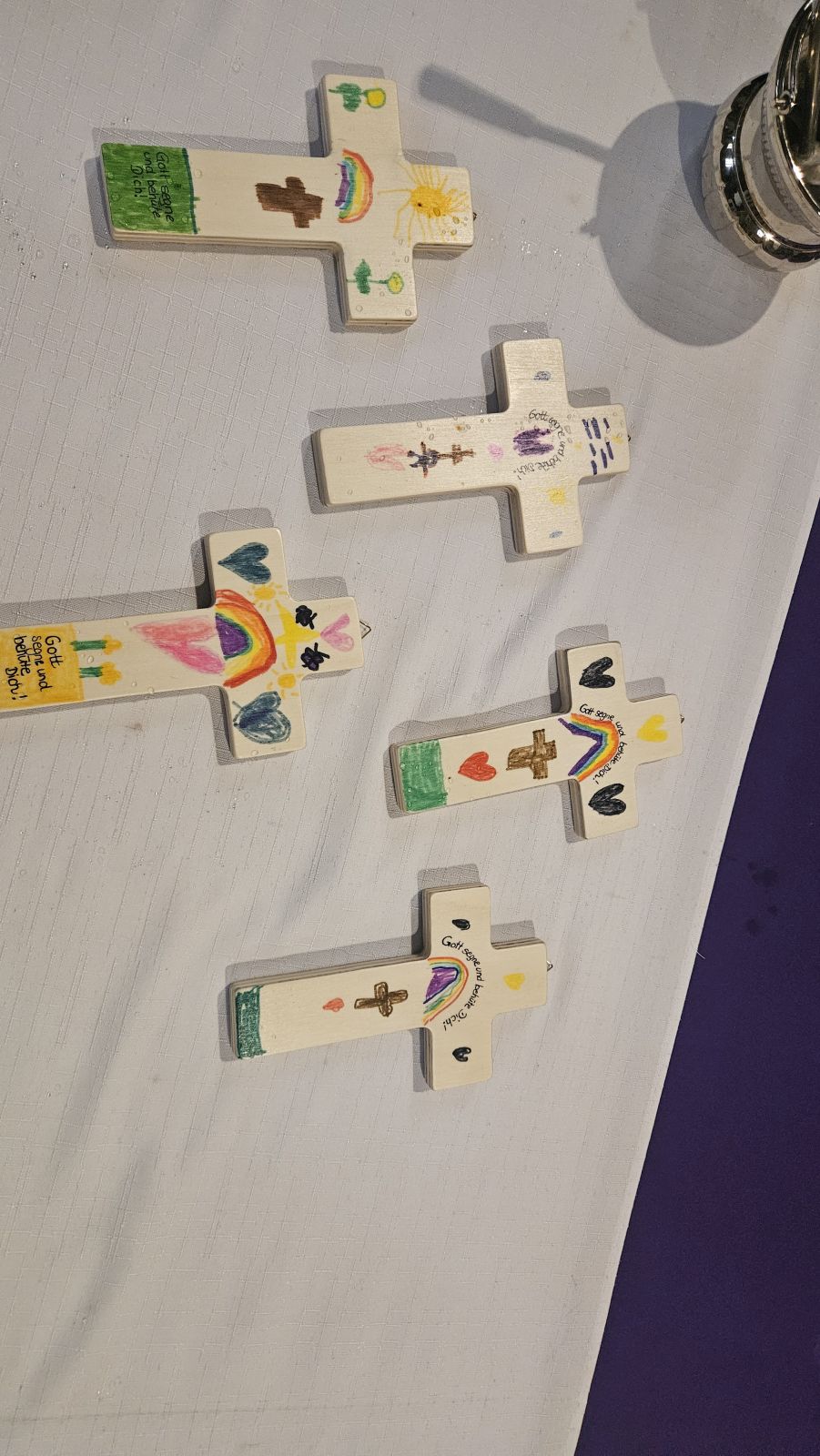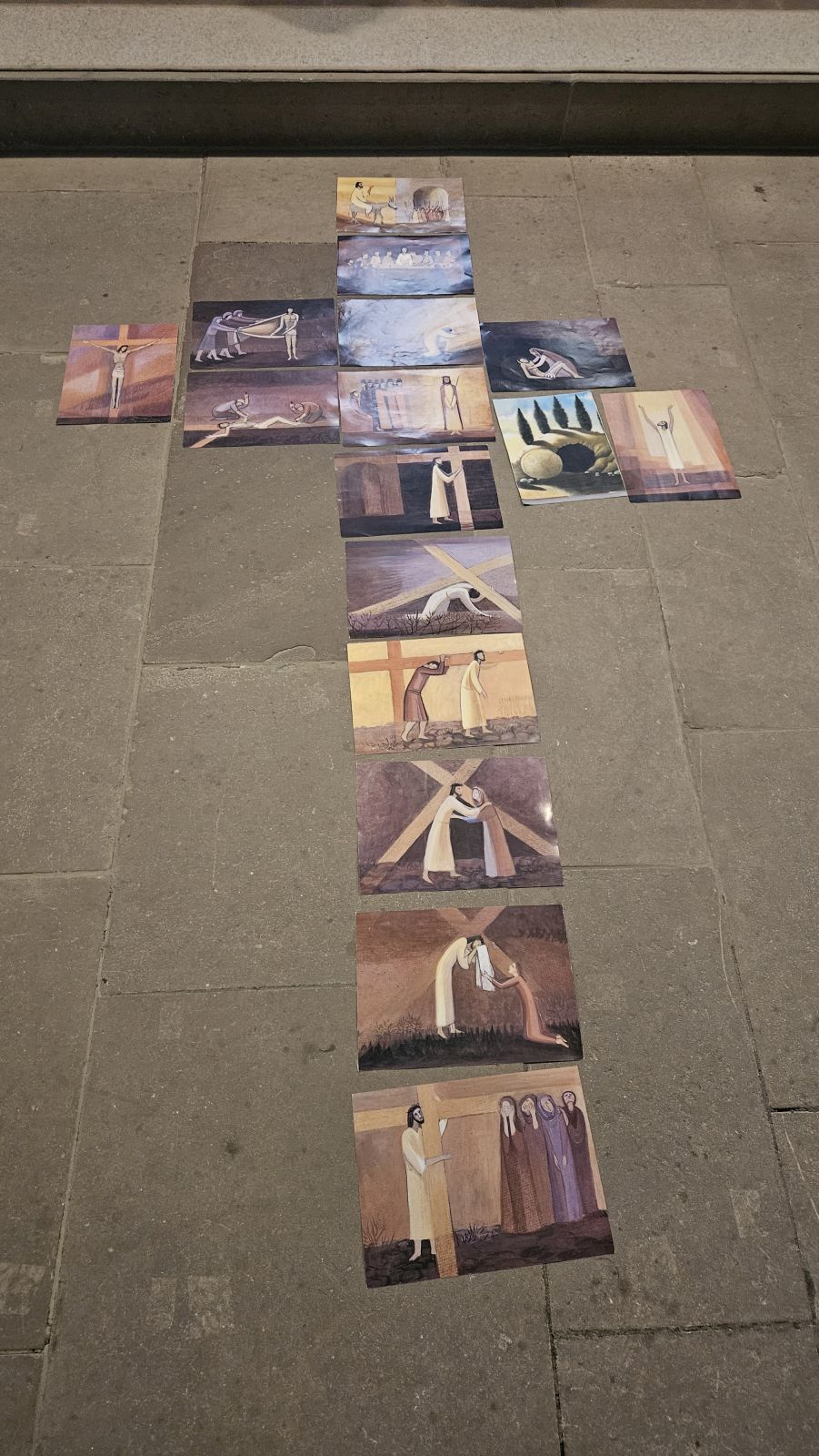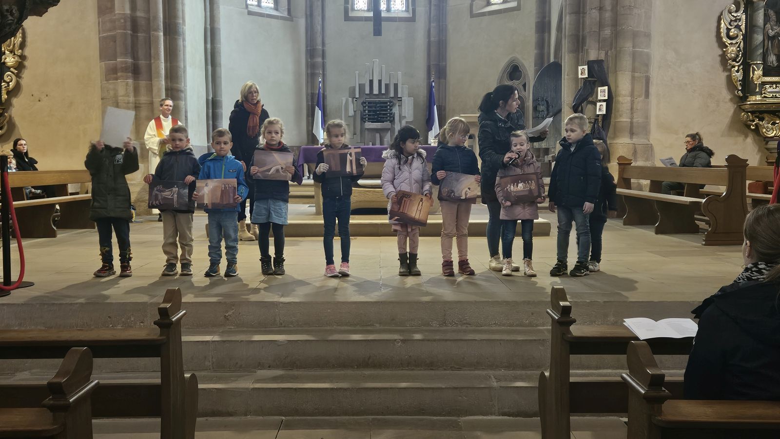 Die Kinder haben mehrere kurze Texte auswendig gelernt und den Kreuzweg mit Hilfe von Bildern anschaulich dargestellt. Pfarrer Matthäi begleitete den Gottesdienst gemeinsam mit den Vorschulkindern und trug zur feierlichen Gestaltung bei.