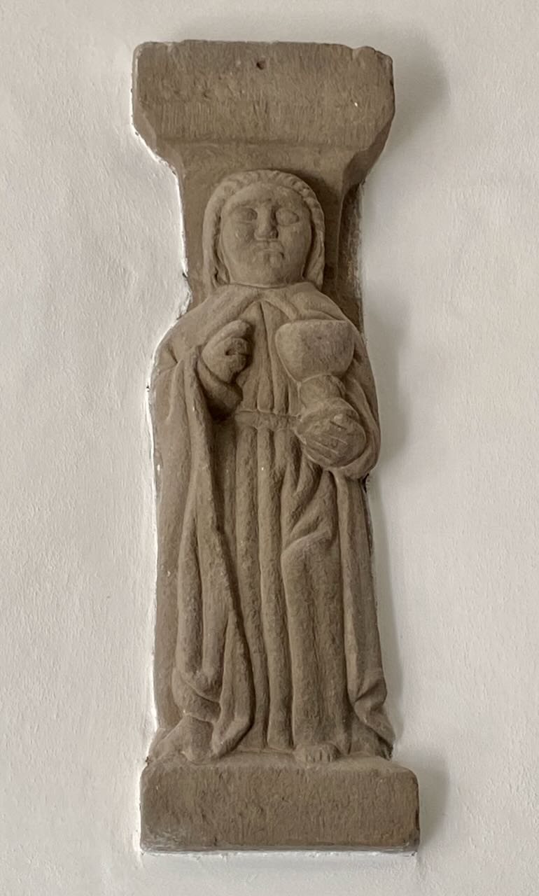 Sicherlich stammen die zwei romanischen Steinplastiken, die am Eingang unterhalb der Decke eingebaut sind, aus dieser alten Kirche. Petrus trägt einen Schlüssel und Johannes einen Kelch. Auch der spätgothische Taufstein aus dem Jahre 1515 stammt aus der alten Kirche. Der in der Kirche befindliche Altar wurde in die neu erbaute Kapelle in Ketten gegeben.