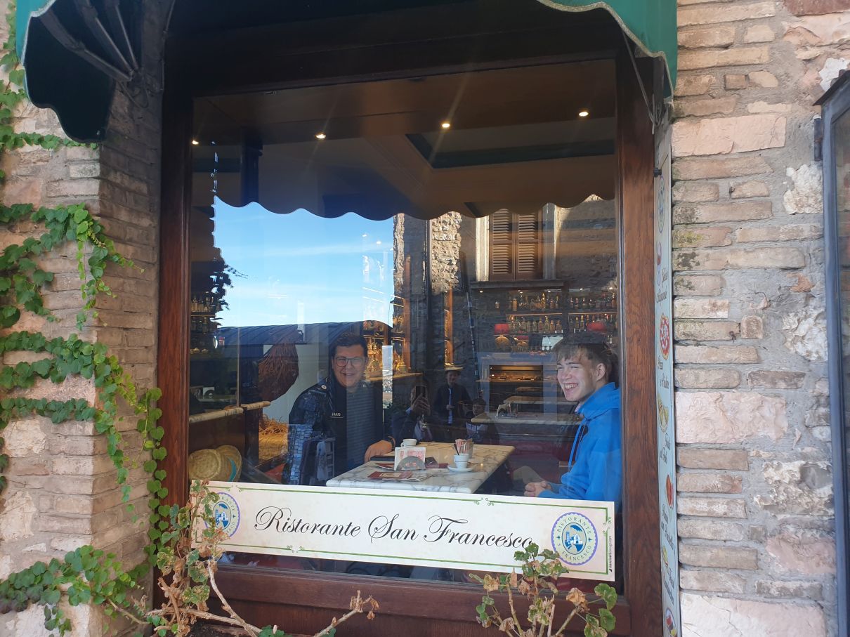 Den Donnerstagmorgen beginnen wir mit einem Gottesdienst in der Kapelle des Franziskanerklosters Sacro Convento, das auf den Hängen des Monte Subasio steht und in dem die Gebeine des heiligen Ordensgründers ruhen.