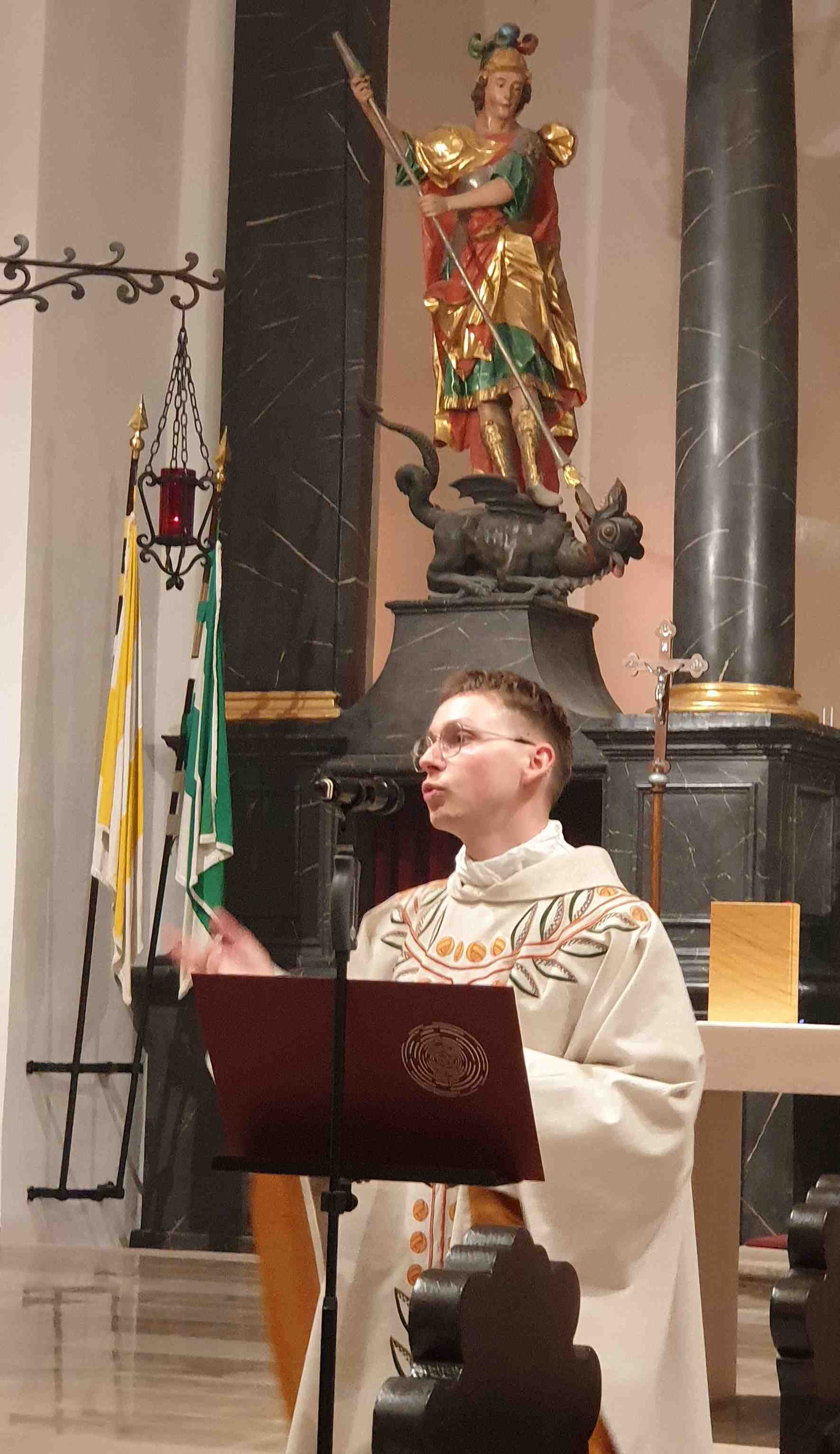 Immer wieder einmal formulierten Menschen ihm gegenüber, dass sie zwar an Gott glaubten, die Kirche aber dazu nicht bräuchten, erzählte Kaplan Marcel Krawietz in seiner Predigt. Vom Weihetag der Lateranbasilika ausgehend, beschrieb er die Kirche jedoch als Mutter – im Sinne einer schützenden, tröstenden, nährenden, ermutigenden Instanz für Geschwister auf der ganzen Welt Glauben durch die Sakramente leben lässt. Und die Kirche sei gleichzeitig Haupt – oder anders gesagt – Profi, wenn es um das seit über 2000 Jahre vielfach kritisch durchdachte Wissen geht, das den Glaubenden vor Irrtümern bewahrt.