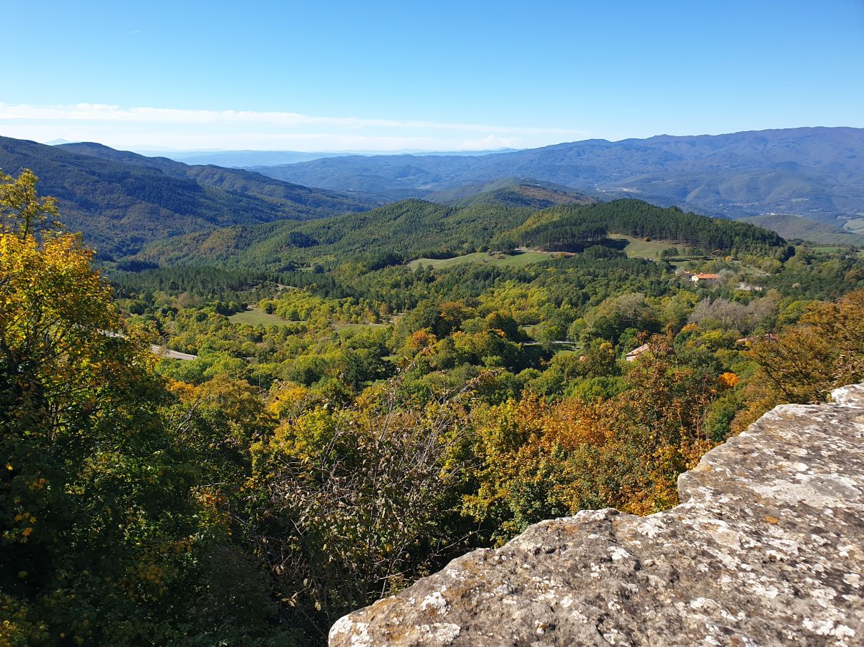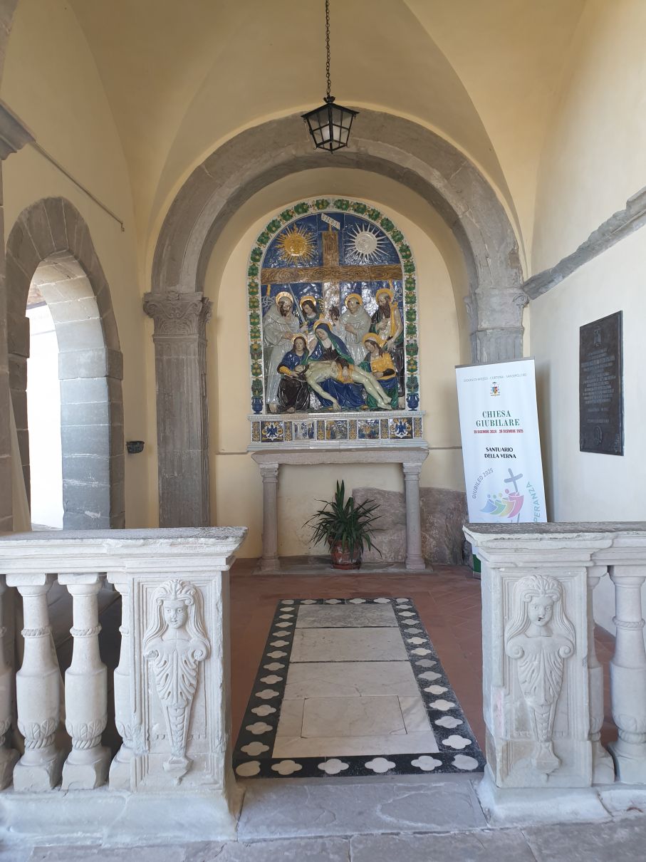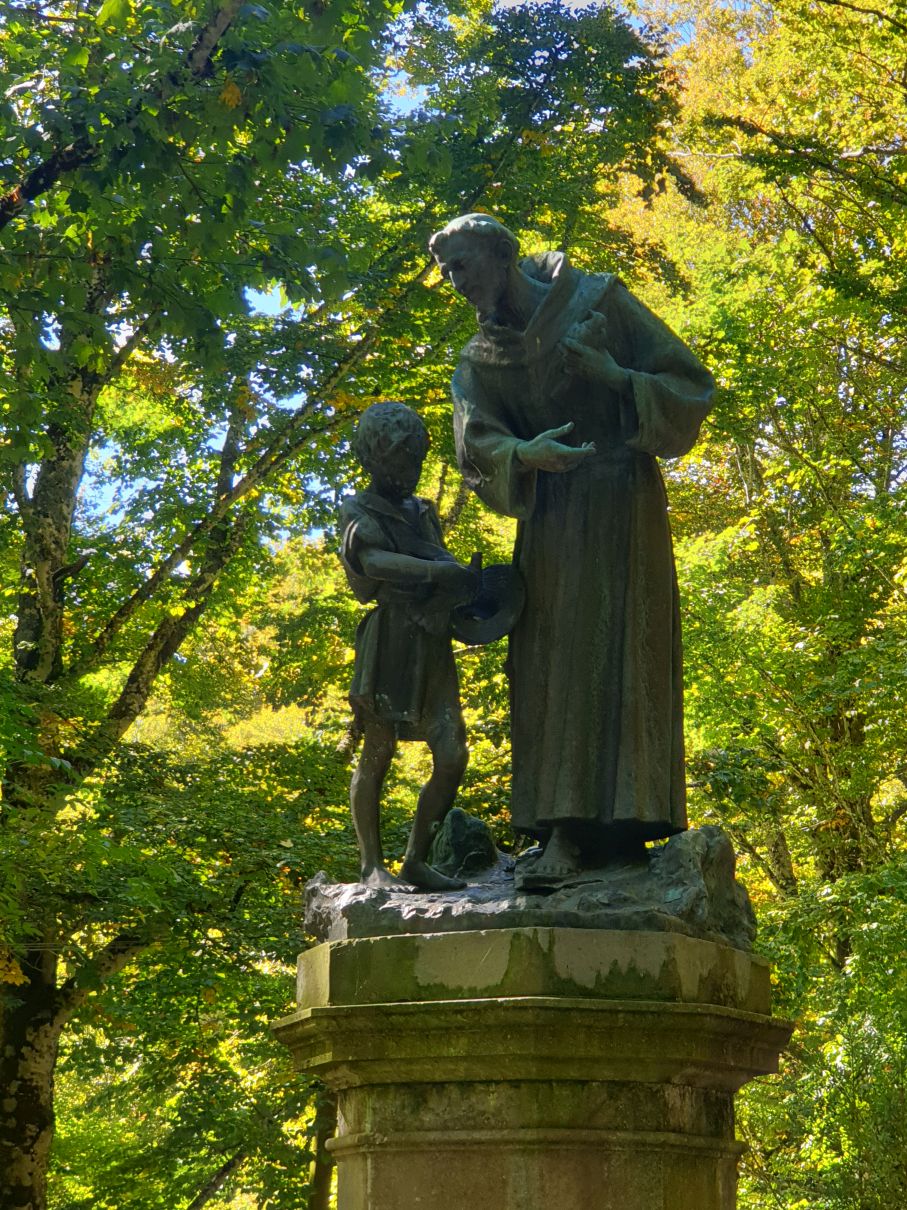 Heute ist unser erster Rückreisetag. Am Morgen frühstücken wir noch einmal in unserem Hotel in Santa Maria degli Angeli, Assisi. Die Koffer sind gepackt und im Bus verstaut. Weil unsere Organisatorinnen den ersten Fahrtabschnitt zeitlich komfortabel geplant haben, können wir - bevor wir endgültig Richtung Heimat aufbrechen - erst noch die Klosteranlage La Verna auf gut 1100 m Höhe in den toskanischen Bergen besichtigen. Dorthin hatte sich der heilige Franziskus zu seinen Lebzeiten mehrfach zurückgezogen, um im Schutz von Felsvorsprüngen und bald auch in schlichten Kapellen zu beten. Und hier soll er spät in seinem Leben auch die Stigmata, die Wundmale Christi, empfangen haben. Es ist interessant, inmitten der herrlichen Berglandschaft, die sich uns wieder mit strahlend blauem Himmel präsentiert, die Glaubensorte des Heiligen zu entdecken. Sie vermitteln uns einen Eindruck von seiner Armutsidee, seiner tiefen Frömmigkeit und seiner Naturverbundenheit.