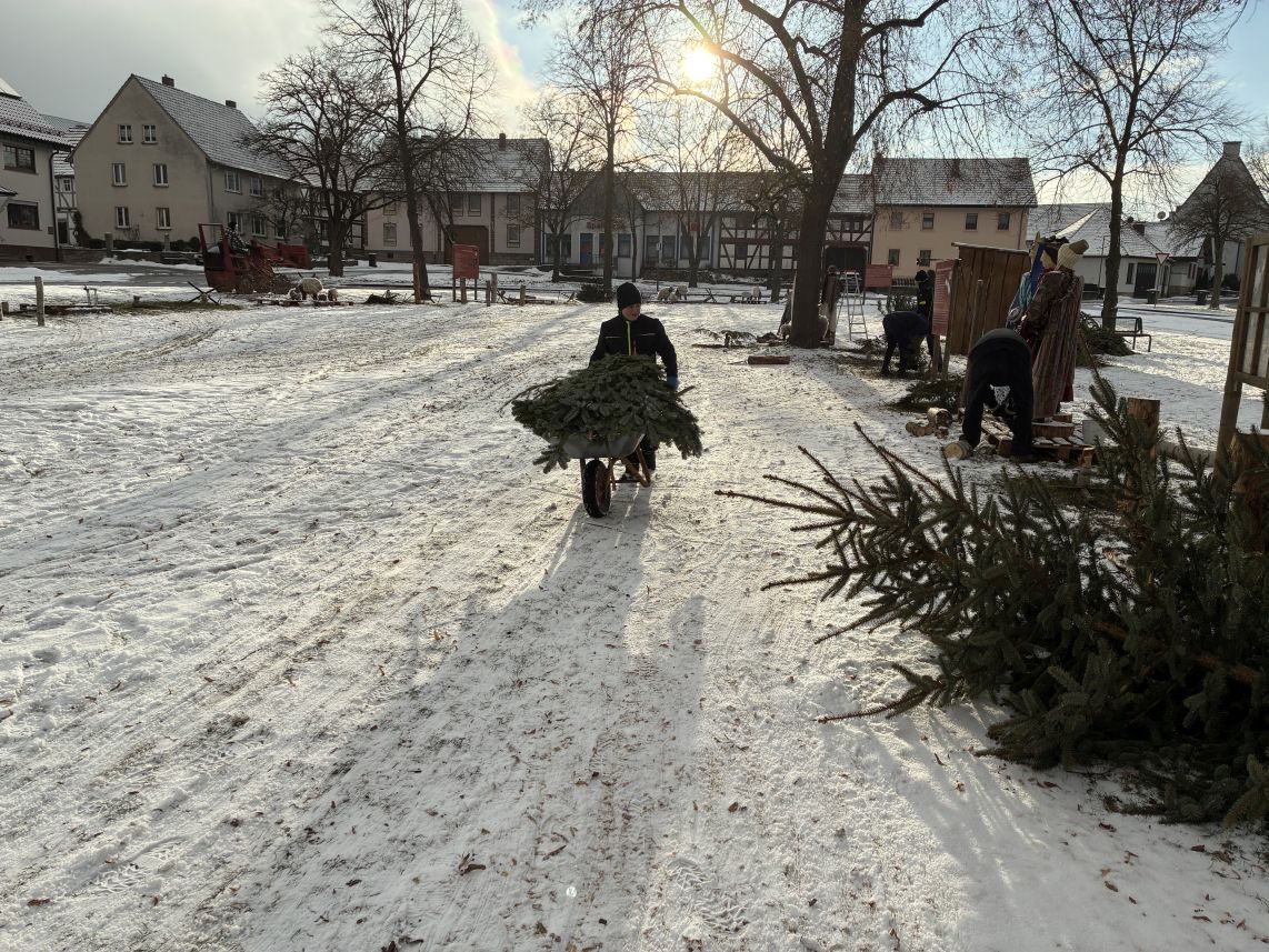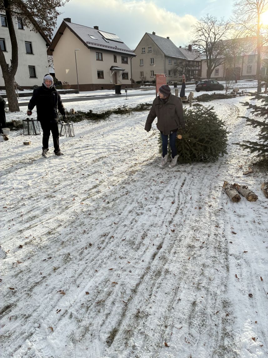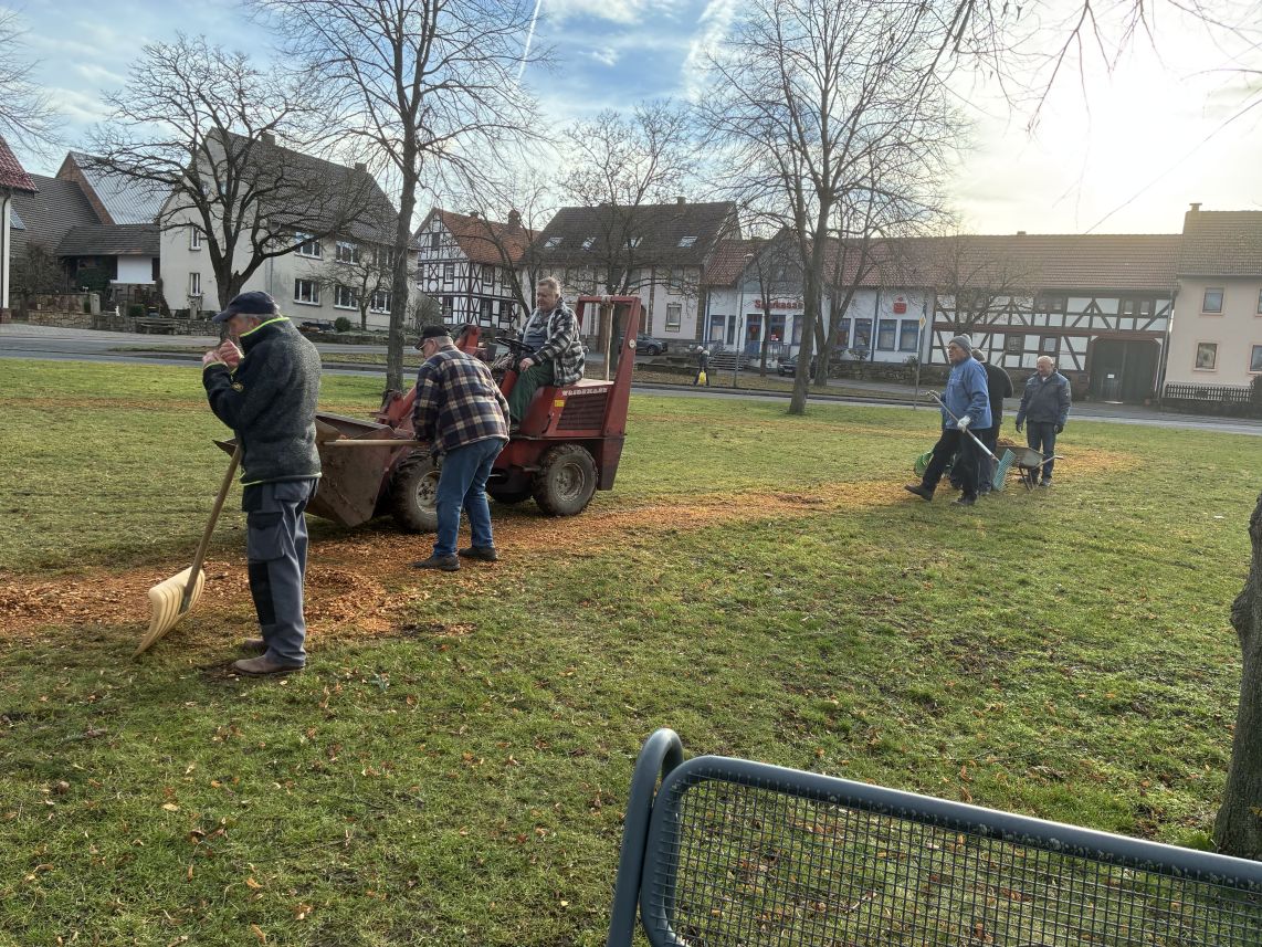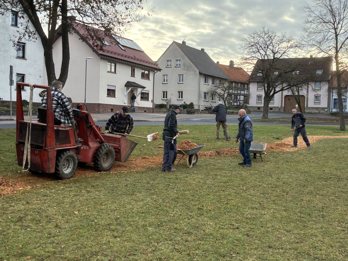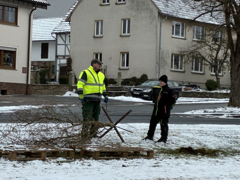 Danke sei auch denen gesagt, die kostenlos für die Verpflegung und Getränke gesorgt haben. Ebenso für die Unterstützung des Bauhofs. Die Point-Alpha-Gemeinde Rasdorf hat die Hackschnitzel für den Weg zum Anger gespendet und jetzt die Weihnachtsbäume sachgerecht entsorgt.