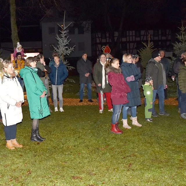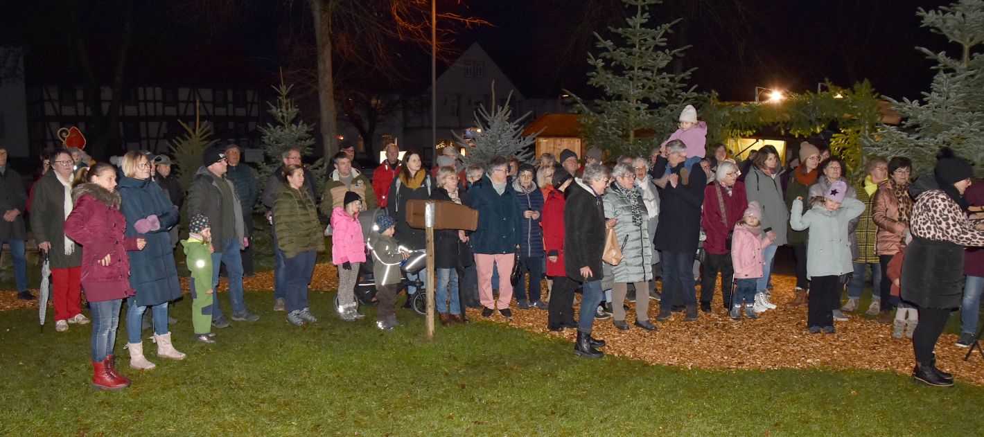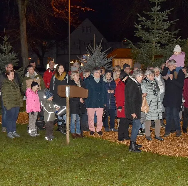 Zum neunten Mal ist am größten Dorfanger Hessens in Rasdorf der Adventsweg aufgebaut worden. Mit einer feierlichen kirchlichen Segnung durch Pfarrer Andreas Matthäi wurde er offiziell eröffnet. Zahlreiche Familien mit Kindern sowie Erwachsene waren zur Eröffnung gekommen. Die Adventszeit sei eine Zeit des Wartens, erinnerte Nadine Lenz, Sprecherin des Pfarrgemeinderates, zu Beginn der Feier. Was Warten bedeuten kann, verdeutlichte anschließend Michael Hahn mit der Geschichte „Das Warten“ von Heinrich Spoerl, in der ein Mann jeden Wunsch sofort erfüllt haben möchte und so sein Leben im Eiltempo an sich vorbeiziehen sieht. Am Ende erwacht er aus dem „bösen Traum“ und erkennt, dass Warten Sinn hat.