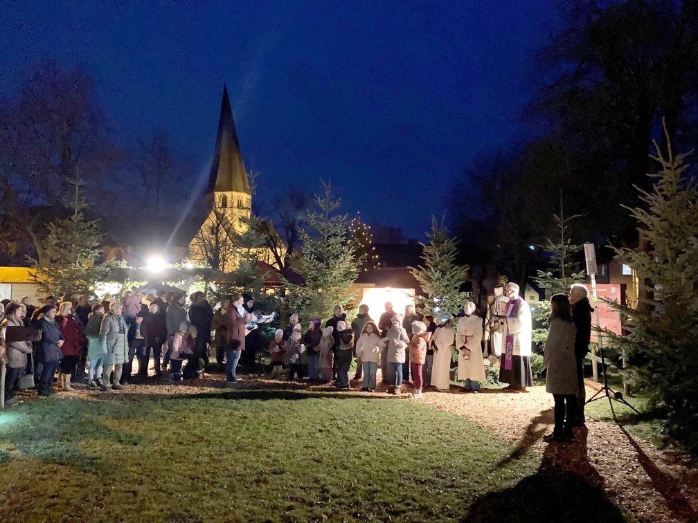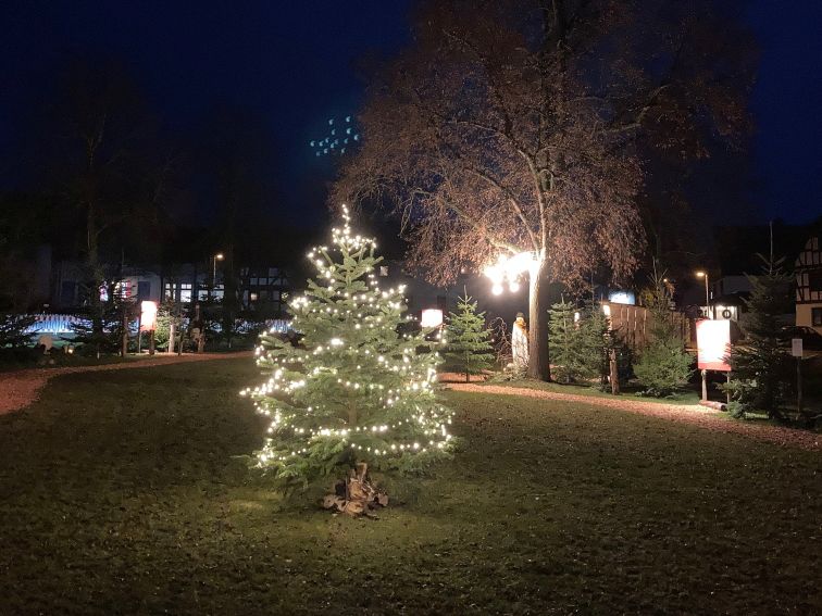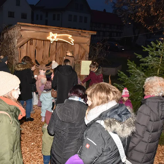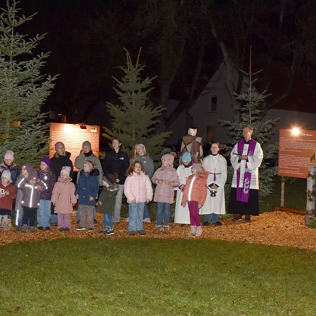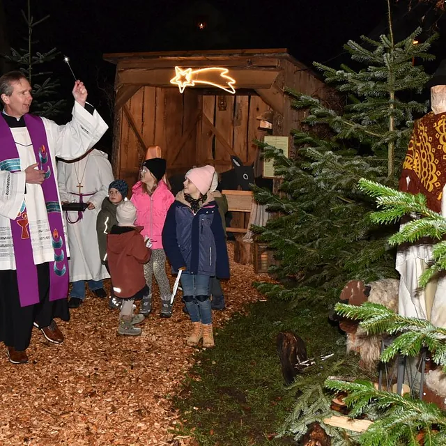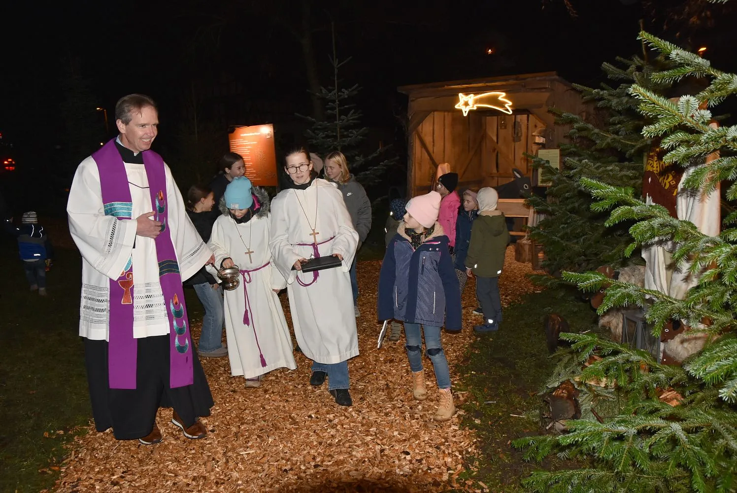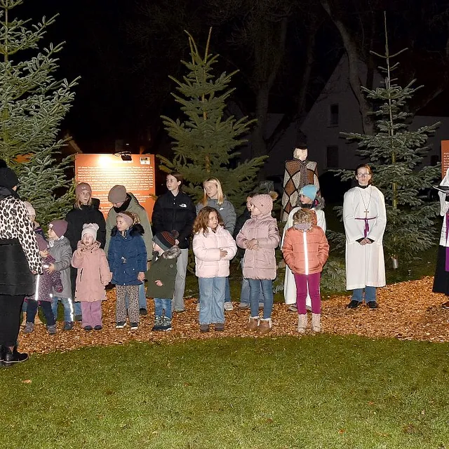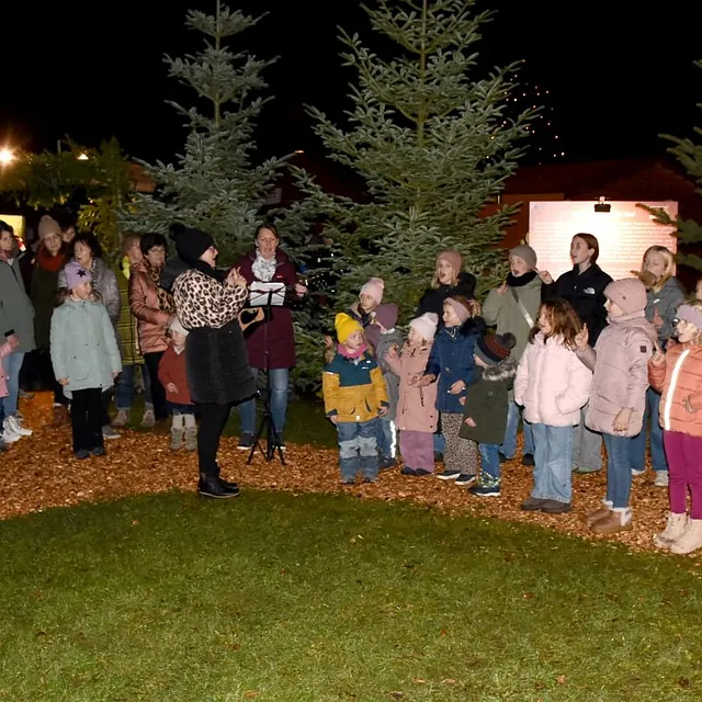 Nach einem Segensgebet zog Pfarrer Matthäi gemeinsam mit Messdienerinnen und Kindern von Station zu Station und segnete diese mit Weihwasser. Mit dem Schlusssegen und dem Lied „Macht hoch die Tür, die Tor macht weit“ endete die Eröffnungsfeier. Musikalisch gestaltet wurde sie vom Kindersingkreis Rasdorf unter der Leitung von Stephanie Hardegen und Jacqueline Mathes, der unter anderem „Macht die Türen auf“ und „Eins, Zwei, Drei, Vier – Weihnachten steht vor der Tür“ sang. Nadine Lenz dankte zudem dem Aufbauteam unter der Leitung von Theo Lenz, dem gemeindlichen Bauhof sowie den Baumpaten und Sponsoren für ihre Unterstützung.